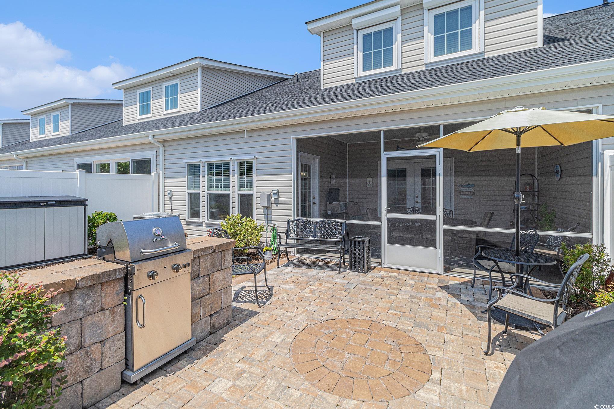 Upgraded 3BR/3BA townhome in desirable Queens Court. This two-story unit features hardwood flooring throughout the entire first floor, including both downstairs bedrooms. Open-concept living with a spacious kitchen, breakfast bar, pantry, and modern appliances. The primary suite offers a walk-in closet and private bath with double sinks. Upgrades include: epoxy garage floor, storm door, hurricane shutters, whole-house surge protector, built-in BBQ, extended block patio, walk-in attic with shelving, and added storage in garage. Community offers a clubhouse, pool, and allows golf carts, motorcycles, and long-term rentals. HOA includes trash, exterior insurance, pool service, basic cable and internet, and more. Located in the St. James School District and just minutes from beaches, shopping, and dining.