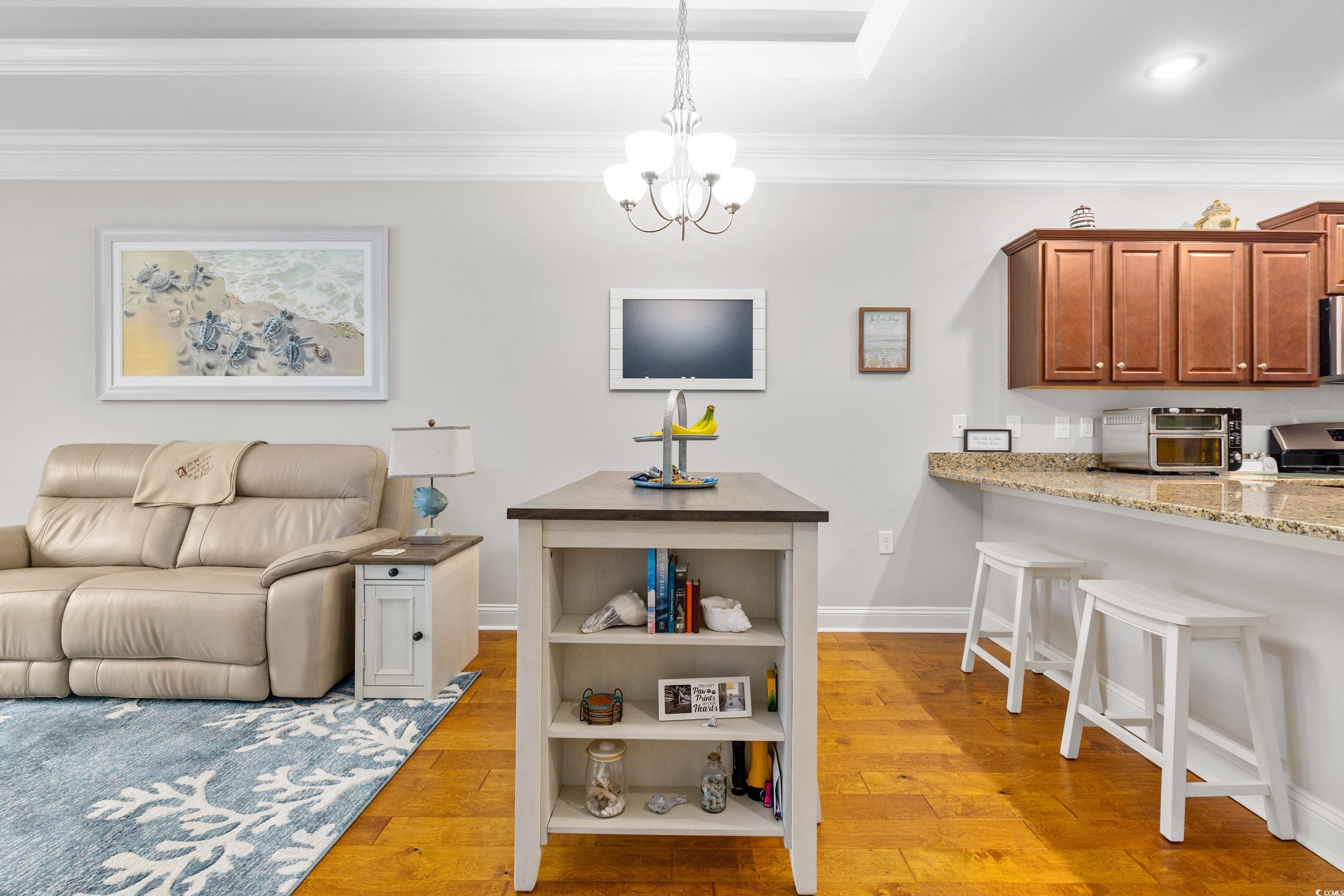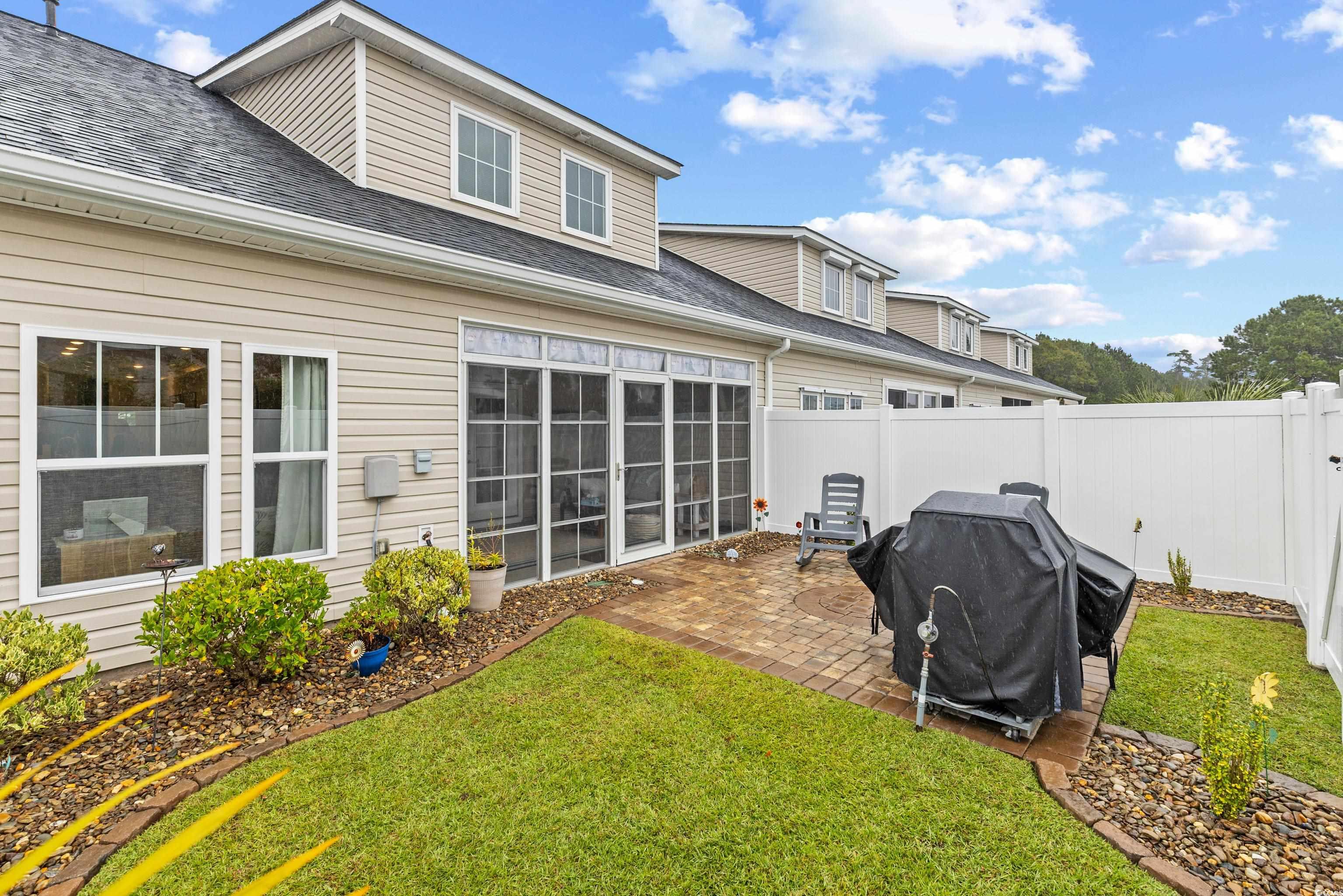Welcome to this meticulously maintained 3-bedroom, 3-bath townhome in the desirable Queens Court community of Myrtle Beach. The open, flowing floor plan is perfect for both everyday living and entertaining. The spacious kitchen features stunning granite countertops, stainless steel appliances, and a large pantry, providing both style and functionality. The first-floor master suite is a true retreat, with hardwood floors and a large ensuite bathroom complete with a walk-in shower, dual-sink vanity and extra large linen closets. This two-story unit features hardwood flooring throughout the entire first floor, including both downstairs bedrooms and smart thermostats for first and second levels. A full bath is centrally located at the bottom of the stairs featuring tile floor, marble vanity and extra large linen closets. Upstairs, you'll find a spacious bedroom, neutral carpet with large closet and an additional full bath. Need storage? A dedicated storage room ensures you have space for everything! This home features a 1-car private garage and natural gas with a tankless water heater for energy efficiency. Relax and unwind in the generously sized patio room, the perfect spot for sipping your morning coffee or enjoying a quiet evening. The patio room is heated and cooled and features easy breeze windows. The backyard boast a beautiful paver patio and privacy fence making it ideal for entertaining or enjoying the outdoors. The patio is also equipped with a gas line for a grill which makes entertaining truly effortless. Pool and clubhouse are just a short golf cart ride away! Conveniently located south of Myrtle Beach and minutes away from shopping, dining and beaches. Schedule your showing today.