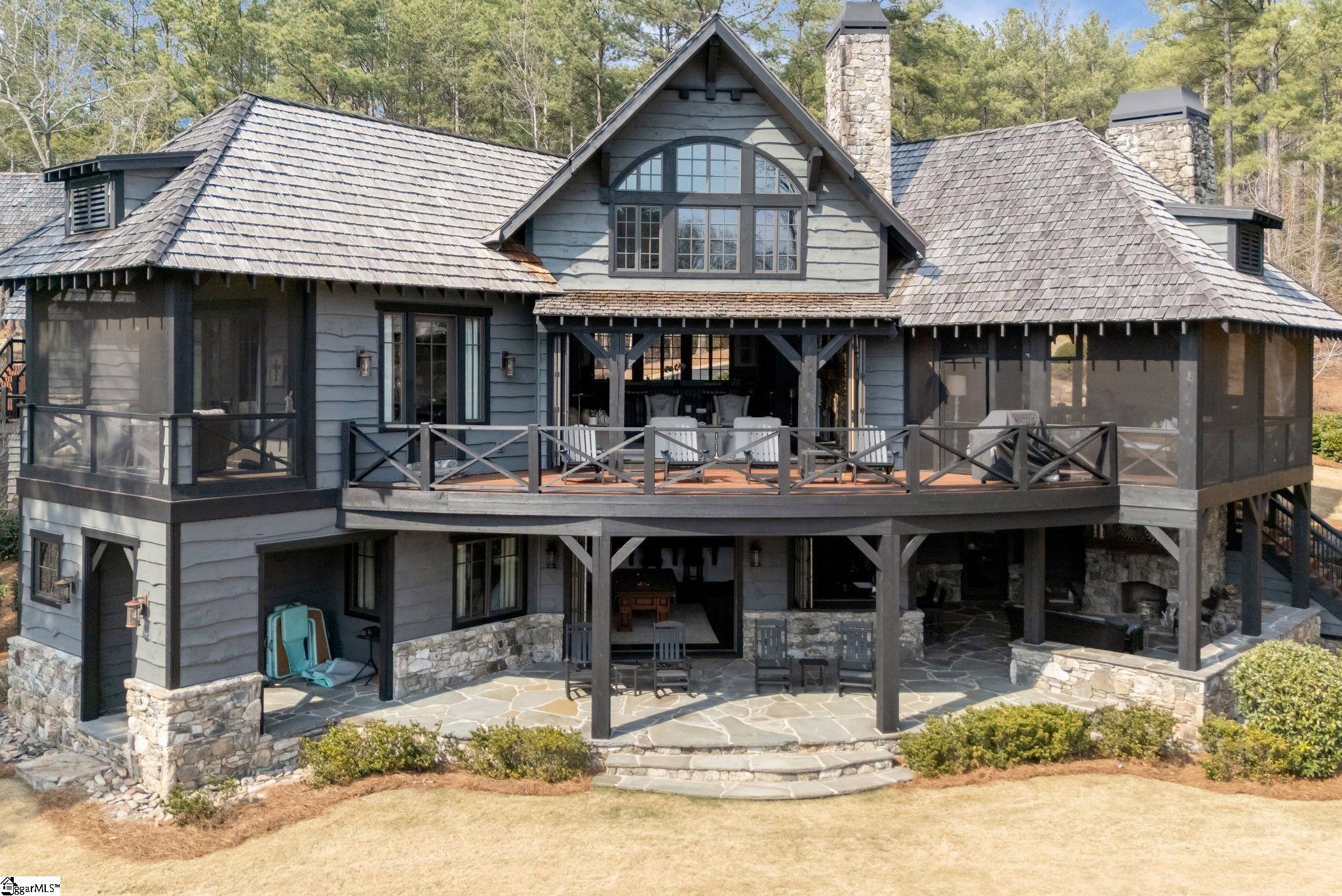 A stunning architectural masterpiece on Lake Keowee in the Old Edwards Reserve. Designed by Abbi Williams, this home won the 2018 People’s Pick for HGTV Designer of the Year Award for Waterside Retreats. As soon as you step into the kitchen and dining space, continuing into the living room, the architect designed this home to maximize the feeling of being on Lake Keowee. In the main living area, large accordion doors open to the back deck bringing the view of the lake into the whole main living area. This six bedroom, six full baths and three half baths home also boasts a recreation area on the lower level built for entertaining. Complete with an enormous media area made for game day, a bar with an expansive window to the lake, as well as another set of large accordion doors and pool table area lead to a walk out deck just steps from Lake Keowee. The high quality outdoor living space expands to over 2,800 square feet in all including a large screened in porch with fireplace, the four outdoor decks and entertaining space. Back inside, the kitchen boasts granite and quartz countertops as well as a chef’s suite of Thermador appliances. Every bedroom has its own ensuite, the sixth bedroom is a separate apartment over the garage with a full bathroom and kitchenette. There is a large covered dock with room for more entertaining and two jet ski slips. Additionally, the owners have purchased the lot next door to them extending the acreage and privacy. Full Premier Membership is available at closing. Enjoy close proximity to world-class amenities, including a Jack Nicklaus Signature Golf Course, a state of the art clubhouse, marina, wellness center, tennis and pickleball courts, two pools and multiple dining options.