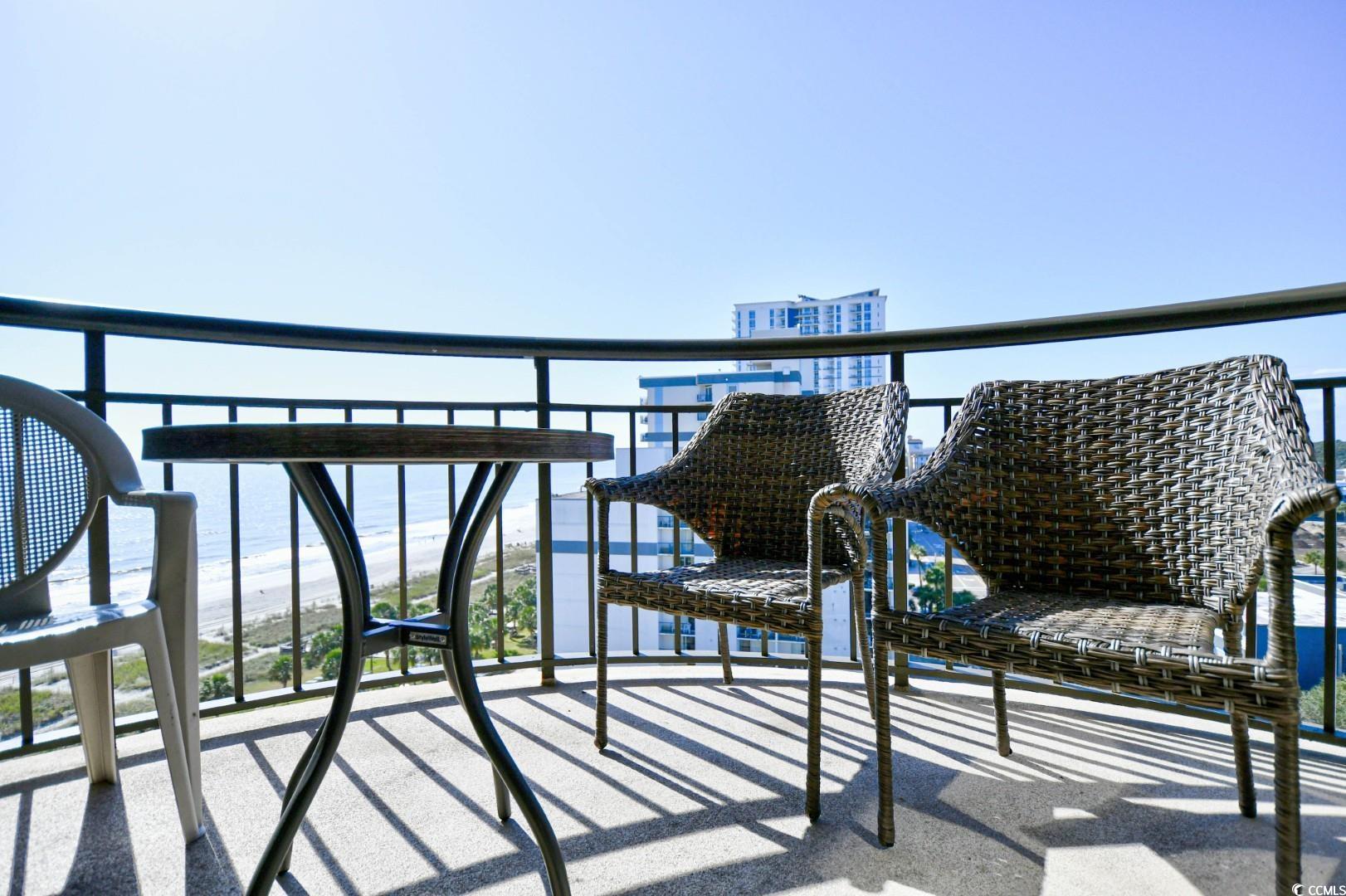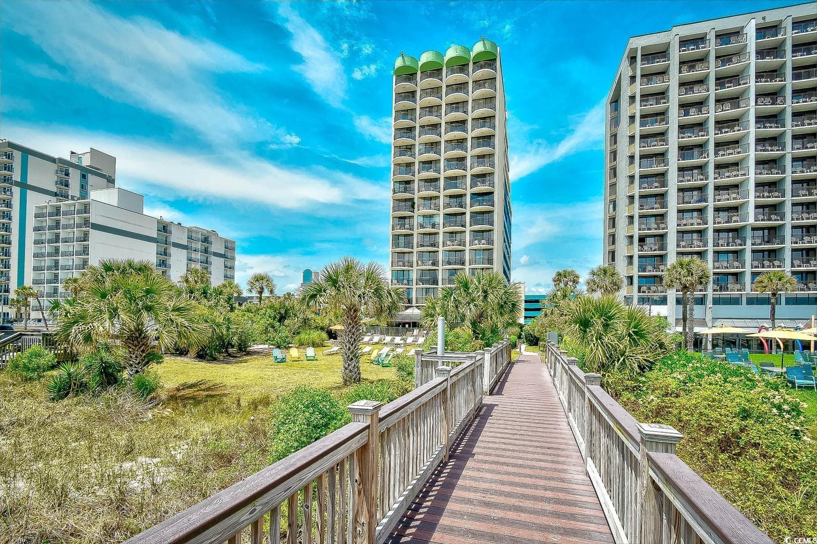 Extraordinary sunsets over the Atlantic Ocean!!! Looking for a profitable investment property or vacation home at the beach? Well look no further! This one bedroom, one bath condo at Meridian Plaza is on the 11th floor where you can soak up the spectacular views of the sand and ocean and hear the sounds of crashing waves right from your own unit. This unit is a "true" 1-bedroom layout with a foyer entry leading to a private bedroom. Spacious bathroom with upgraded vanity and jetted tub. All tiled beautiful open floor plan boasts an updated kitchen with quartz countertops and breakfast bar. Stainless steel appliances and new range in 2024 along with dishwasher, microwave and refrigerator; making this a full service kitchen with everything you need for a perfect vacation spot. Enjoy the ambiance from your fireplace in the living room with it's coastal design and furnishings, crown molding, tiled floors, and also provides stunning ocean views from its spacious balcony. Wonderful amenities offered at the Meridian Plaza, including indoor and outdoor pools, a hot tub, a sundeck, and beach access. Security to the building and amenities is also a plus. Conveniently located to Myrtle Beach Airport, Broadway at the Beach, the Boardwalk, shopping destinations, restaurants and more. Don't let this one get away...schedule your showing today!!!