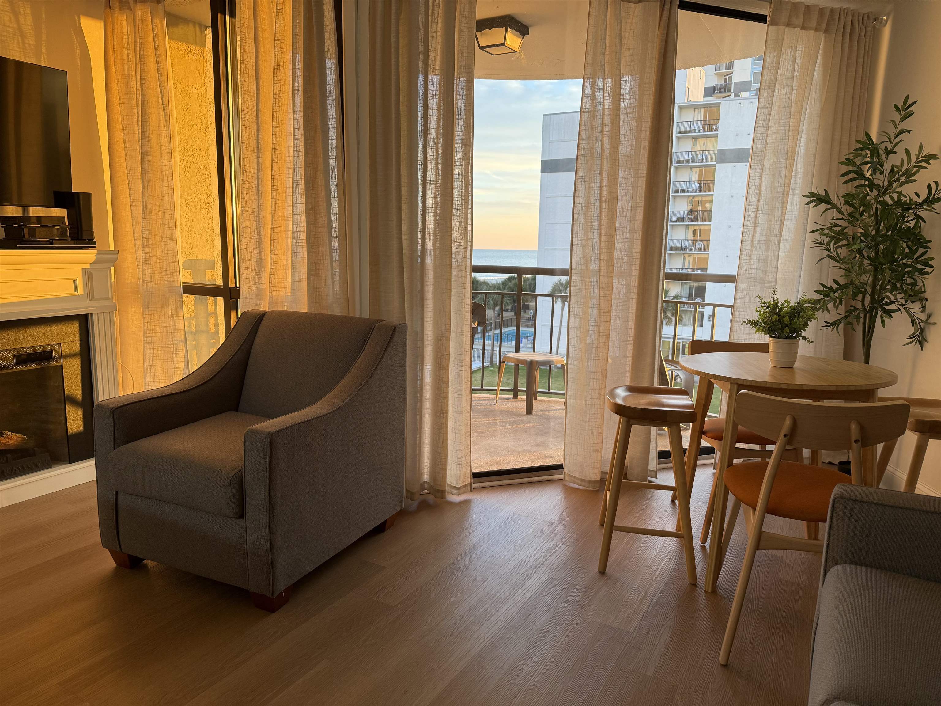 The Meridian Plaza, Unit 406 has beautiful finished touches you will truly love. Recently Renovated with a new modern look. It even has a fireplace for comfort on those cooler evenings. Offering beautiful Coastline Views, Sunset Views, and Ocean Front Views of the big blue Atlantic Ocean. Total enjoyment and relaxation from your own balcony. This unit is currently on the rental program. Please check with the Listing Agent for availability. This Condo is being listed as a possible Short Sale. It is a great investment or second home, you will enjoy and love. Either way you just can't lose. Come and see today. You will be glad that you did. Square footage is approximate and not guaranteed. Buyer is Responsible for Verification.