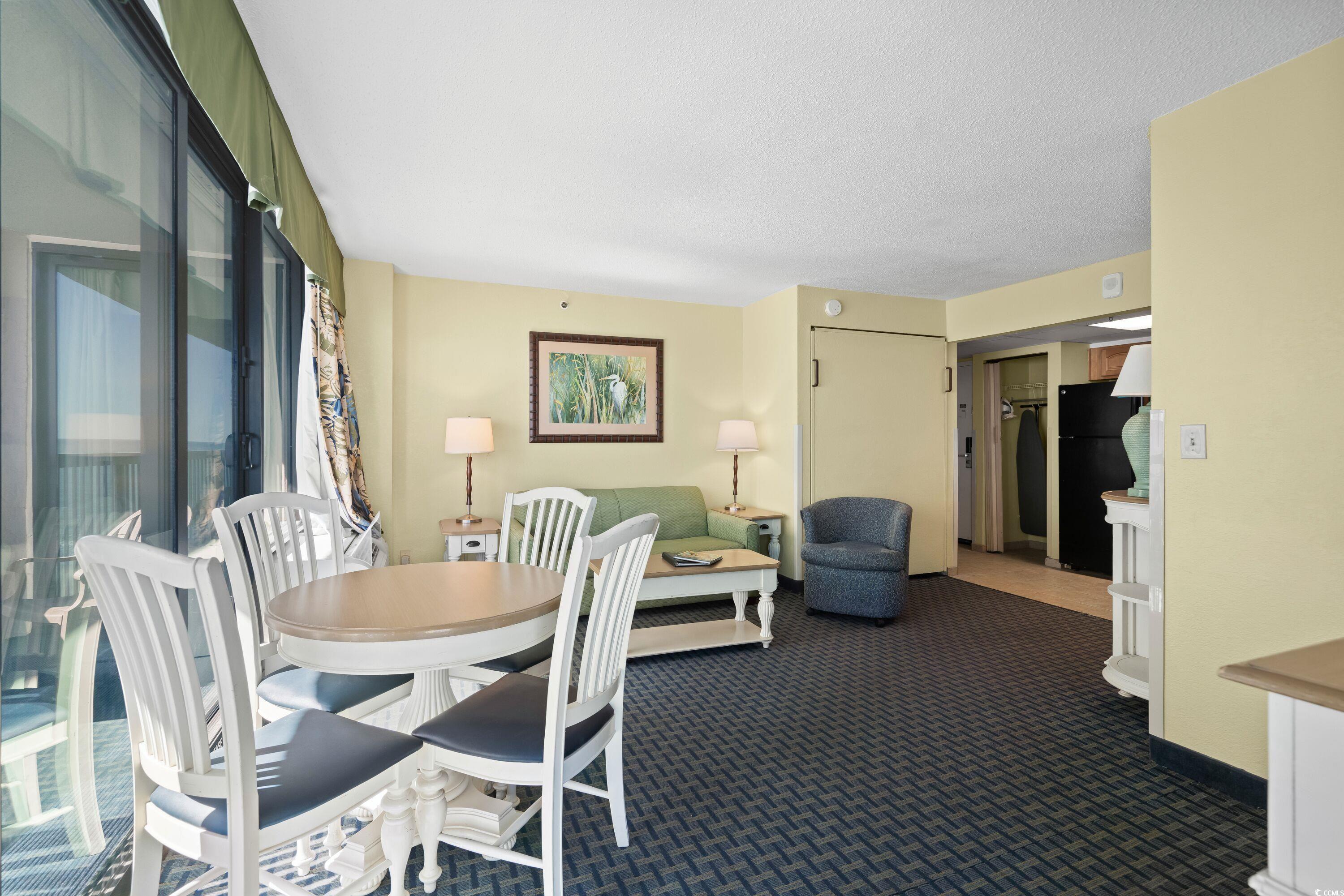 Experience breathtaking ocean views from this spacious 1-bedroom, 1-bath corner unit on the 7th floor of the Pinnacle Oceanfront Tower at Compass Cove Resort! This larger unit welcomes you with a foyer entry leading into a thoughtfully designed living space, perfect for relaxing or entertaining. The bedroom features two beds, while the living room includes a convenient Murphy bed, allowing the unit to comfortably accommodate guests. The highlight of this condo is the wraparound corner balcony, offering stunning views of the Atlantic Ocean—your perfect spot to enjoy sunrises and coastal breezes. Located in the heart of Myrtle Beach, Compass Cove Resort is packed with incredible amenities, making it a fantastic vacation getaway or investment opportunity. Enjoy indoor and outdoor pools, lazy rivers, hot tubs, waterslides, a fitness center, tiki bar, on-site dining, and direct beach access. Just minutes from shopping, dining, golf courses, entertainment, Myrtle Beach International Airport and attractions like Broadway at the Beach and Market Common, this condo puts you right in the center of all the Grand Strand has to offer. Whether you're looking for a vacation retreat, a rental property, or your own piece of paradise, this ocean view gem is a must-see. Schedule your showing today!