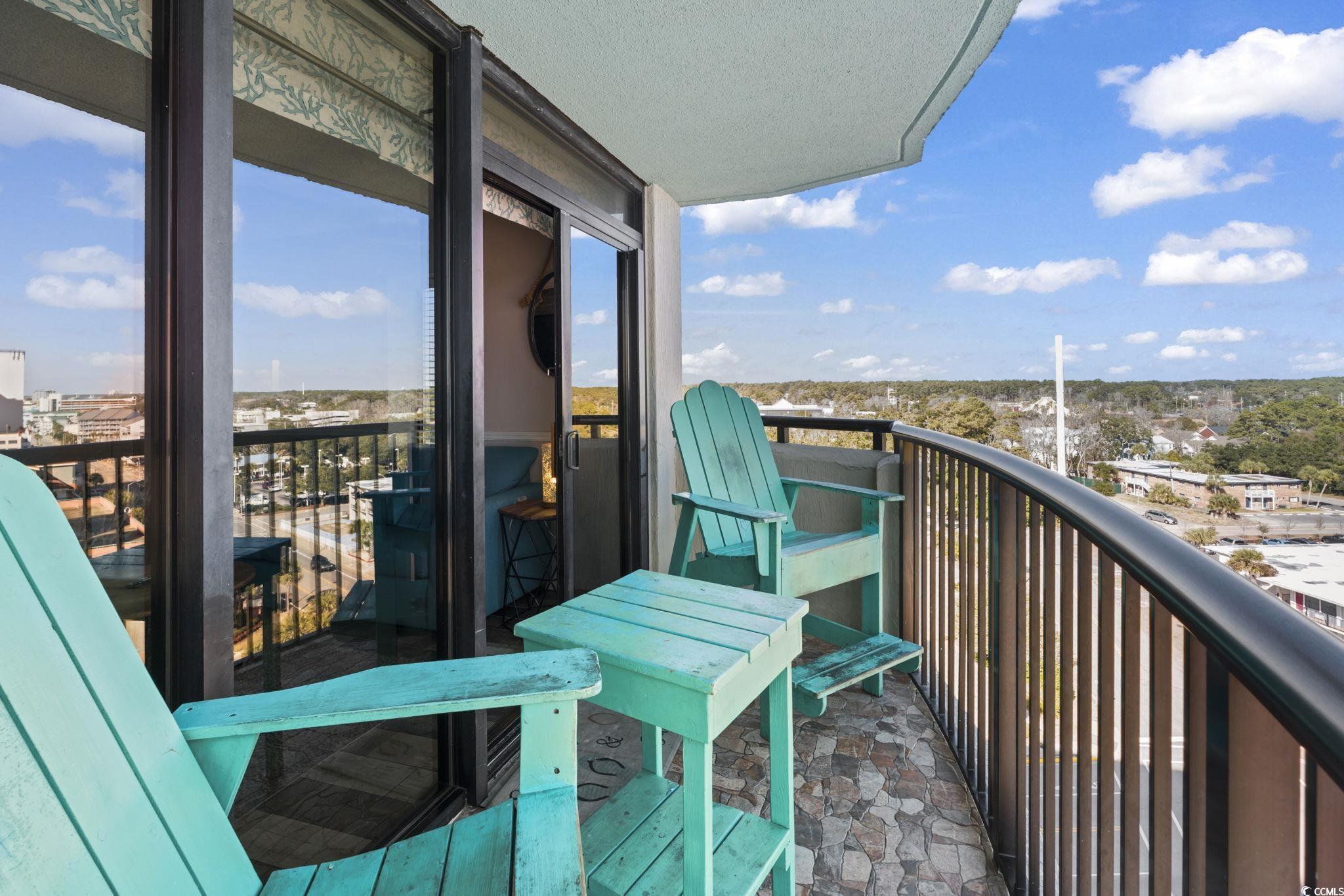 Rare High-Floor Corner Unit at Compass Cove Resort. Opportunities like this are hard to find! This stunning north-end corner unit is one of the most sought-after floor plans, featuring two oversized bay windows with sweeping city views and a private balcony overlooking the Atlantic Ocean. What sets the 25-stack apart is its unique design, offering extra windows, expansive floor-to-ceiling glass balcony doors, central heating and air, and an extra-large balcony perfect for enjoying the coastal breeze. Currently setup to sleep 6. 1 King Bed, 1 Murphy Bed, and 1 Sleeper Sofa. This meticulously updated one-bedroom unit boasts new furniture, a king-size bed, and shiplap accents on the walls. The custom tile floors and a beautifully designed rock-tile fireplace with an extendable TV add a touch of luxury and comfort. The kitchen is fully equipped with granite countertops, a range, a brand-new stainless steel refrigerator, a dishwasher, and a rare washer/dryer combo. Having both a dishwasher and in-unit laundry in a one-bedroom unit is an exceptional find. Compass Cove Resort offers an array of amenities, including multiple pools, hot tub, lazy river, and endless entertainment options, all within minutes of the airport, Market Common, and Myrtle Beach's best attractions. This is your chance to own a rare and highly desirable property in a prime location. Don't let this gem slip away!