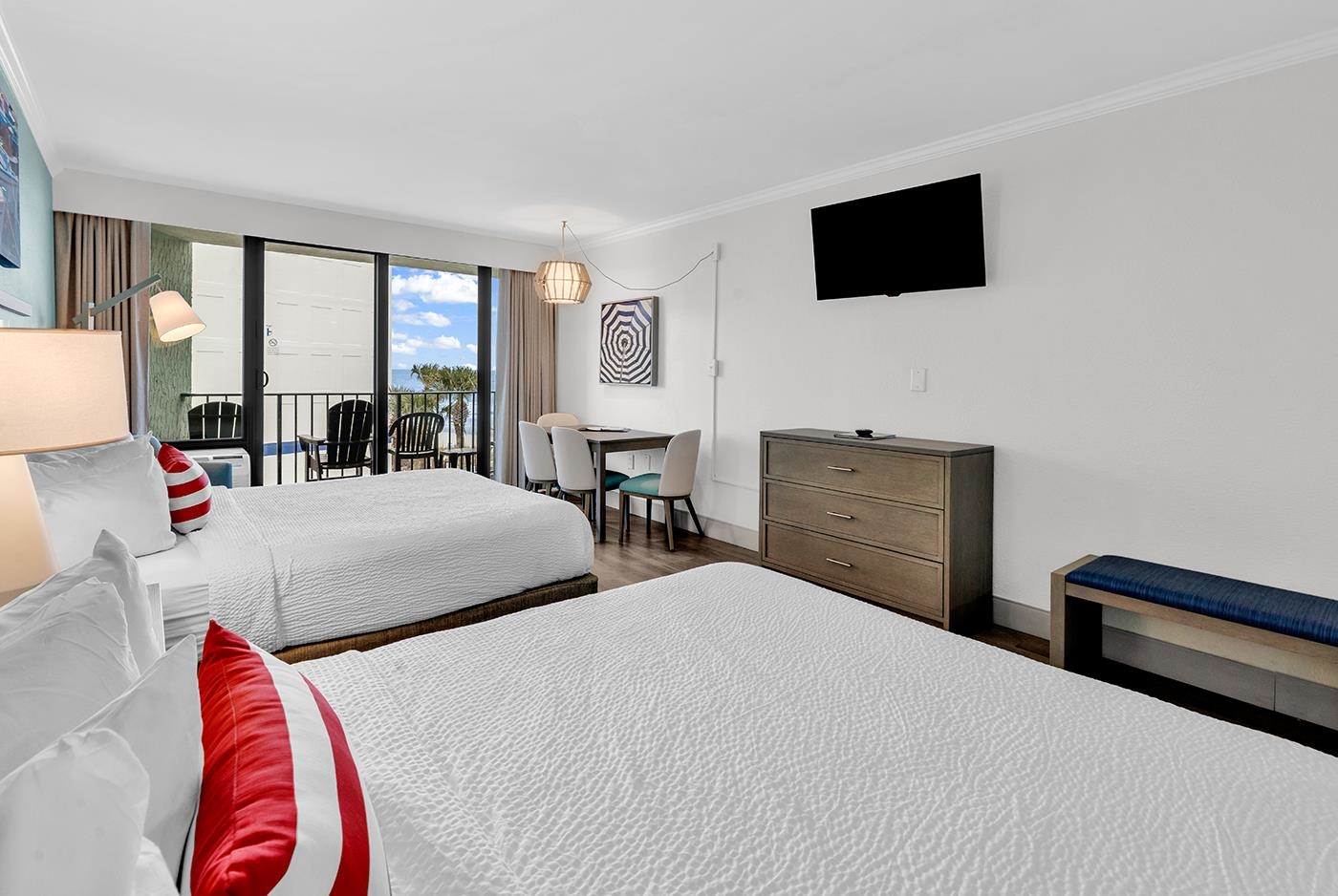 Income-ready Oceanview Condo - Renovated, Furnished & Move-in Ready, beautifully updated and thoughtfully designed, this fourth-floor efficiency condo offers sweeping, unobstructed ocean views that truly set it apart. Recently upgraded through the Bulk Upfit Program - with all costs fully paid by the owner and no balance to assume - this unit blends modern comfort with effortless coastal living. The furnished interior features two queen beds and a sleek kitchenette, complete with microwave, refrigerator, sink; full bath features tub/shower, vanity and sink - ideal for both personal enjoyment and guest stays. Step outside to your private balcony, where brand-new Adirondack chairs invite you to relax and take in the endless morning horizon or after a full day at the resort and beach or a day at a nearby golf course, or visiting the multiple attractions offered in Myrtle Beach. Whether you're seeking a serene getaway or a strong rental investment, this turnkey property presents an exceptional opportunity. The Lifestyle is unbeatable.