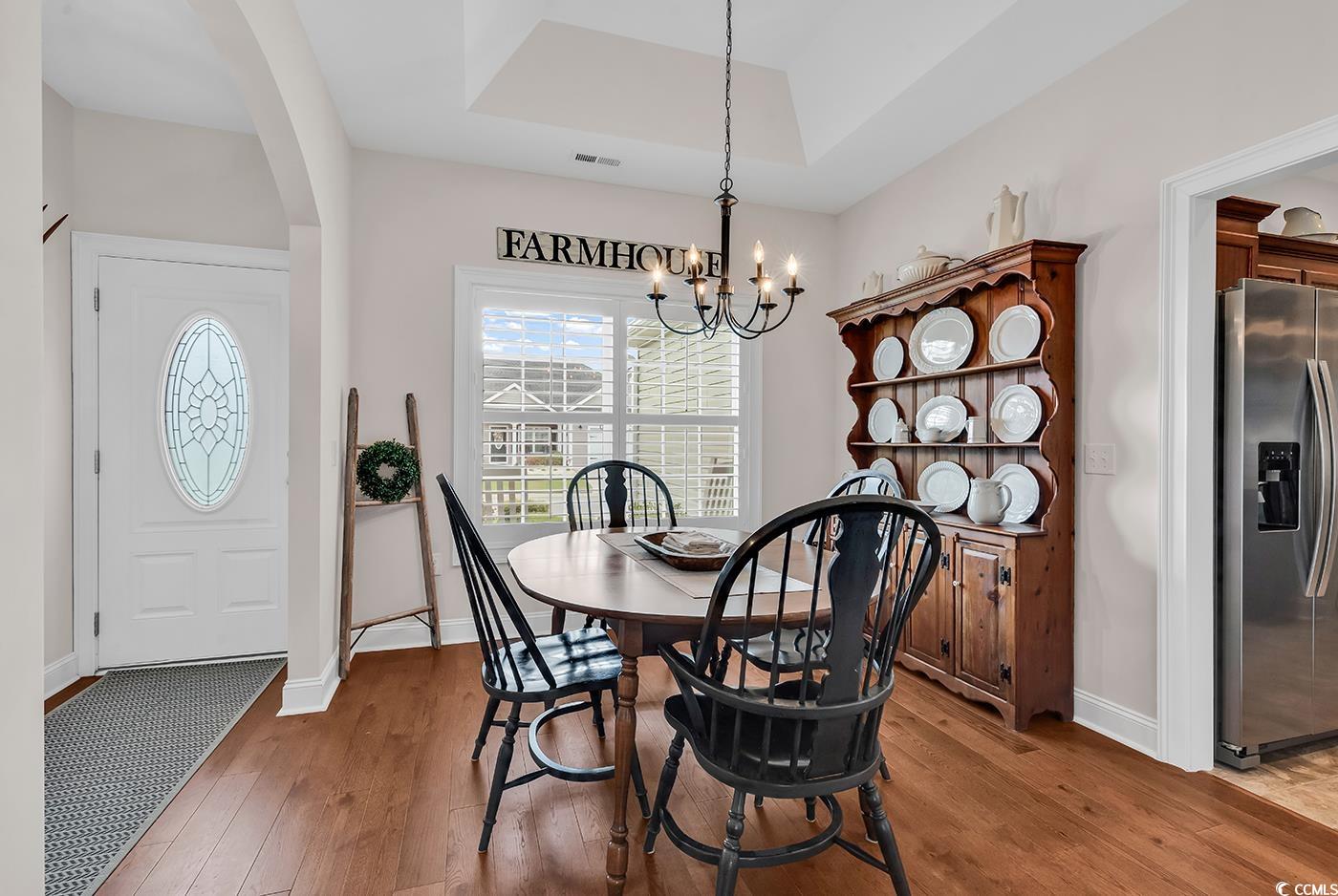 Still looking for your dream home? Look no further! As you enter the foyer, you'll love the soaring ceilings, beautiful archways, and the abundance of windows that give this home such a light and airy feel. The spacious living room and formal dining room with a tray ceiling make this home great for entertaining. The Hickory floor plan also features an open floor plan, vaulted ceilings, a large kitchen, solid wood cabinets with crown molding, framed doorways and windows and all of the appliances. The first level homeowner's suite boasts vaulted ceilings, a walk-in closet, a shower and a soaking tub. Guest bedrooms and bath are on the opposite side of the house. The 2-car garage has an automatic door opener, pull-down stairs and built-in shelving for storage. The exterior has an irrigation system, gutters(front and back), and a beautifully landscaped yard. The new owners will love the screened-in porch overlooking the pond. This is a great place to enjoy your morning coffee or unwind after a long day. This gated community also includes a pool and a clubhouse. You'll want to put this home on your list to go see.