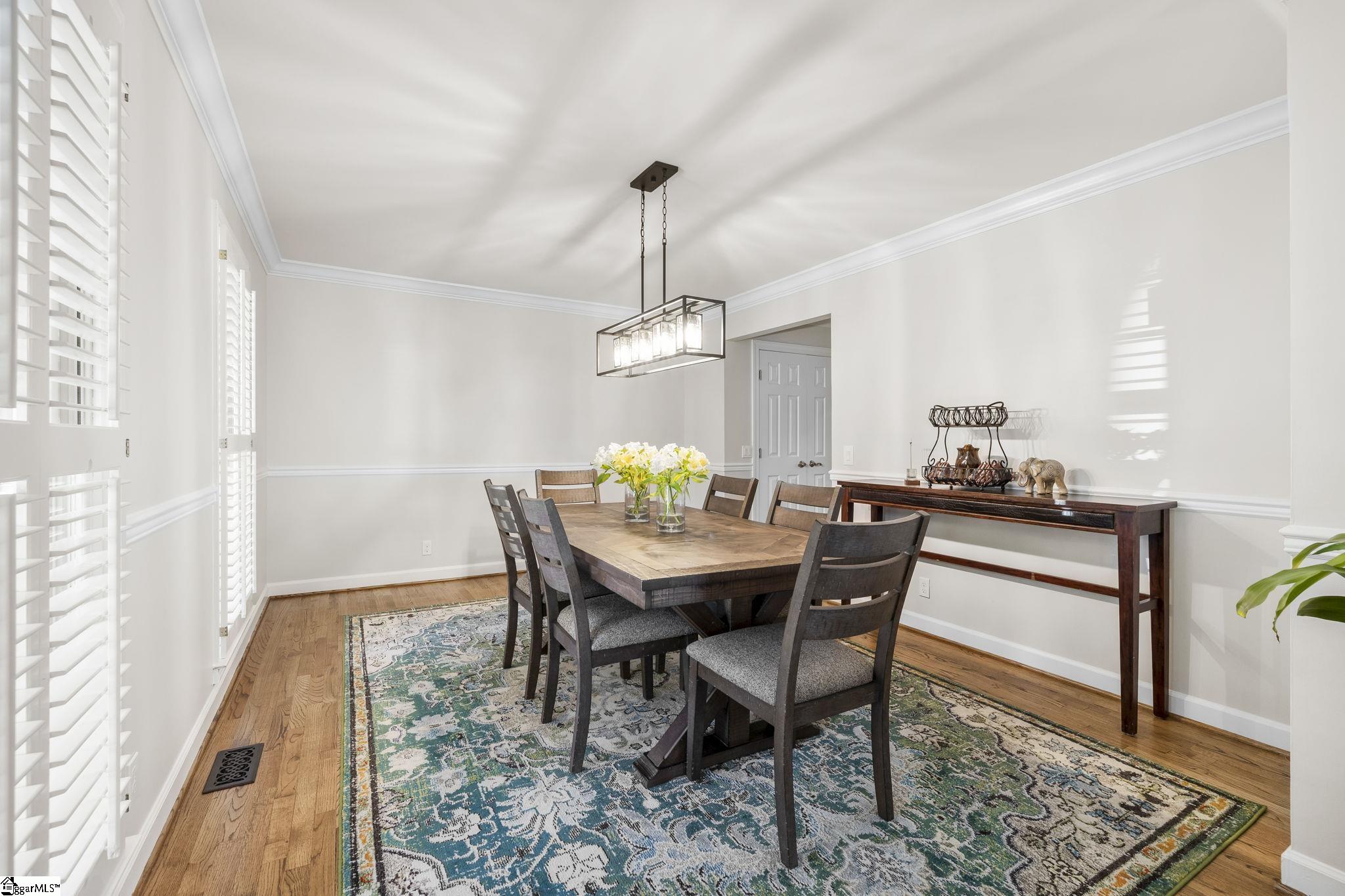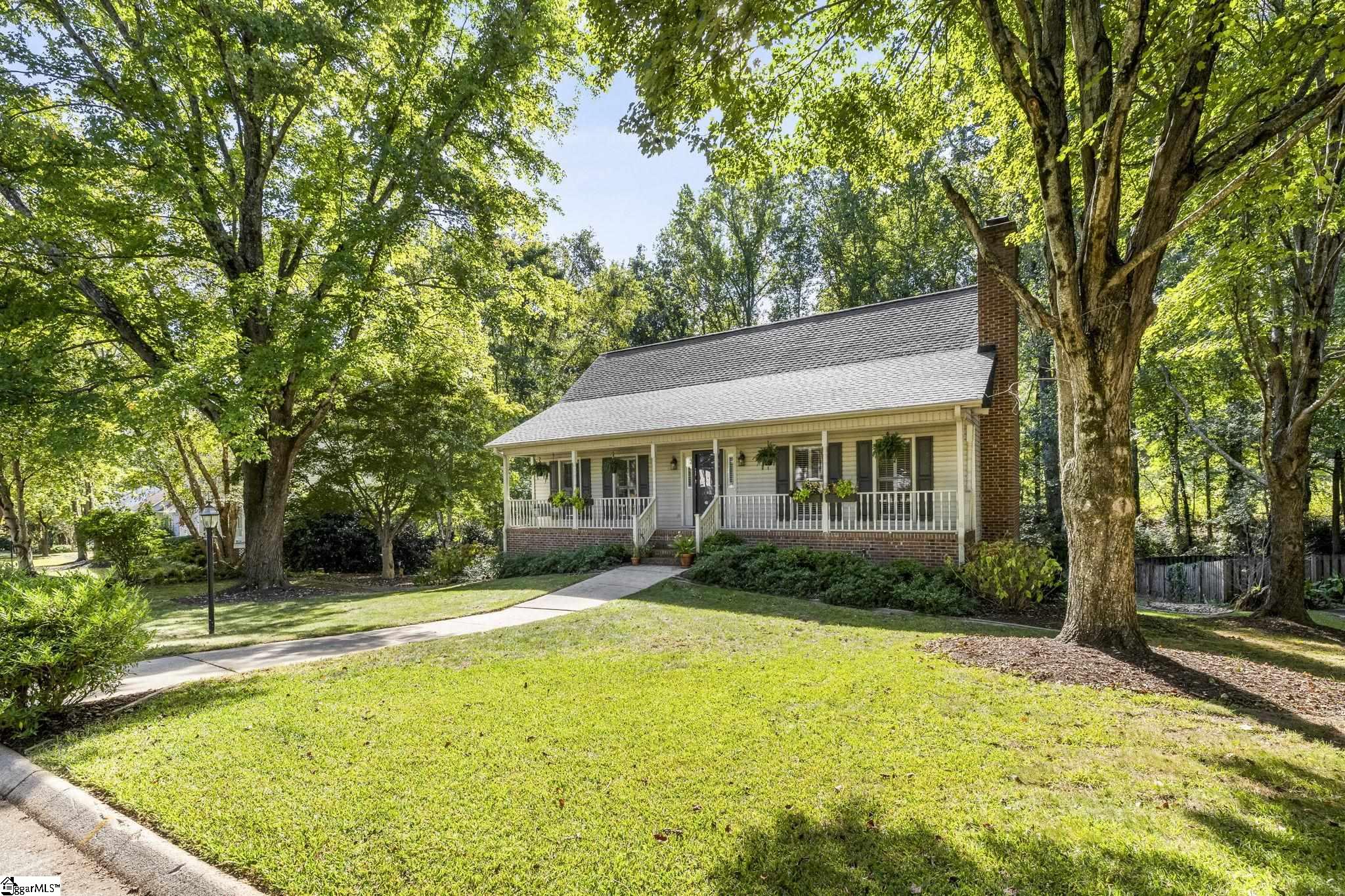 This beautifully remodeled Cape Cod is tucked away on a private wooded lot with a backyard retreat you’ll love year-round! The home features smooth ceilings, refinished hardwood floors, fully updated bathrooms, new carpet and luxury vinyl, and fresh interior paint. A welcoming rocking chair front porch leads into a two-story foyer flanked by a formal dining room and a cozy living room with a gas fireplace and custom built-ins. The updated kitchen boasts stainless steel appliances with gas cooktop, granite countertops, tile backsplash, a large pantry, and an oversized picture window framing the serene backyard view. Adjacent are the walk-in laundry room and access to the screened porch. The main-level primary suite includes a luxuriously remodeled bathroom featuring a spacious custom layout with a double-sink vanity, stylish new light fixtures, and a beautifully designed tile shower. Upstairs offers a loft with skylight—perfect for an office or reading nook plus two large bedrooms and a full hall bath that has been custom-designed and fully remodeled, featuring a skylight, marble-top vanity, standalone soaking tub, and a beautifully tiled shower wall. The walkout basement adds a spacious bonus room with gas fireplace and abundant storage. Outdoor living shines with a screened porch, grilling deck, covered patio, and a tranquil setting with creek, waterfall, and pond. The oversized garage accommodates large vehicles, with extra parking available. Conveniently located near Woodruff Road shopping and dining, this home combines a flexible floor plan, quality updates, and peaceful surroundings a true Greenville gem!