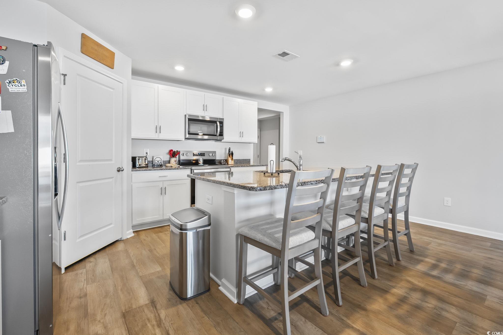 Welcome to this beautifully maintained four-bedroom two-bathroom former model home featuring the highly sought after Cali floor plan where pride of ownership is evident throughout. From the moment you enter you will appreciate the open concept design and the luxury vinyl plank flooring that flows seamlessly through the main living areas, bathrooms and laundry room. This home is truly better than new with an extensive list of thoughtful upgrades already completed by the seller. Enjoy the privacy of a fully fenced very large corner lot enhanced by well kept landscaping and the convenience of added gutters. The entire interior has been freshly painted and includes ceiling fans throughout, screens on all windows, newly added cabinet hardware in the kitchen and a new storm door at the front entry. The kitchen stands out with soft close cabinets and drawers, pull out storage inside the cabinetry and an extended countertop with additional cabinets that offer even more workspace and storage. A great sized corner pantry with added shelving provides optimal organization for all your kitchen essentials. The exterior is just as impressive. An irrigation system keeps the yard looking its best, and the backyard features a large extended patio that is ideal for relaxing or entertaining guests. The driveway has been widened on both sides for added comfort and convenience. A Night Owl security system is installed on the exterior, providing an additional layer of safety and peace of mind. All that is left to do is move in and enjoy. Located roughly ten minutes from historic downtown Conway where you will find charming shops, restaurants and the welcoming character that makes Conway so special. This home offers comfort, convenience and upgraded features throughout, making it the perfect place to call your own. What are you waiting for? Schedule your showing today and come see this beautiful home for yourself.