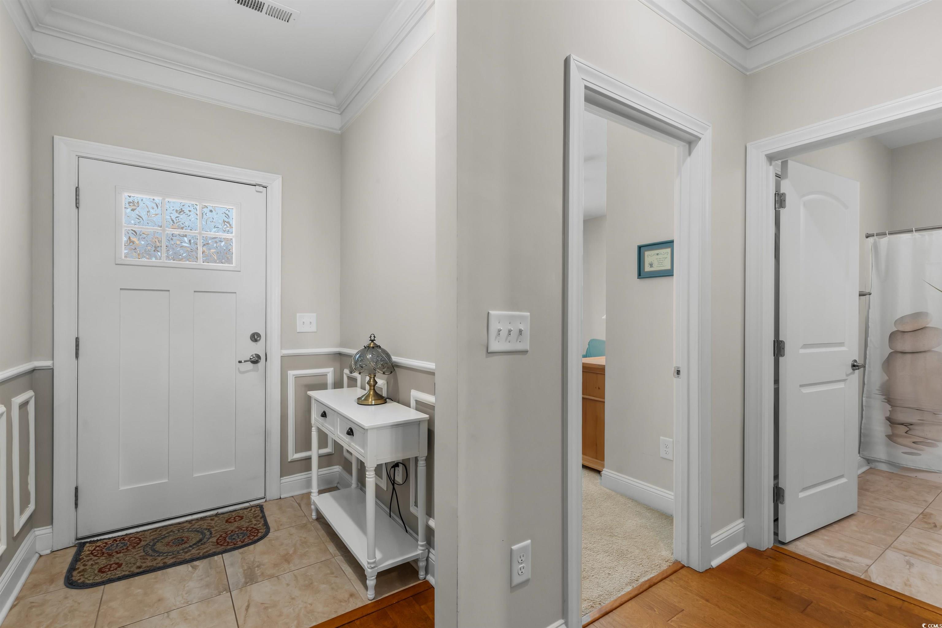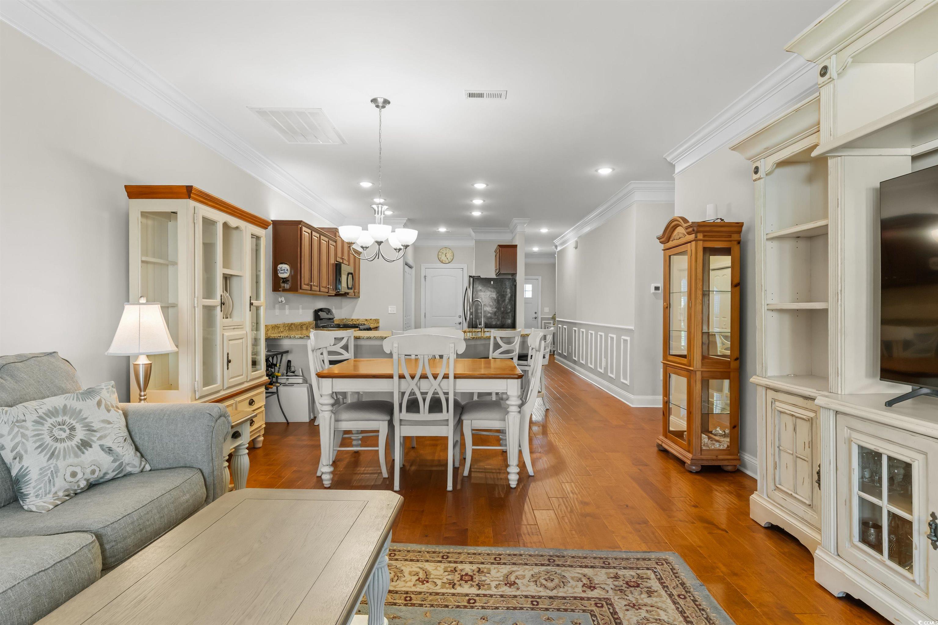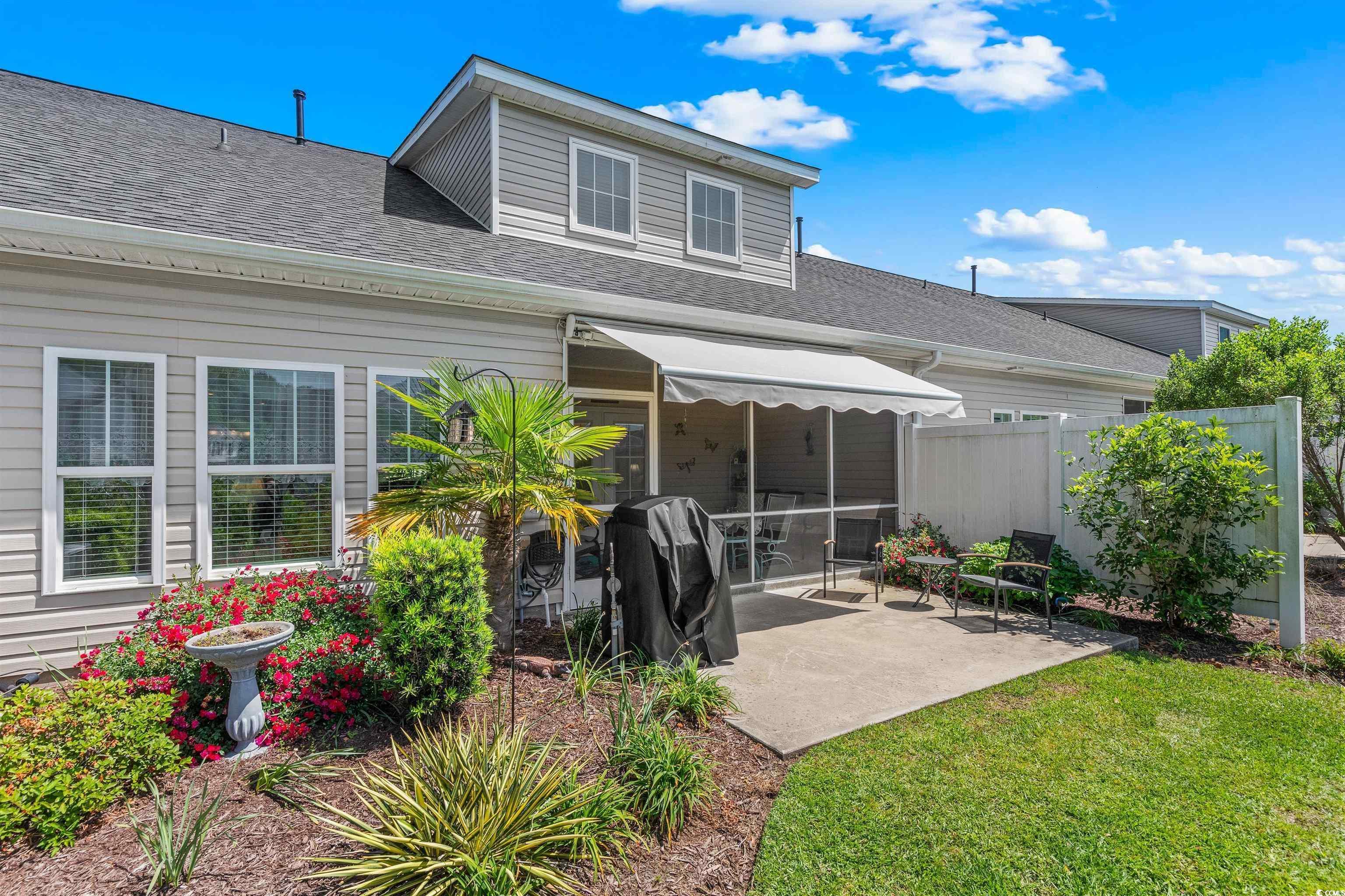 Stunning 3-Bedroom/3-Bath Townhouse with Water Views and Luxury Upgrades! Welcome to this beautifully upgraded townhouse with a 1-car garage, originally built as the community model home — meaning it’s packed with premium features throughout! The open floor plan boasts a spacious kitchen with granite countertops, a breakfast bar to sit and eat or entertain, pull-out cabinet drawers, and a gas range. Enjoy gas heating, a first-floor laundry room, a tankless water heater for unlimited hot water, and elegant crown molding. The master suite and a guest bedroom are conveniently located on the main floor, while upstairs you’ll find a private spacious guest suite with a full bath and a walk-in attic for extra storage. The master bathroom features a luxurious walk-in shower and all the bathrooms have tiled floors. Step outside to a large screened-in porch with an outdoor TV, a retractable awning, and a natural gas hookup for the grill that stays with the home— all overlooking the channel water views. The HOA fee covers water, trash, landscaping, pool access, building insurance, cable, internet, and common area maintenance, making for easy living. Located just 10 minutes from the airport, Myrtle Beach State Park, Market Common, shopping and more, this home offers both convenience and comfort. Don’t miss out — schedule your showing today before it’s gone!