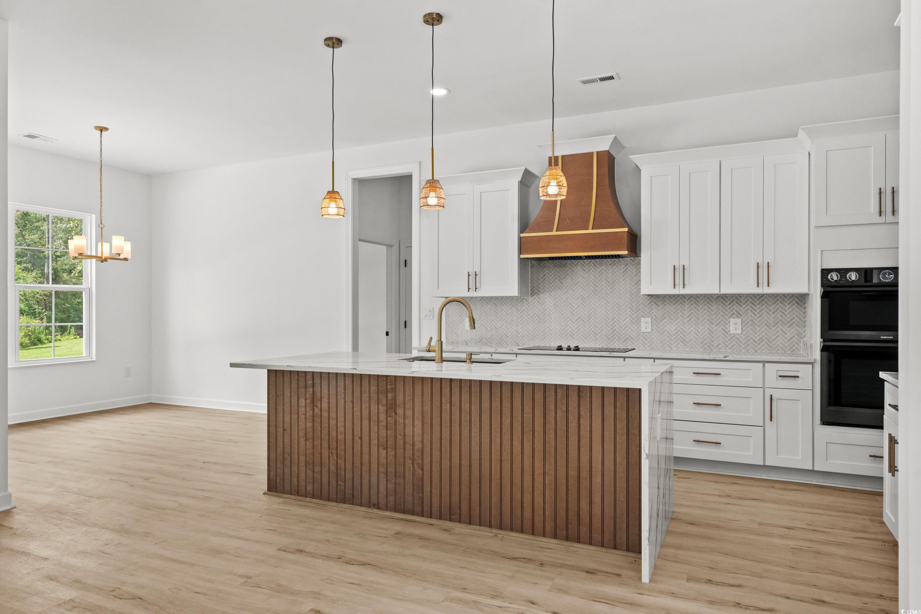 Let me introduce you to this well built new custom home located with no HOA on the generous 0.65 acres lot where not one thing was overlooked while building this beautiful 3 bedrooms 2 bathrooms and office, bright and airy home. The home will greet you with 20' wide round driveway with double entrance for plenty of car access, front porch with 6 glass panel mahogany wood double entrance door. Light oak color luxury vinyl flooring throughout, high 9’3 feet ceilings throughout, a trey ceiling and 4 panel patio sliding door, fireplace makes living room one spacious space to enjoy families special occasions. A spectacular kitchen with all Samsung appliances wall microwave/oven combo unit, 5 burners 36" cooktop, dishwasher, copper under-mount kitchen sink, Level 4 golden lace kitchen countertop with waterfall bar, champagne gold trim plumbing fixtures, KCD wood hood with accent gold laces. One of a kind owners suite with Neptune Gold porcelain stone tile shower backsplash walls, Mix river rock quartzite mosaic shower base and niche shower, Maui Honey floor tile installed in the owners suite and partial shower for wood pattern look, champagne gold trim in shower including but not limited to towel racks and plumbing fixtures, all vanities backlight framed LED mirrors, Calacatta aurous polished porcelain marble look wall tile in vanities backsplash and 2nd bathroom walls, Level 4 golden lace bathroom vanities countertops. Every homeowner would appreciate the structural upgrades this home has to offer: 90 Loads of fill dirt were brought to ensure proper drainage away from home, Sunderslab termite treatment (10 year warranty) and termite bait stations installed for added protection (1 year warranty) per Terminix, all exterior black mountain queen size brick by triangle brick, all exterior hardie siding board and batten style with hardie shake siding installed on gables, 20 year Onyx owens corning asphalt shingles, Artic Belgard Cambridge Cobble patio pavers outdoor grill area, 80% interior partition walls insulation with R13 insulation for soundproofing, all ceiling insulated with R38 insulation, 8 sectors landscape irrigation system, commercial grade masonry anchoring system (Homman and Bernand Quality products). Do not wait to call this home your where country living at it’s finest.