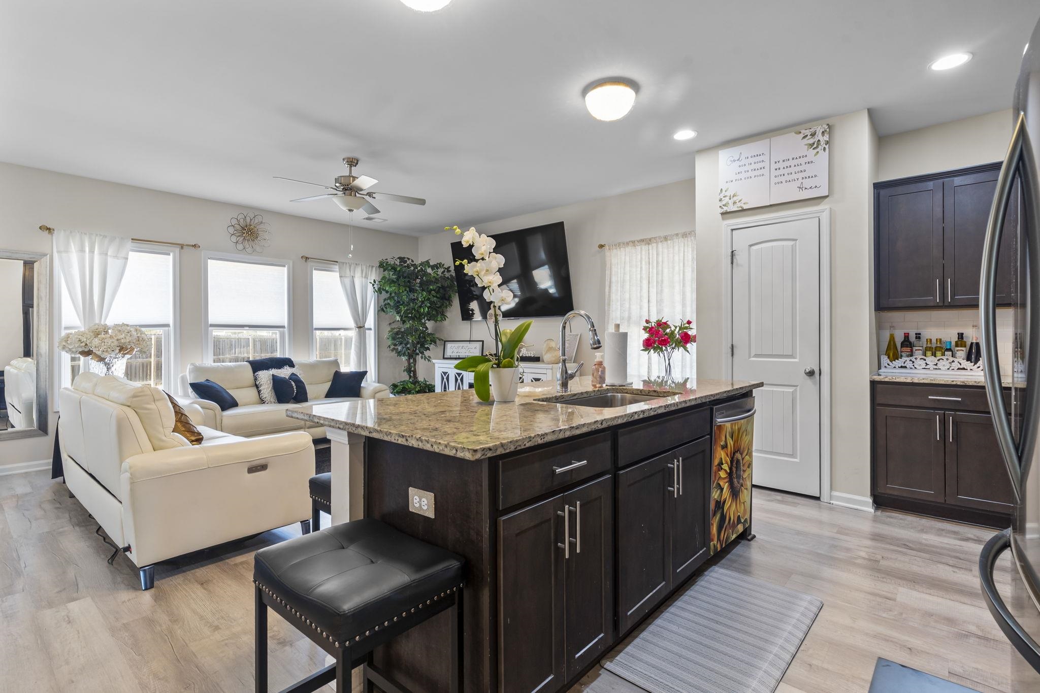 DON'T MISS THIS BEAUTIFULLY MAINTAINED HOME IN NATURAL GAS COMMUNITY 4-bedroom, 2-bath home w/ 4th Bedroom/Bonus Room located on second floor. Offering comfort, style, and energy efficiency in one inviting package. With features like a tankless gas water heater, energy-efficient 14 SEER Gas HVAC system, and a fully sodded yard with irrigation. Inside, you’ll find a spacious open layout with luxury vinyl plank flooring throughout the main living areas & extending into the primary suite. The kitchen is open to living & dining area perfect for entertaining, complete with granite countertops, gas stove top, large island, stainless steel appliances, and modern cabinetry with sleek hardware. Both bathrooms have upgraded toilets and granite countertops continue the upscale feel throughout.This home sits on a peaceful street with privacy fence behind home just minutes from Hwy 22, Hwy 31, shopping, dining, entertainment, THE BEACH, and the waterway. HOA dues are very low and include trash pickup—just another reason to make this home yours! Call now to schedule your private tour!