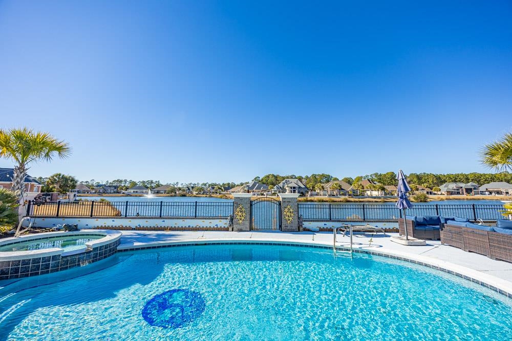 Welcome to 232 Waterfall Circle, A TRULY RARE property in the Prestigious Community of Waterfall thoughtfully appointed with a pool and hottub, outdoor Kitchen, putting green , firepit conversation area , and a large screened porch all designed to enjoy the Amazing views of the community pond and positioned to enjoy both fountains, this beautiful home truly has it all and is designed for comfort, functionality, and unforgettable outdoor living. Step inside to a spacious living room that flows seamlessly into the open-concept kitchen, creating the perfect space for everyday living and entertaining alike. The primary suite is a private retreat, featuring an elegant tray ceiling, a cozy lounge area ideal for relaxing, and two walk-in closets. The luxurious ensuite bath offers double sinks and a walk-in shower, a private bath with a Bidet, providing both style and convenience. Two additional bedrooms are generously sized and share a well-appointed bathroom with a tub/shower combination, making this home perfect for family or guests. Step outside and discover where this home truly shines. The fenced backyard is designed for enjoyment and low maintenance, complete with turf grass, a screened-in back porch, and breathtaking views of the pond. Entertain with ease in the outdoor kitchen, perfect for grilling and gatherings, then unwind in the in-ground pool and hot tub, creating your own private backyard oasis. Additional highlights include a two-car garage and thoughtful features throughout that enhance both comfort and style. Whether you’re hosting friends, relaxing poolside, or enjoying peaceful pond views, 232 Waterfall Circle offers a lifestyle you’ll love coming home to.