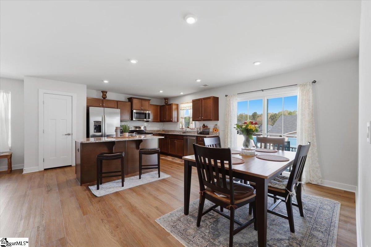 Elevated, low-maintenance living in the heart of Boiling Springs. Built in 2022 and meticulously maintained, this 1,576 sq ft home offers a beautifully finished space where the upgrades are already in place and every detail feels intentional. Natural light fills the open-concept layout, creating a bright, seamless flow between the living, dining, and kitchen areas. The kitchen is accented with a classic subway tile backsplash, adding a clean, timeless layer to the space. A split floor plan provides a sense of privacy, with the primary suite thoughtfully positioned for a more secluded feel. LVP flooring carries through the main living areas, while the fully finished garage with epoxy flooring adds a polished, high-end touch. Outside, the fully fenced backyard is ready to enjoy from the start. Lawn maintenance is included in the HOA—keeping the exterior looking its best with ease and consistency, and allowing more time to simply enjoy the space. Well-built, thoughtfully upgraded, and truly move-in ready, this home offers a refined, easygoing lifestyle in one of the Upstate’s most sought-after areas.