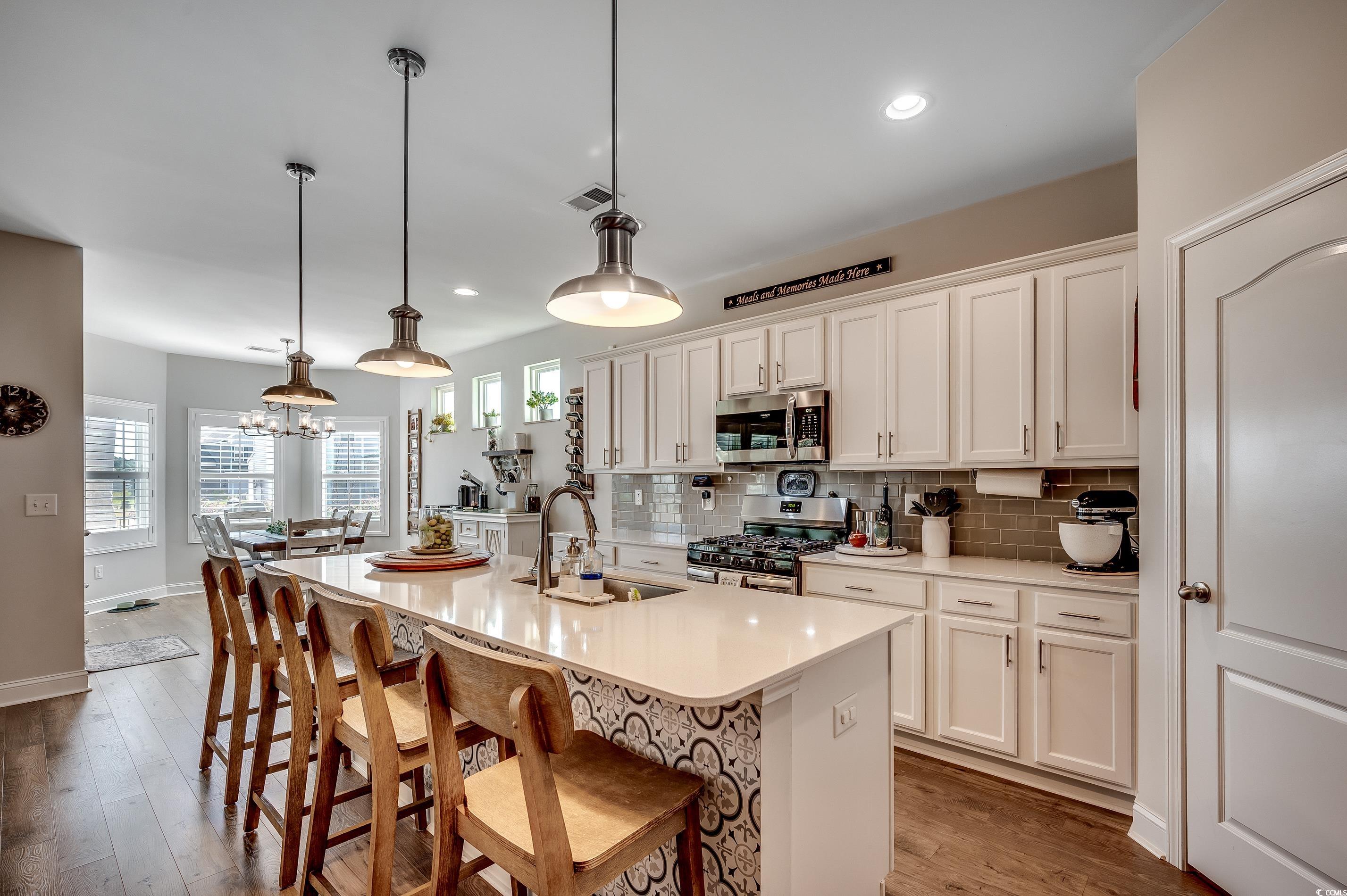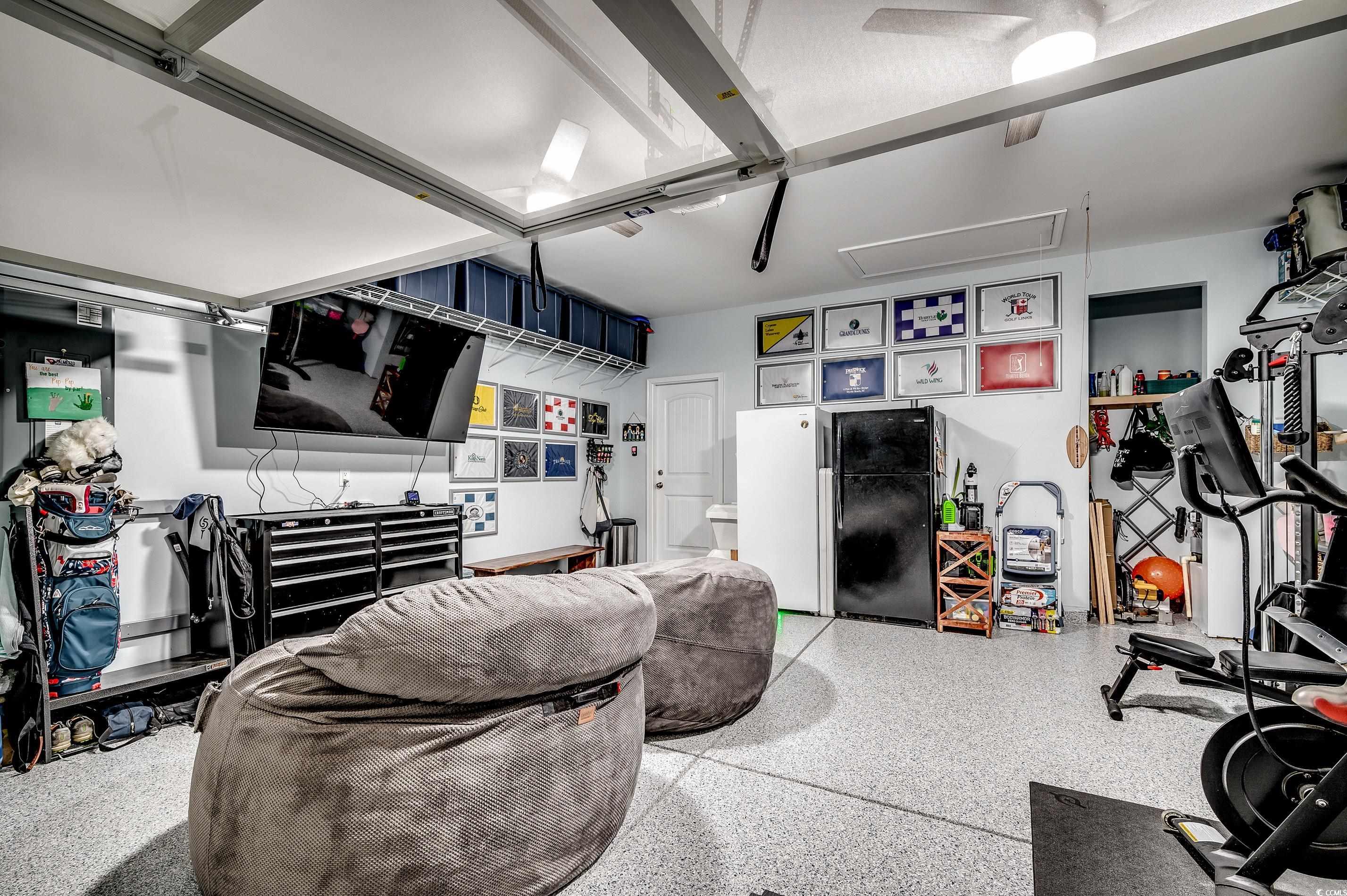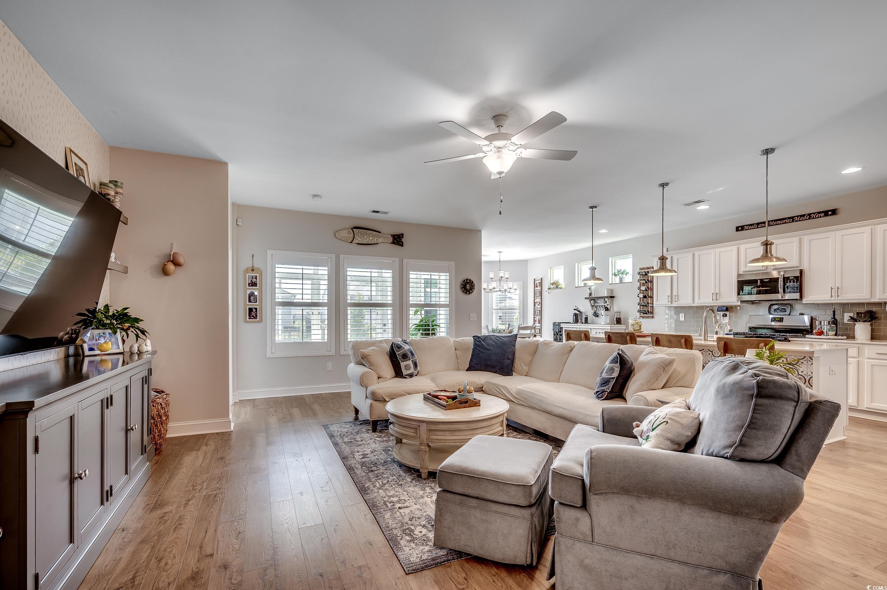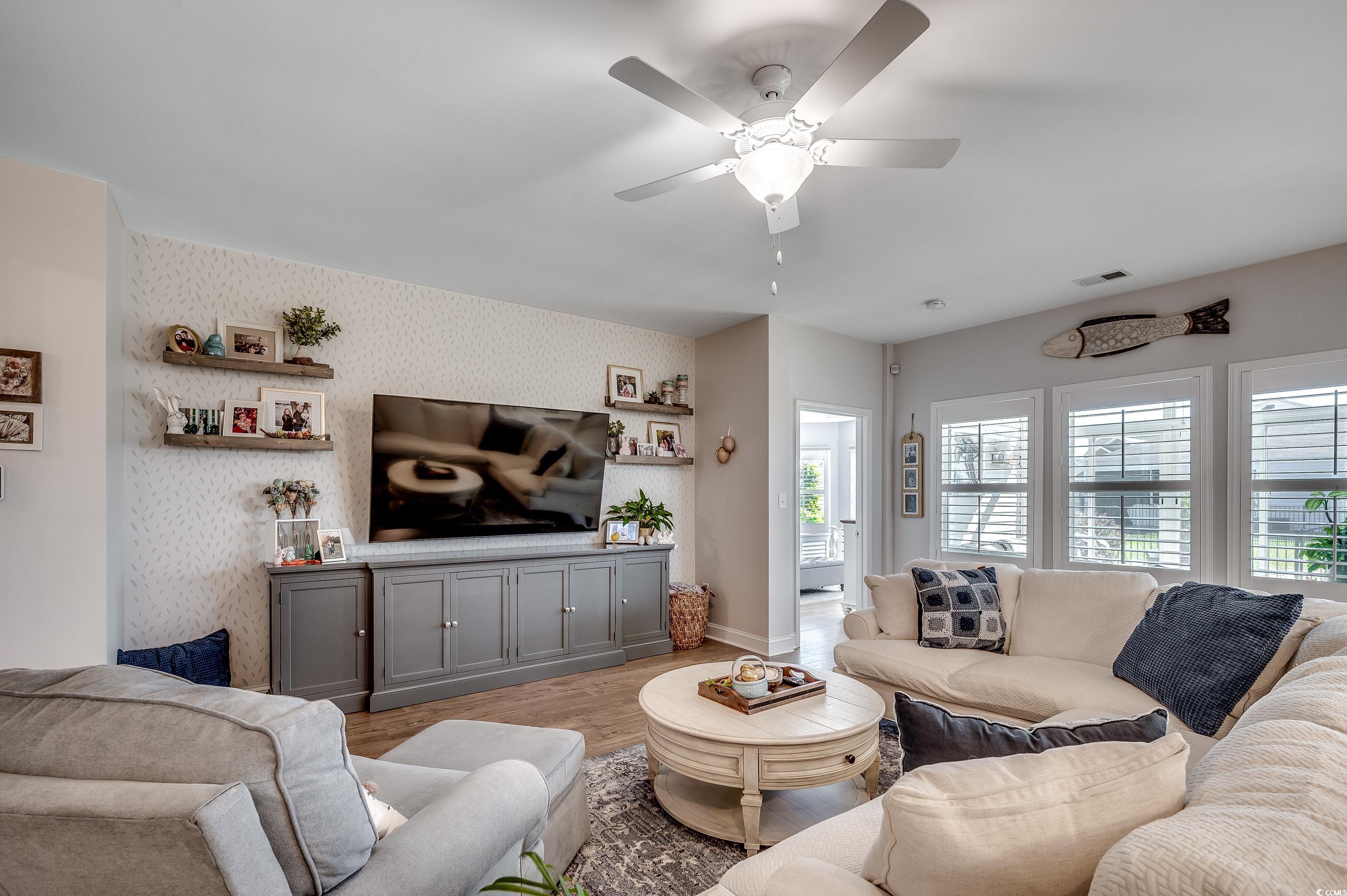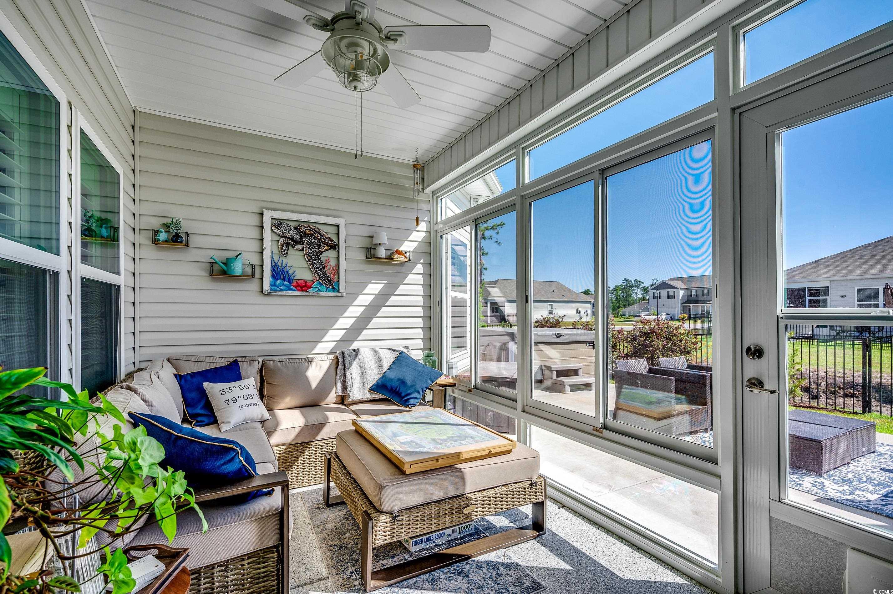 Natural Gas Community! Welcome to 233 Astoria Park Loop in Conway, SC! This beautifully maintained single-level home features 3 spacious bedrooms and 2 full baths, offering a functional split-bedroom layout perfect for both privacy and everyday living. The open-concept living and dining areas flow seamlessly into a bright and airy sunroom—an ideal space to relax or entertain year-round. The owners have thoughtfully upgraded the home with a fully fenced backyard, plantation shutters throughout, and epoxy-coated floors in both the garage and sunroom. The garage also includes a mini split system, making it a comfortable, climate-controlled space for hobbies, storage, or an extra hangout zone. You'll also appreciate the new flooring in the primary bedroom, decorative wainscoting accents and upgraded ceiling fans. The exterior features two additional concrete patio pads, an improved irrigation system, leaf filters on the gutters, and a backyard shed for extra storage, professional landscaping from True Blue Nursery Pawleys Island, SC. Located in the desirable Astoria Park community, this move-in ready home combines comfort, style, and smart updates inside and out. Schedule your showing today!