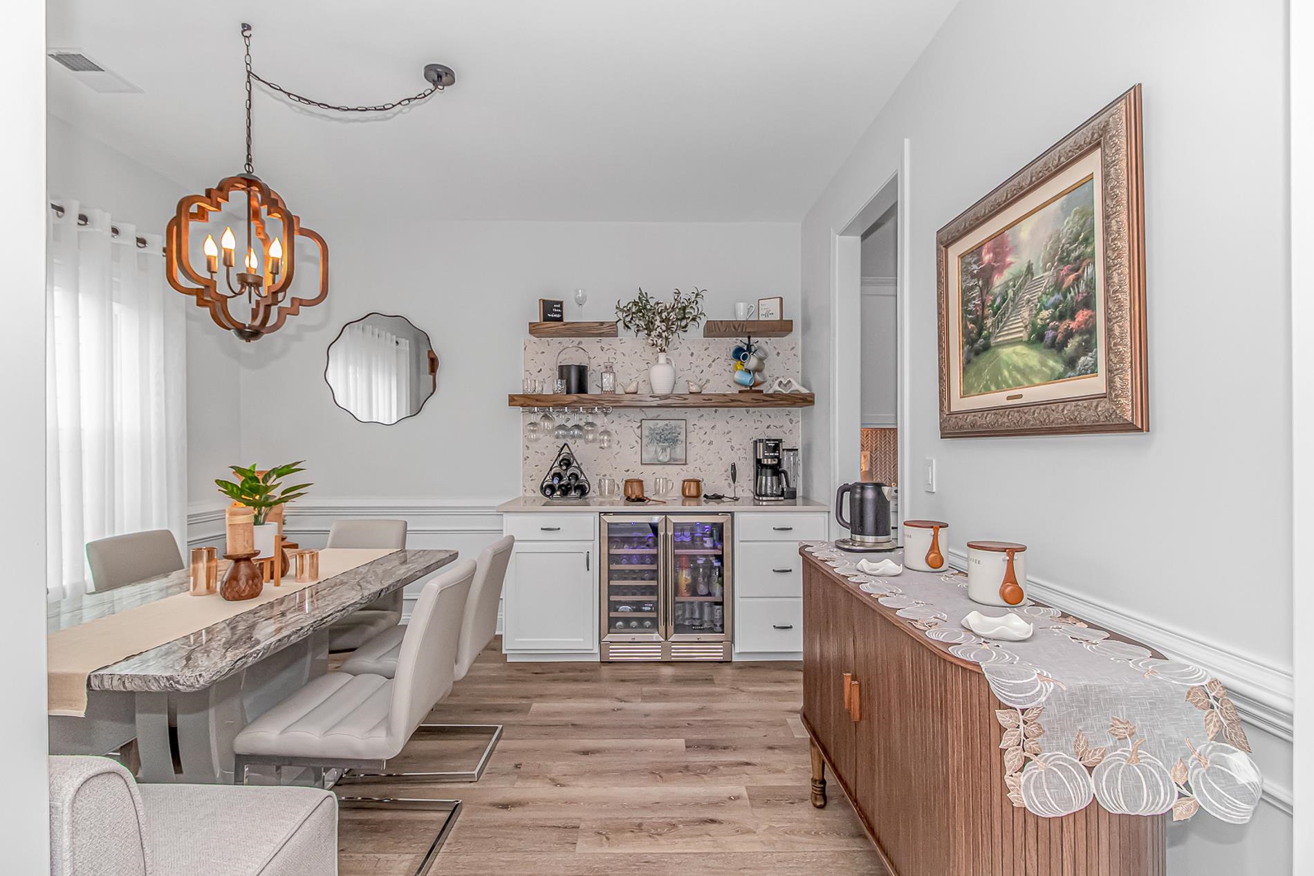 This immaculate 4 bedroom, 3 bath home is nestled within the tranquil & highly sought-after gated community of Hunter’s Grove in Prince Creek. As you arrive, the concrete driveway and walkway lead you to the welcoming covered front porch surrounded by beautiful landscaped beds and manicured lawn, complete with an irrigation system installed. Upon entering, the bright open floor plan includes 9’ ceilings, a spacious kitchen with granite countertops, stainless steel appliances, and a breakfast bar that flows seamlessly into the living room area. Adjacent to the kitchen, the dining room features a custom-built bar/buffet, adding both style and functionality. The main-level primary suite includes tray ceilings, an en-suite bathroom with dual vanity, walk-in shower, as well as walk-in closet with custom barn door & custom closet organizers. Two additional bedrooms and a full bath are also located on the first floor. Upstairs offers a spacious bonus/flex area and a full bath providing excellent separation for guests or extended family. Additional features include: Hardie Plank siding, tankless water heater, whole home filtering system, custom epoxy flooring in garage with cabinet and countertop space, and your own private backyard oasis, featuring a covered rear porch overlooking mature landscaping. The pedestrian-friendly sidewalks allow for walking, biking, and the like. Conveniently located near a plethora of restaurants, grocery stores, shopping, world-class golf, as well as the Murrells Inlet Marsh Walk and Intracoastal Waterway, this home offers the perfect blend of privacy, luxury, and convenience whether as a primary residence, seasonal retreat, or ideal multi-generational home. Act now — schedule your showing today and experience first hand the comfort, quality, and refined lifestyle this home offers!