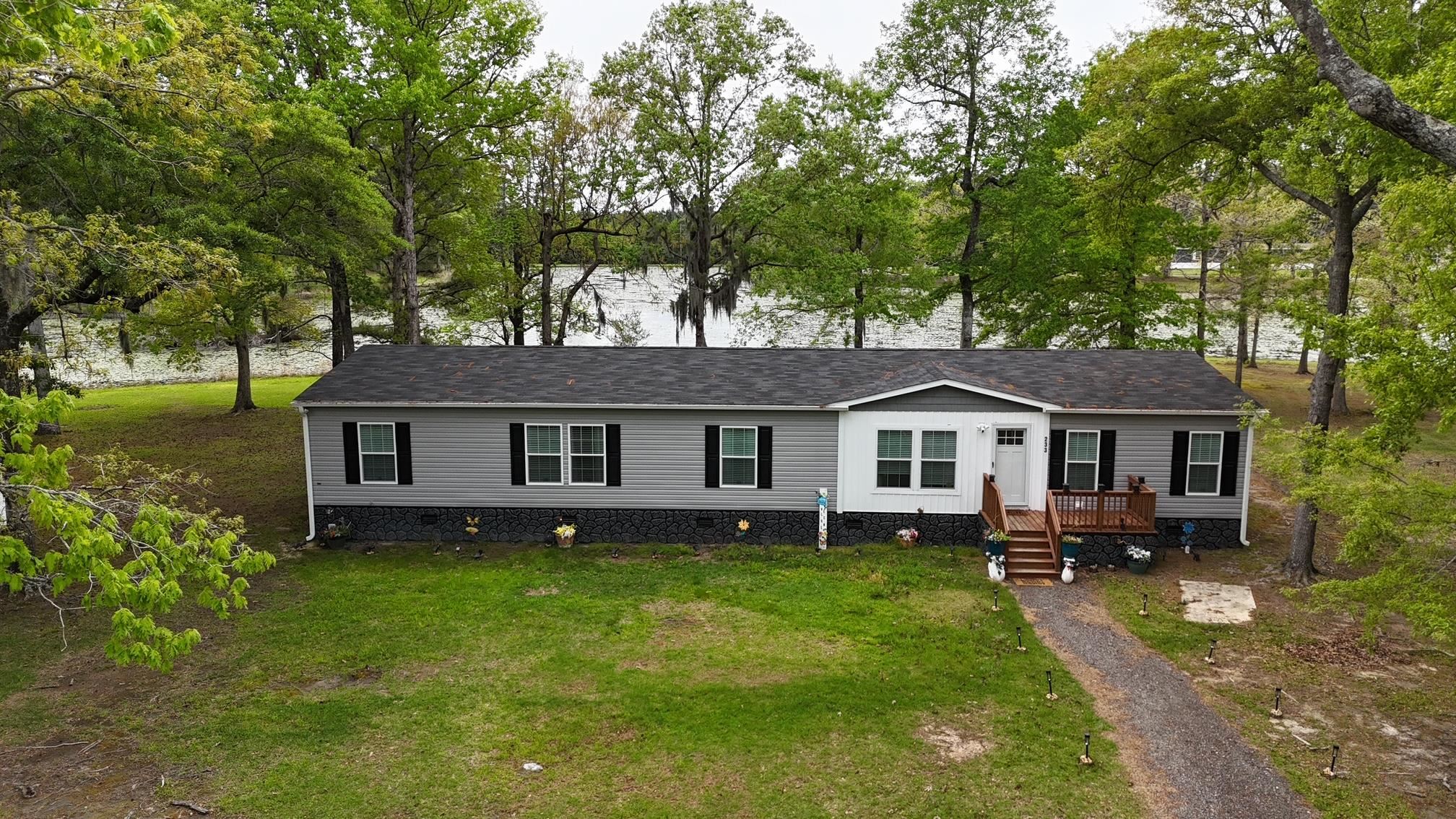 Welcome home to 233 Williamson Lake Circle in Conway, SC! This beautiful 2024 Freedom custom built home by Champion sits on one of the most coveted lots within Williamson Estates located just off Hwy 905 within 30 minutes to all the Grand Strand has to offer and 15 minutes from downtown Conway. This home has been meticulously cared for and has all the bells and whistles including an upgraded kitchen package with all stainless steel appliances, stainless farm sink, prep island, pantry and tons of storage for all your kitchen items. One of the best features of this 4 bedroom 2 bath home is the 2nd family room which welcomes you to sit down and relax by the cozy electric multi colored fireplace lighting. The massive primary bedroom is a wonderful retreat with the ensuite bathroom featuring dual bowl vanities, a tile stand up shower and a separate soaking tub along with a huge walk in closet including tons of space and storage. The home is being sold completely furnished including Broyhill bedroom furniture, TV's, Raymour and Flanagan furniture, multiple hutches, built in cabinetry, desks, chairs and bedding all convey with an acceptable offer. One of the many upgrades that you notice right away when entering the home are the barn doors in the family room along with the upgraded West Shore doors leading to the back porch that have built in blinds for privacy and shade during the summers. Perhaps the most notable features of this property is the expansive yard space. This home features a large front yard with a long crushed rock driveway that could fit up to 6 cars easily. The light features illuminate along the driveway and home at night in beautiful color patterns. Not to be outdone, is the backyard with beautiful sunset views over the lake which backs up directly to this property. There are also a number of majestic trees that offer great shade during the summer. There are just a few items that are sentimental to the seller which are not staying with the home including the dining room table and matching hutch, a few other furniture storge pieces but almost everything else can stay with an acceptable offer. This home is on leased land which includes trash pickup by the city. Backyard fencing and a storage building also conveys with the sale of the home. Call for more details. This is a fantastic opportunity to own a wonderful home that has a lot to offer its new owner. Schedule your private showing today!