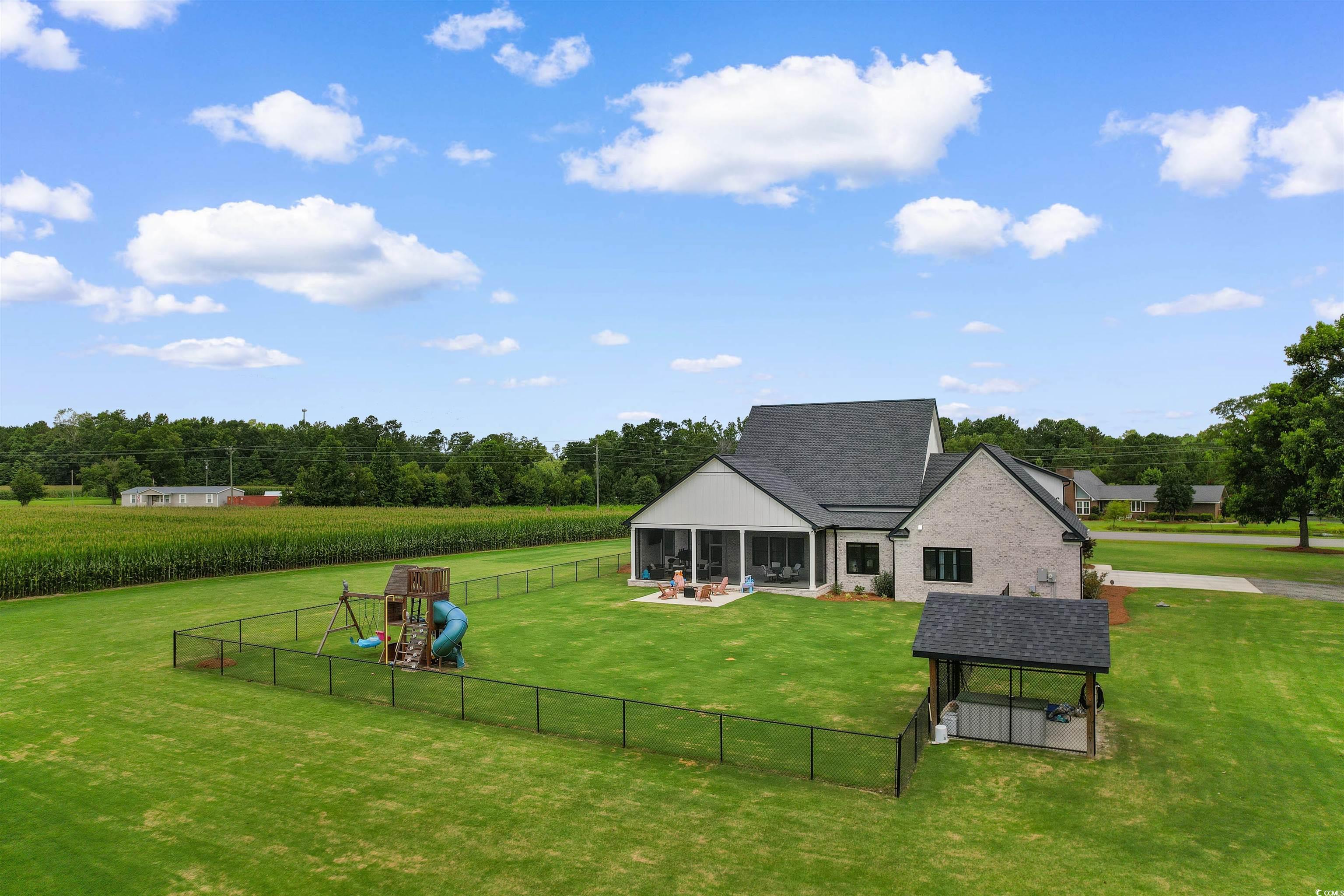 Modern Elegance Meets Comfortable Living – Welcome to 2336 Highway 1115. Experience refined country living in this stunning custom-built home, ideally located in the highly sought-after Aynor School District and situated on neatly 9 acres with no HOA. Boasting 6 bedrooms and 3.5 bathrooms, this spacious residence offers the perfect blend of sophistication, functionality, and privacy. Upon entry, you’re greeted by a grand foyer that opens to a flexible office space—complete with a stylish accent wall and closet—easily adaptable as a bedroom if needed. The expansive kitchen is a chef’s dream, featuring custom cabinetry, solid surface countertops, a walk-in pantry with shelving and cabinetry, oversized refrigerator & freezer, range hood, dishwasher, 48" gas range and so much more. Enjoy casual meals in the cozy breakfast nook or host gatherings in the generous formal dining room. The living room offers a warm and inviting atmosphere with a custom built electric fireplace and large windows that flood the space with natural light. The luxurious primary suite showcases a tray ceiling, dual walk-in closets, double vanities, a private water closet, a spa-style tiled shower, and a relaxing garden tub. Additional features include: Two bedrooms connected by a Jack-and-Jill bathroom, a fourth bedroom with its own full bath, a spacious bonus room above the garage that could also be used as a bedroom, well-appointed laundry room with custom tile and ample cabinetry, convenient drop zone area with built-in storage, upgraded R value insulation, 3 zone A/C unit, and much more. Outdoor living is just as impressive, with a screened-in rear porch ideal for entertaining, a fenced backyard, raised slab (4 block high), a side-load two-car garage, and a concrete parking pad with a welcoming sidewalk leading to the front entry. Homes of this caliber, with acreage and custom finishes, are a rare find. Don’t miss your opportunity—schedule your private showing today!