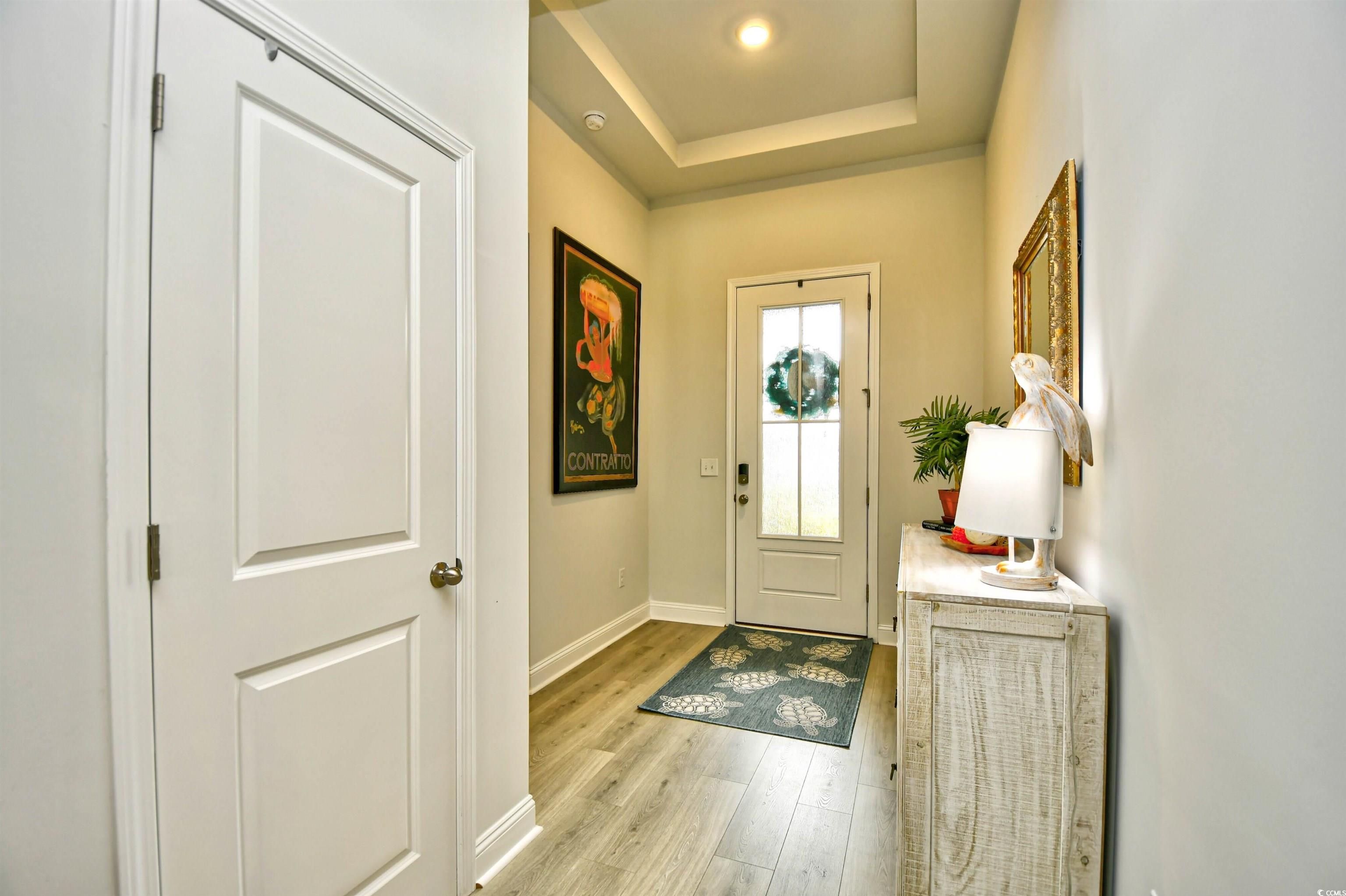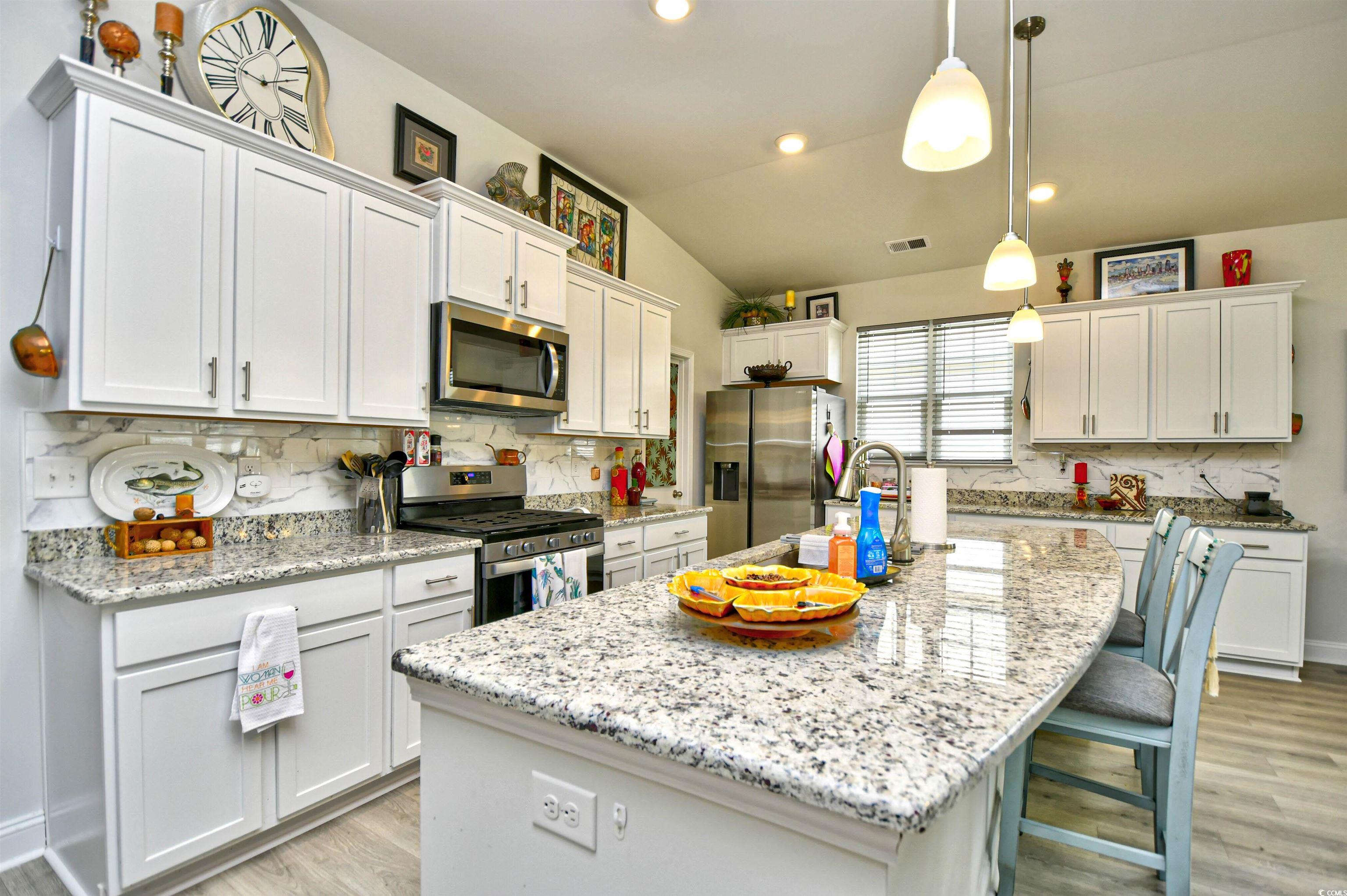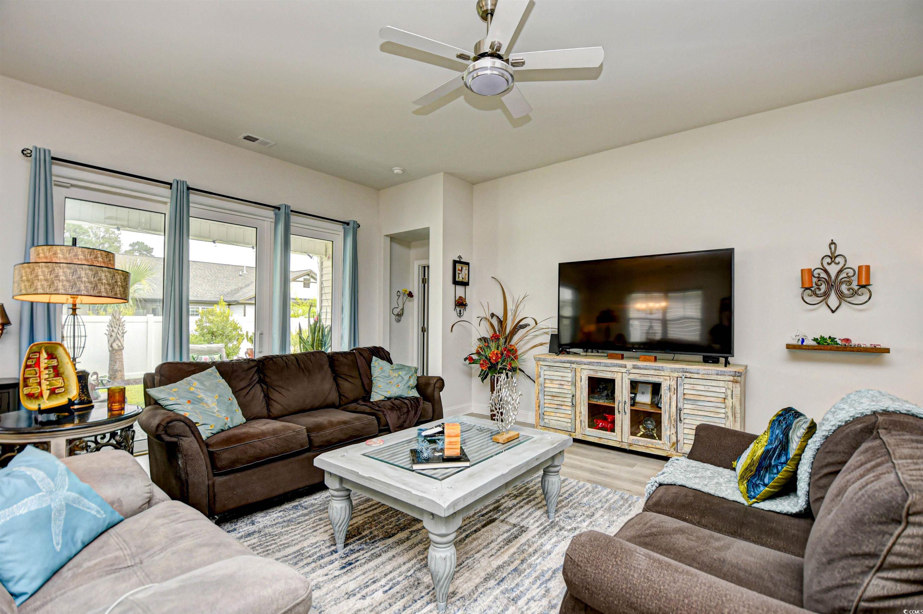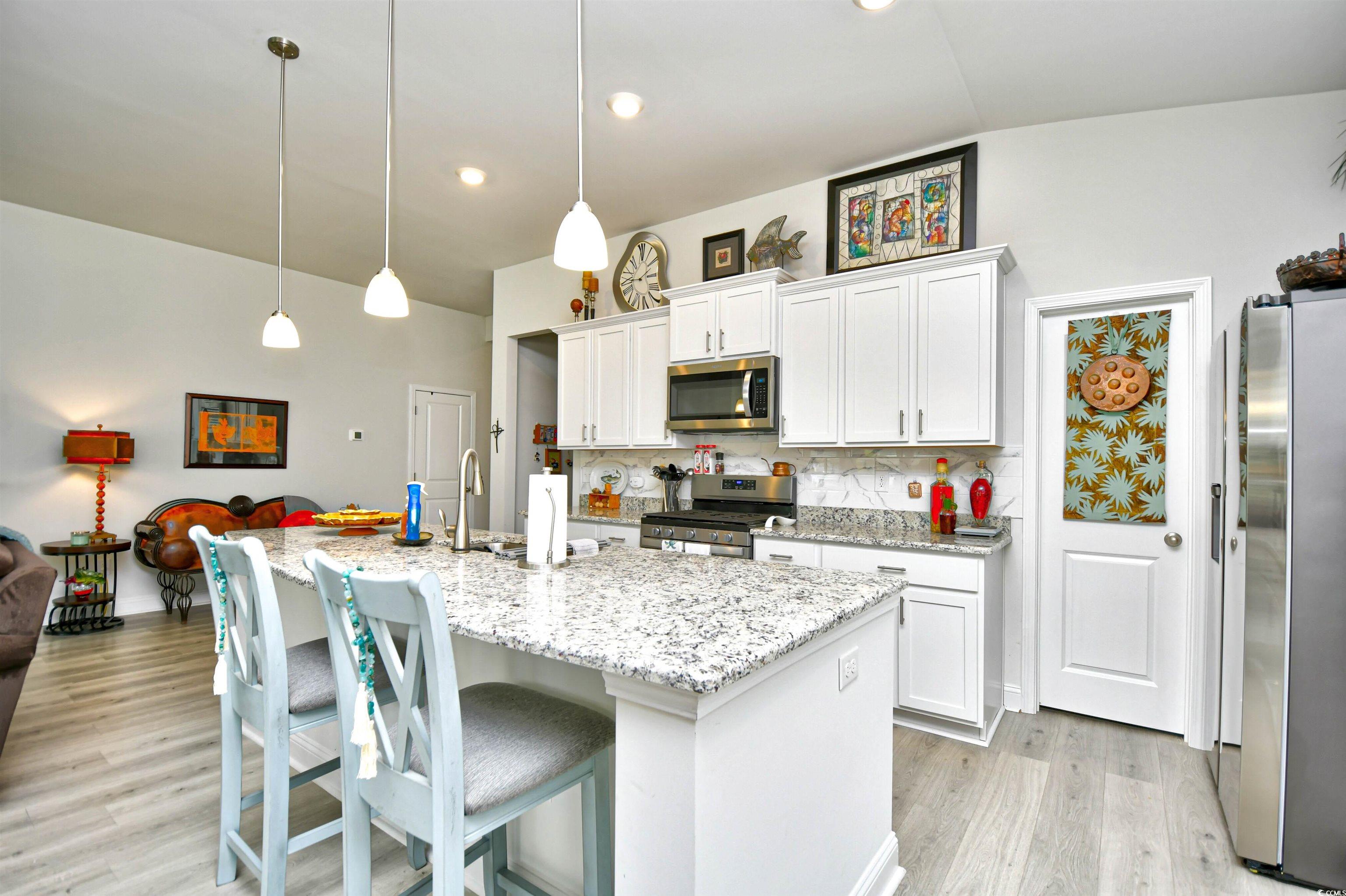 This beautiful home features an open concept floor plan with 9-foot high ceilings and an abundance of natural light. The gourmet kitchen includes granite countertops, white 36” staggered cabinets, stainless steel appliances and a huge walk-in pantry. The luxurious primary bedroom comes with tray ceiling and en suite bathroom with double vanities and two linen closets. The split floor plan provides the ultimate privacy between the owner’s suite and secondary bedrooms located towards the front of the home. The fenced-in backyard features beautiful palm trees. Hidden Brooke is just minutes away from the beach, restaurants and shopping in North Myrtle Beach. The community has a pool, lake, fire pit and exercise room. Very convenient to highway 9 and easy access to highway 31. Seller is a licensed SC the real estate agent