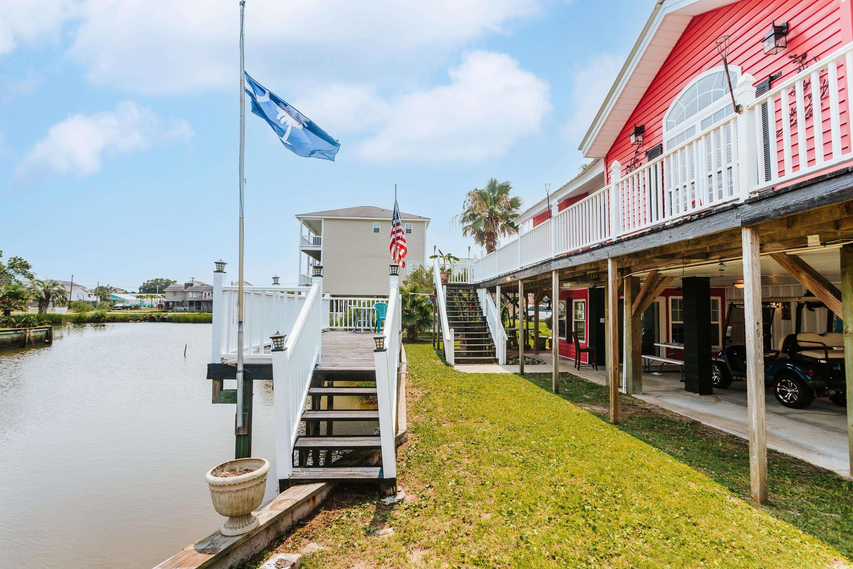 Great price for this beach house! Only a short 2 blocks to the beach! Beautiful lot! Walk or golf cart to the close beach access. Wrap around decks surrounded with water views of a salt water tidal marsh! Fish off the dock. Plenty of outdoor space to enjoy! The firepit is great for evening gatherings. The home is light and bright with plenty of windows. Solid wood flooring, walls and ceilings, make it a true Southern Charmer! Plenty of outside seating areas, sunbath on the decks, read a book on the front porch, or have a BBQ with covered patio seating. Large storage area down stairs with laundry and plenty of room for your beach toys! A one car garage is great for your beach car or golf cart! Whether for an investment property, second home, or primary resident add this one to your list! NO HOA, SHORT TERM RENTALS permitted.
