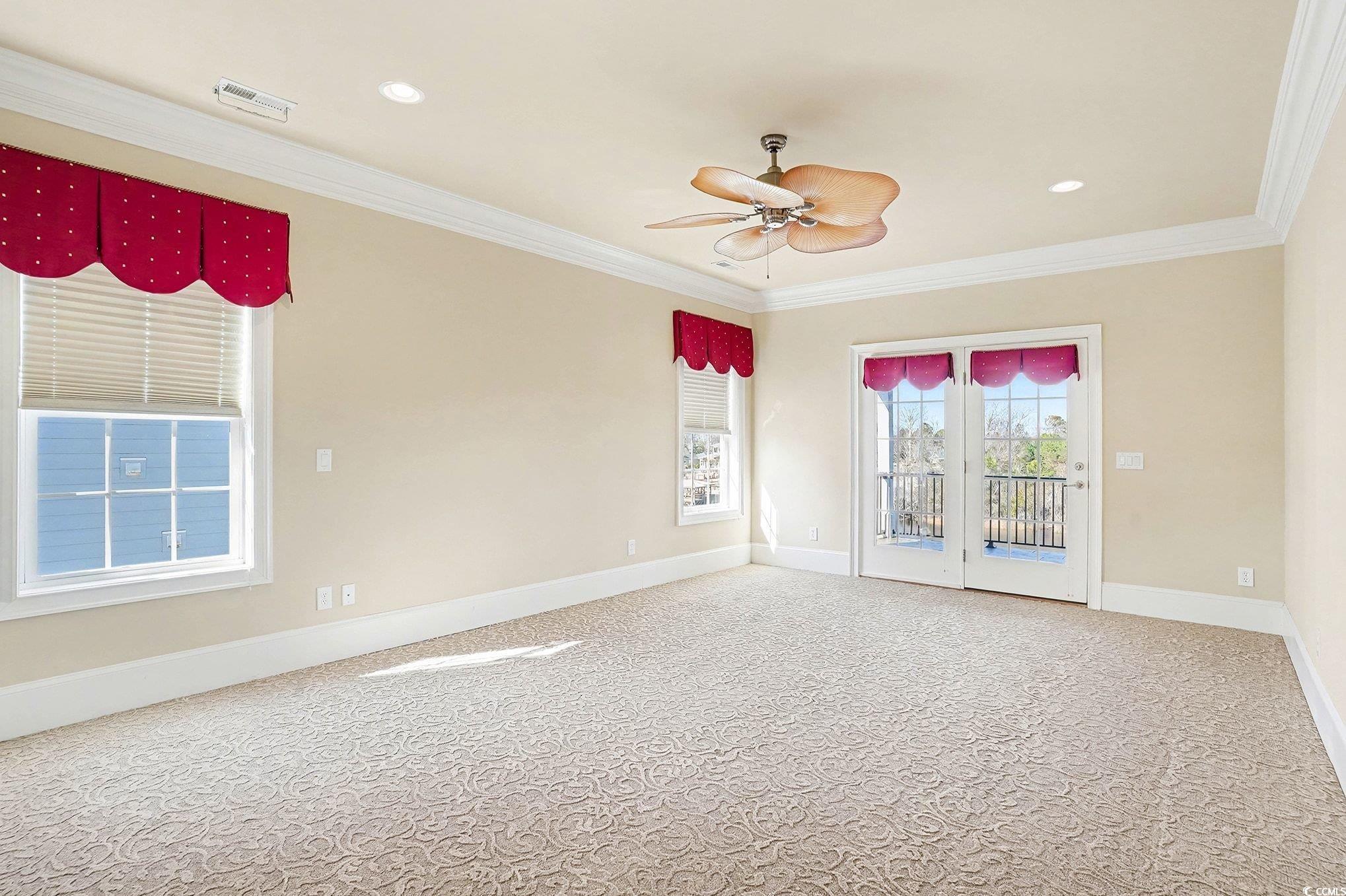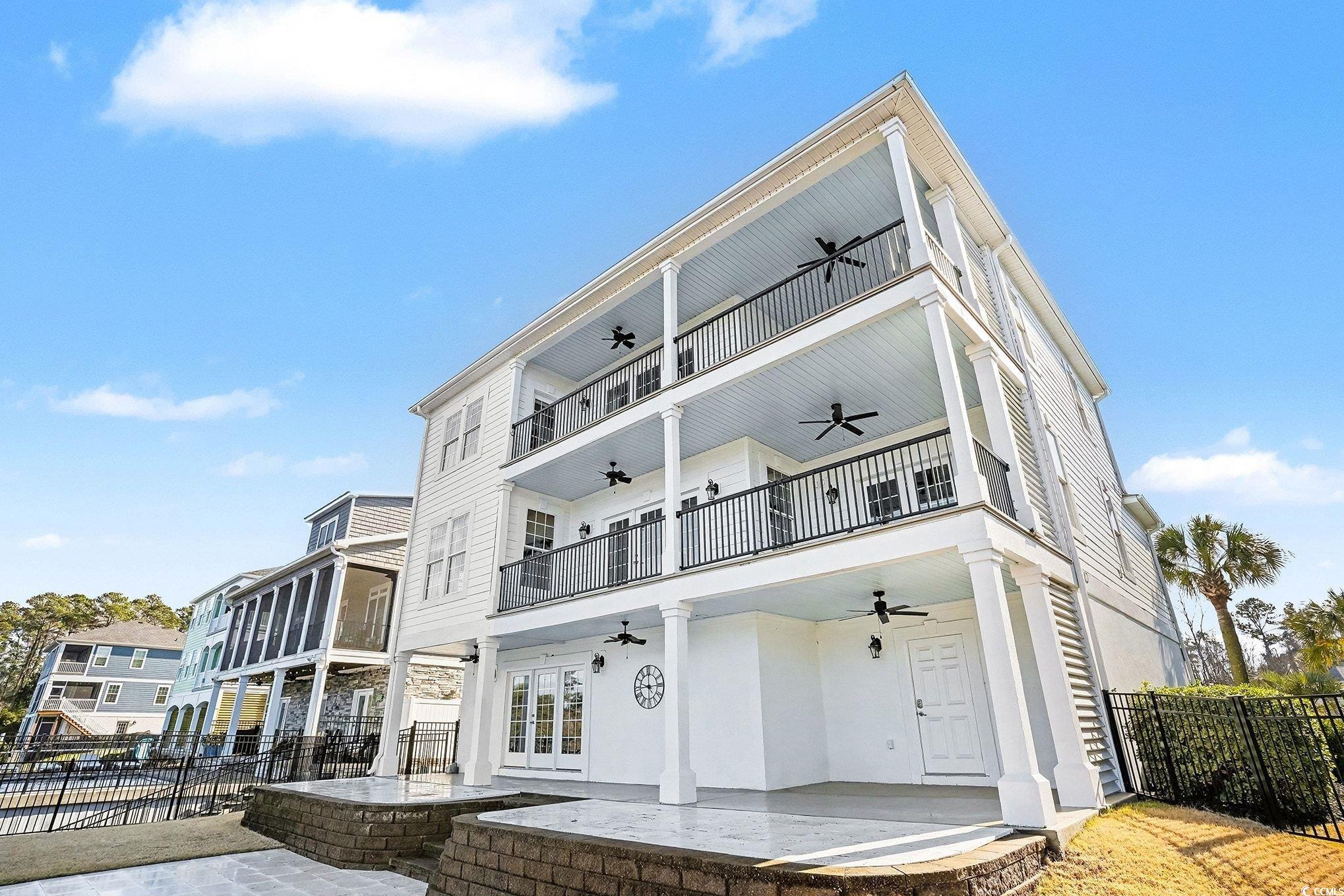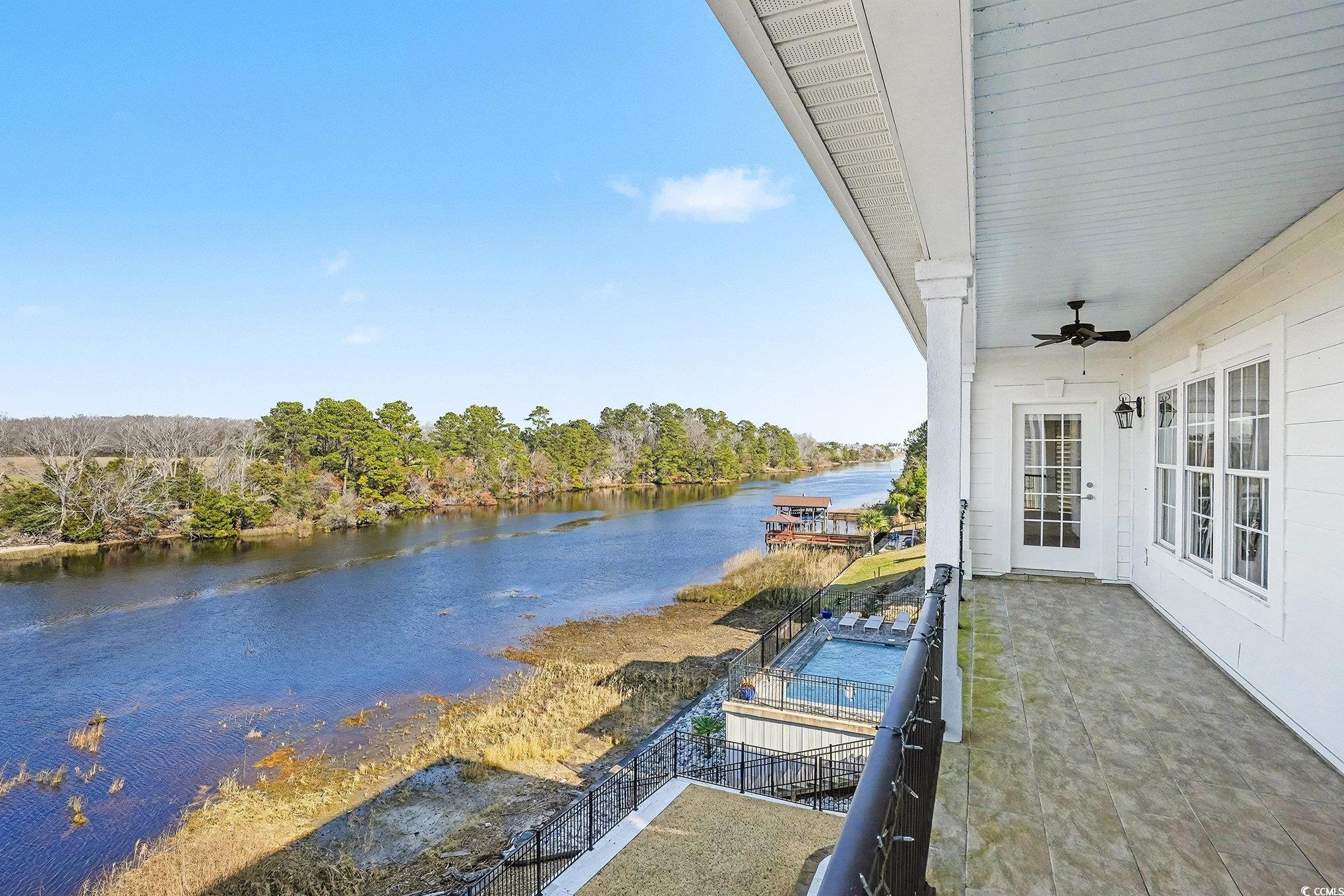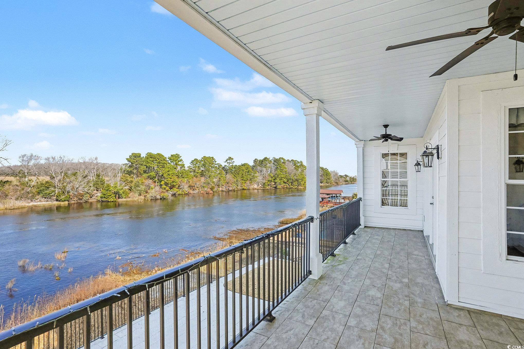 Waterway-front luxury meets coastal lifestyle at 235 Palmetto Harbour Drive, a rare 4-bedroom, 4.5-bathroom estate set directly on the Intracoastal Waterway in the exclusive, gated Palmetto Harbor community. The home welcomes you through striking iron front doors that open into a grand living space with soaring ceilings, oversized windows, and uninterrupted waterway views that feel endless from nearly every angle. A second living area on the ground floor creates the perfect entertainment escape, complete with a custom bar, lounge seating, and seamless access to outdoor terraces and patios that were fully replaced and redesigned in 2023. Each main bedroom features a private ensuite bath, abundant natural light, and covered balcony access, including two spacious master suites that connect to one of three levels of waterfront balconies, offering ocean breezes and protected, undisturbed views thanks to the preserved land across the water that will never be developed. The chef-driven kitchen anchors the home with high-end GE Monogram stainless appliances, new quartz countertops, a refined quartz backsplash, 42-inch wood cabinetry with soft-close drawers, a walk-in pantry, and a breakfast bar that flows effortlessly into the dining and living areas for everyday comfort and function. The primary master retreat offers French doors opening to the balcony and a spa-inspired bath featuring a jetted soaking tub, Danze sauna shower, dual vanities upgraded with quartz surfaces, and space designed for recharge. The oversized 2-car garage fits both vehicles and a golf cart with ease, and the attached 190-foot heated and cooled storage area adds unmatched convenience and flexibility. Major system and design updates include all three HVAC units replaced (2 in 2019, 1 in 2021), a new seawall and retaining wall added in 2019, freshly painted exterior and most interior paint refreshed in 2022, epoxy-sealed garage floors, upgraded porch lighting and ceiling fans, and 3M-tinted windows for full UV protection throughout. Located just minutes from the Atlantic Ocean by golf cart and close to top dining, shopping, entertainment, and medical facilities, Palmetto Harbor delivers a rare blend of privacy, convenience, and true waterfront prestige.