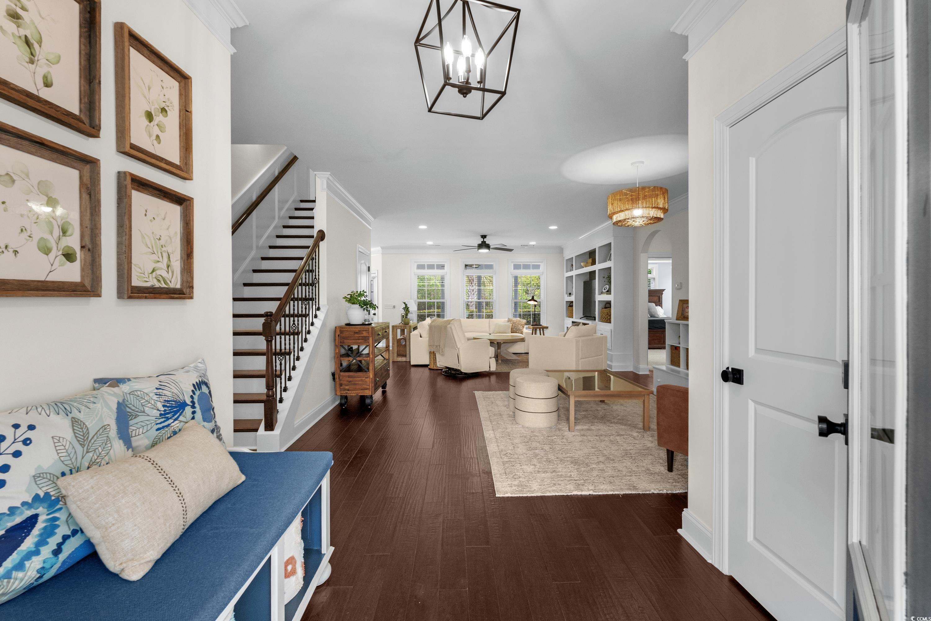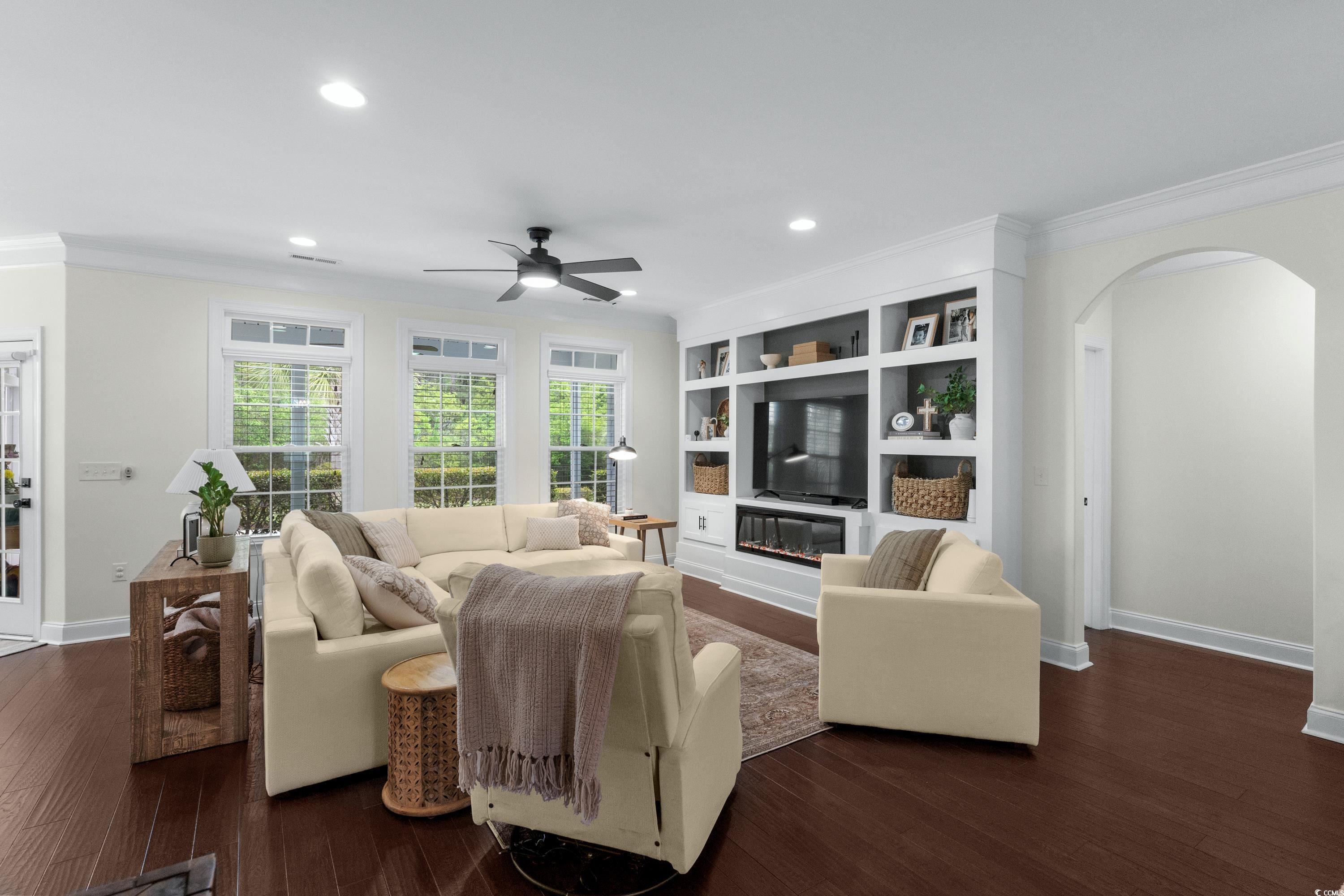 Luxury meets livability in this beautifully updated 5-bedroom, 3-bath home in Plantation Lakes! An open-concept layout highlights rich hardwood floors, built-in cabinetry, and a modern electric fireplace. The chef’s kitchen impresses with a massive wainscoted island, quartzite countertops, stainless steel appliances, tile backsplash, and a walk-in pantry. Enjoy a bright breakfast nook with built-in bench and storage, a screened-in porch, and a fully fenced backyard with mature landscaping, fire pit, and entertaining patio. Upstairs features a versatile loft and clever play nook under the stairs. The spa-inspired primary ensuite steals the show with a zero-entry tiled shower, soaking tub, dual vanities, and a tray-ceiling primary suite—your private retreat after a long day. Additional upgrades include a tinted glass front door, epoxy-coated garage floor, and a tiled laundry room with built-ins. Residents enjoy resort-style amenities—multiple pools, clubhouse, fitness center, playground, pickleball, tennis, basketball, volleyball, boat ramp, and day docks. Move-in ready, modern, and meticulously maintained—this home truly has it all!