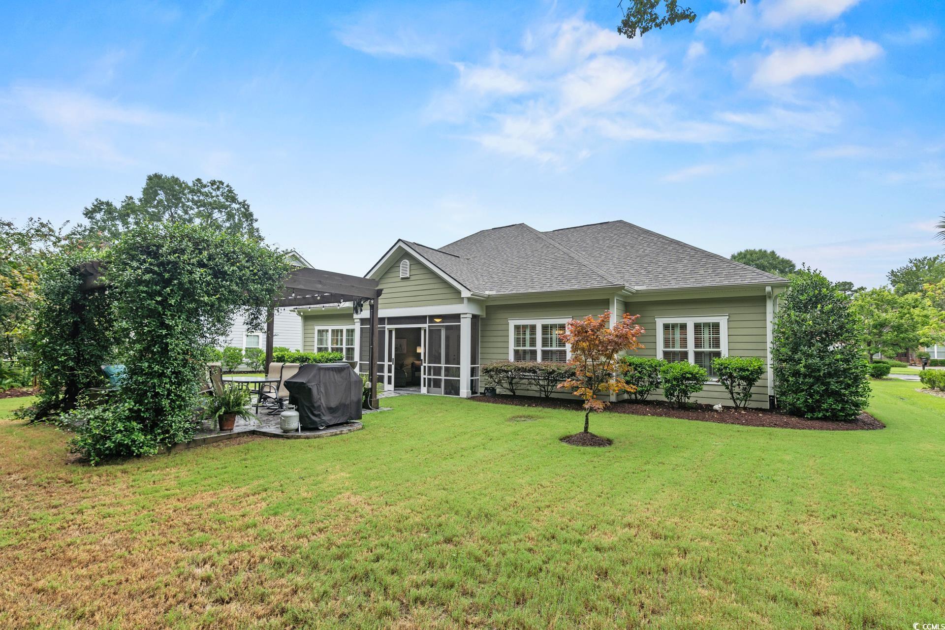 Spectacular custom built home in Cypress River Plantation. This three bedroom, two bath with a large den/study is beautiful and offers loads of upgrades. So much attention to detail. Open concept with coffered ceilings throughout. A spacious primary suite with his/her closets. Whirlpool tub and custom tile shower. Stainless steel appliances and a large kitchen island. Enjoy year-round living with a screened lanai and a backyard that that is low maintenance and showcases a large pergola. All of this in a gated community with 24 hour security, water access, boat storage, and a very impressive clubhouse and pool. This home is stunning.