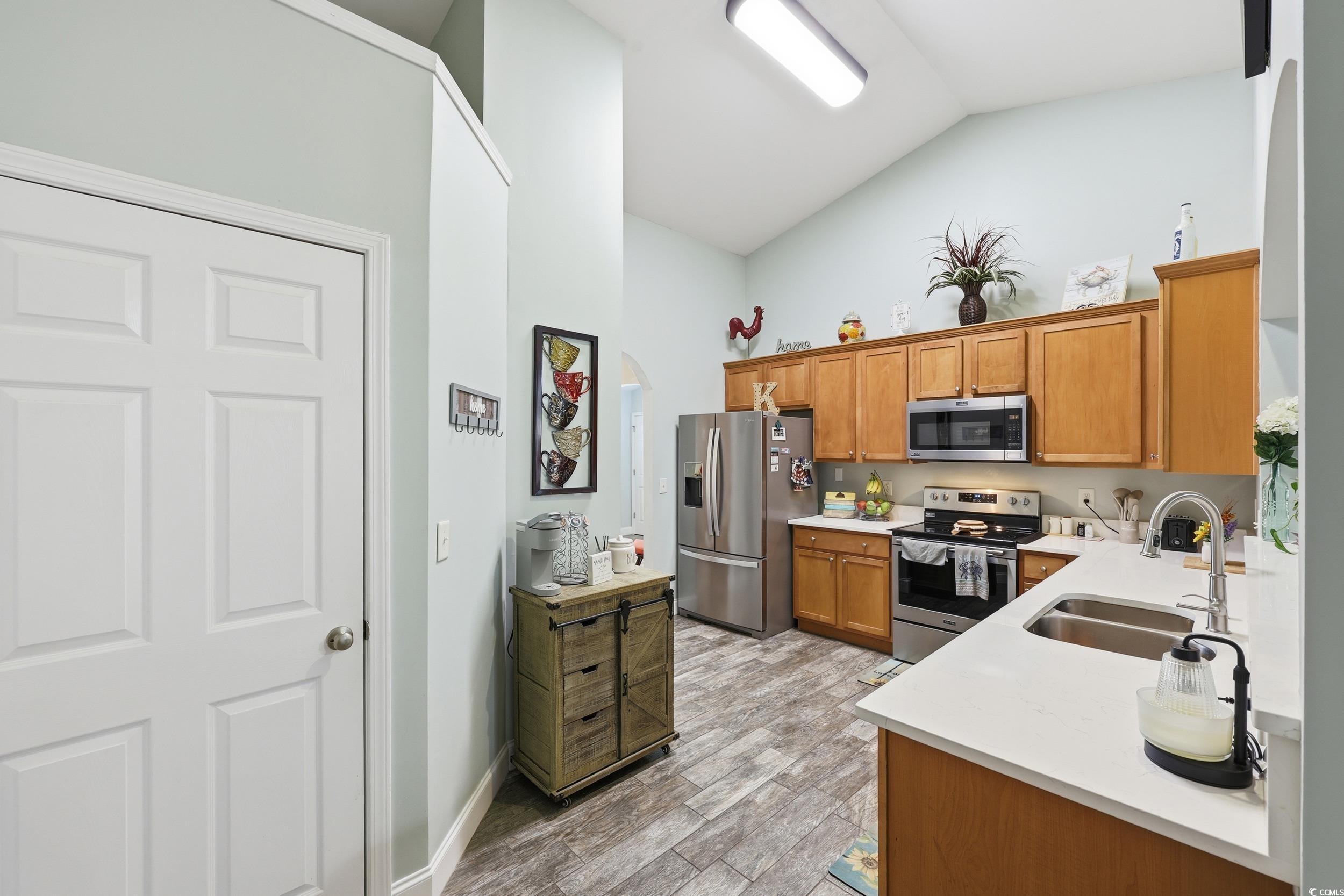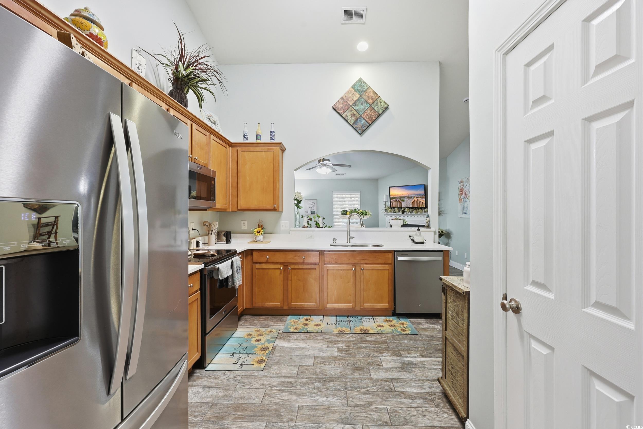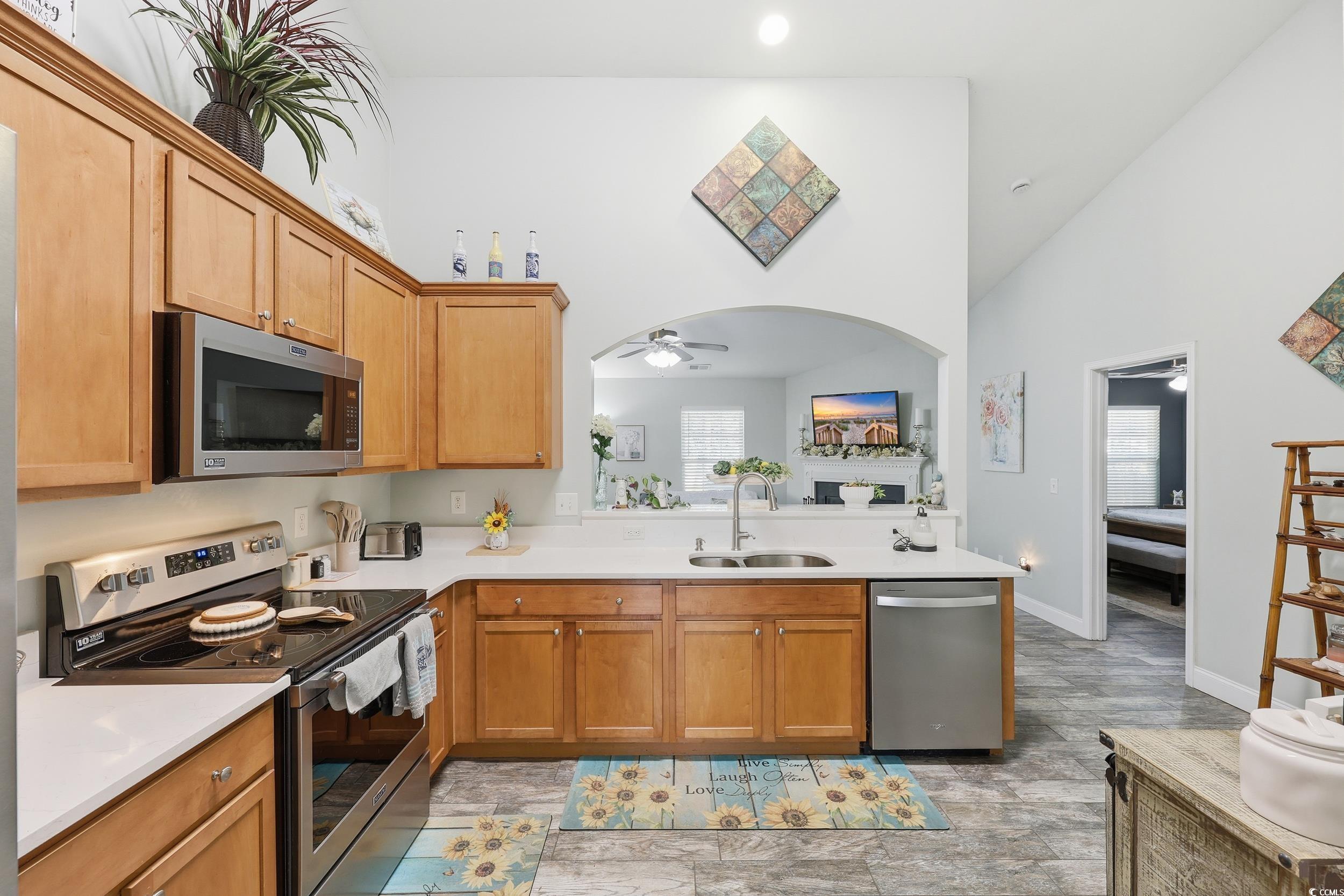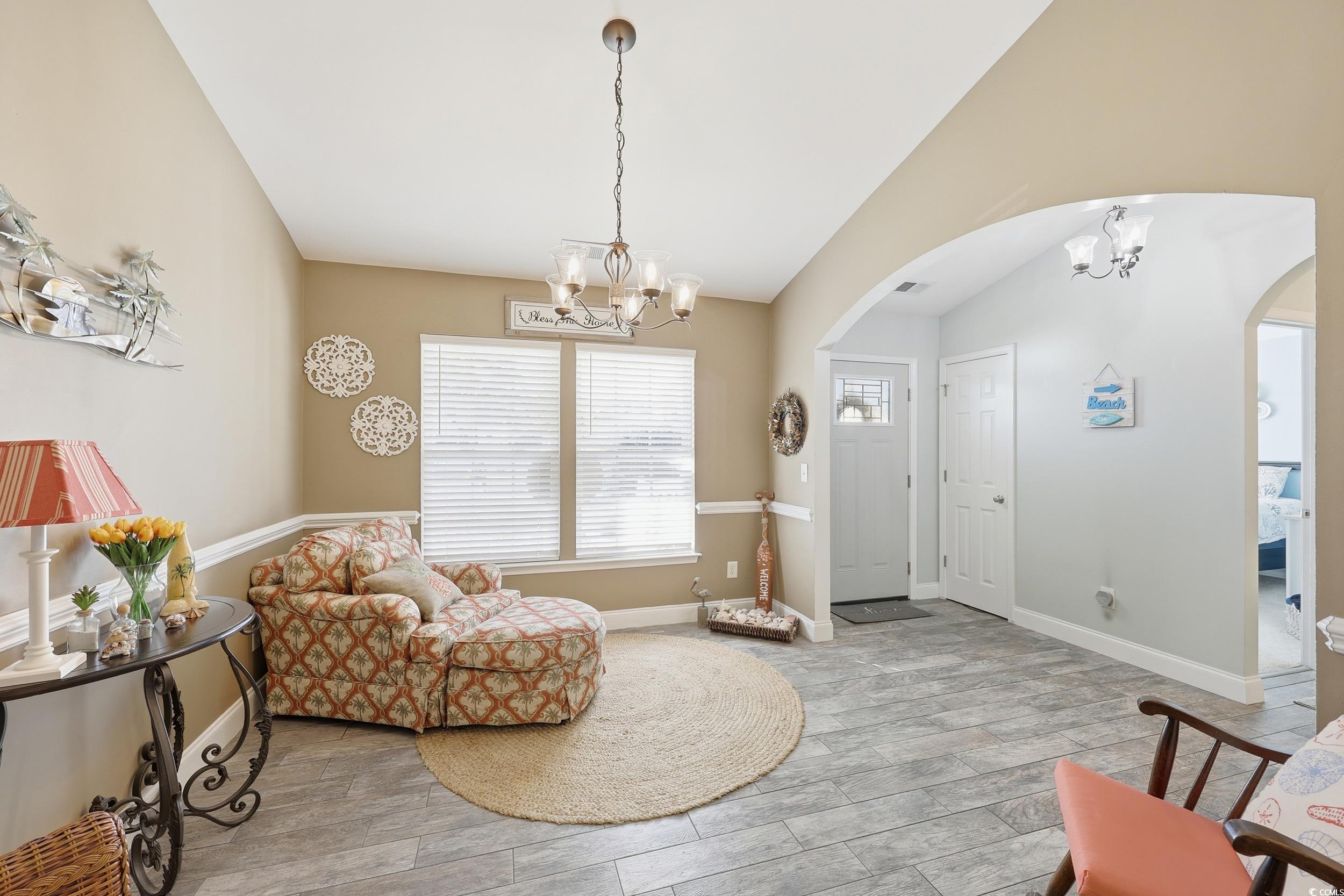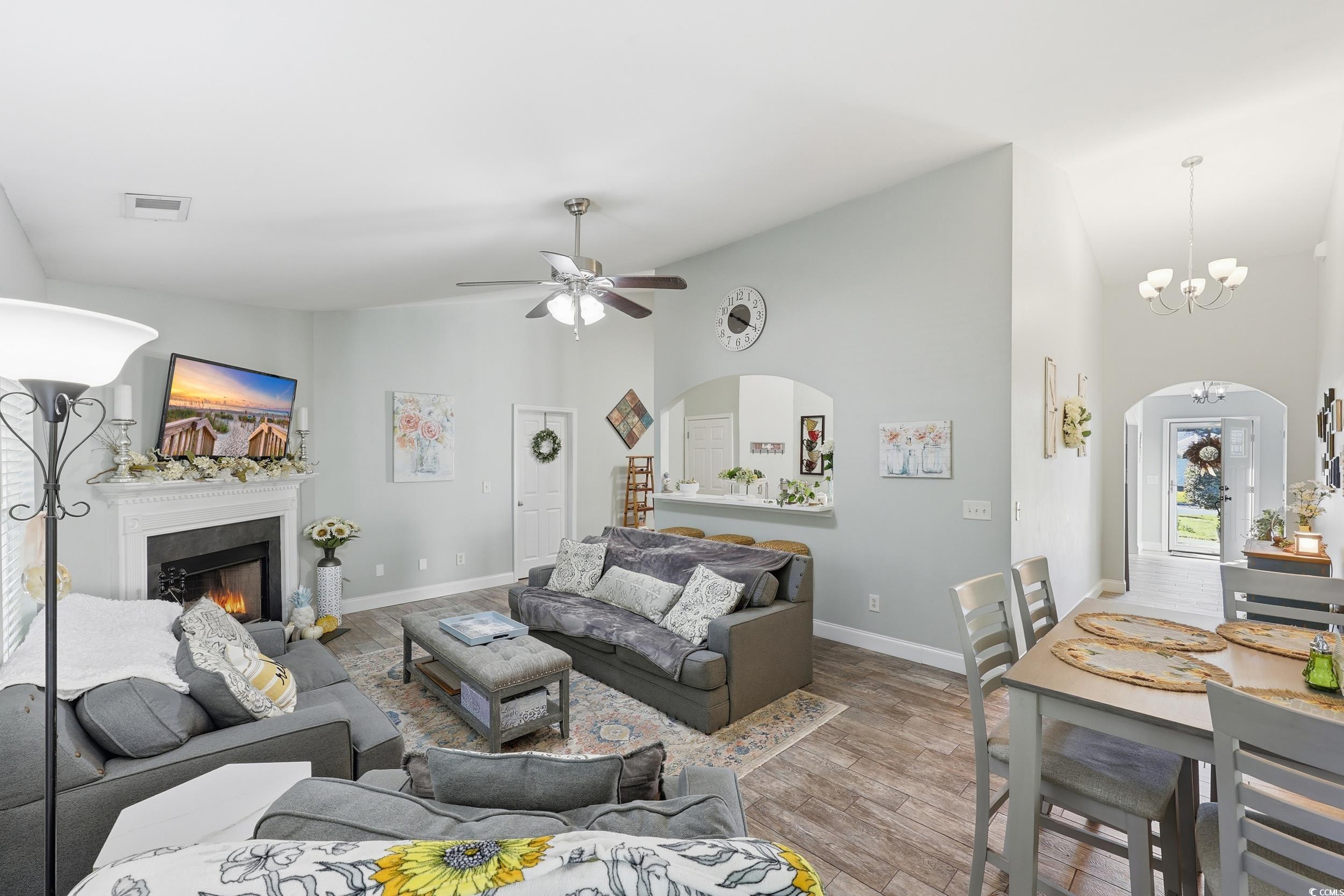 Welcome to this beautifully updated and meticulously maintained 3-bedroom, 2-bath home located in the highly desirable NO HOA community of The Glade! Perfectly situated just minutes from Highways 22 and 31, this home offers quick access to shopping, dining, golf, and is only a short 15-minute drive to the beach. From the moment you arrive, you’ll notice the pride of ownership throughout, with a roof that’s only 2 years old and tasteful updates inside and out. The inviting living room features vaulted ceilings, a cozy wood-burning fireplace, and plenty of natural light, creating a warm and welcoming atmosphere. The formal dining room offers flexibility and can easily serve as a home office, sitting area, or flex space to suit your needs. The remodeled kitchen is both stylish and functional, featuring quartz countertops, 42-inch cabinetry, stainless steel appliances, tile flooring, and ample counter and storage space—perfect for anyone who loves to cook or entertain. The split bedroom floor plan provides privacy, with the spacious primary suite tucked away for relaxation. The primary bedroom features a tray ceiling, walk-in closet, and a luxurious en suite bath with a fully tiled shower and dual-sink vanity. The guest bedrooms are generous in size and share a well-appointed second bath. Tile flooring flows throughout the main living areas and kitchen, with carpet only in the guest bedrooms for comfort. Additional features include a full-sized laundry room, tankless hot water heater, and ceiling fans in every bedroom for year-round comfort. Outdoor living is just as enjoyable with a screened porch overlooking a fully fenced, oversized backyard, complete with a fire pit—perfect for gatherings, barbecues, or quiet evenings under the stars. The charming front porch adds to the home’s curb appeal and provides another space to relax and enjoy the neighborhood. This home combines modern updates, quality craftsmanship, and a fantastic location—all with the freedom of no HOA. Don’t miss the opportunity to own this move-in ready gem just minutes from everything the Grand Strand has to offer. All measurements are approximate.Buyer and buyers agent responsible for verification of all information.
