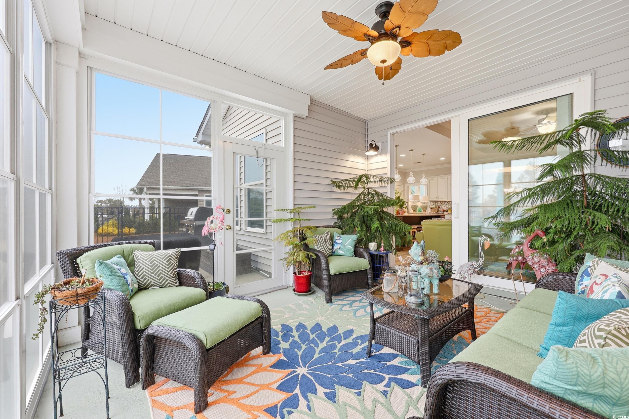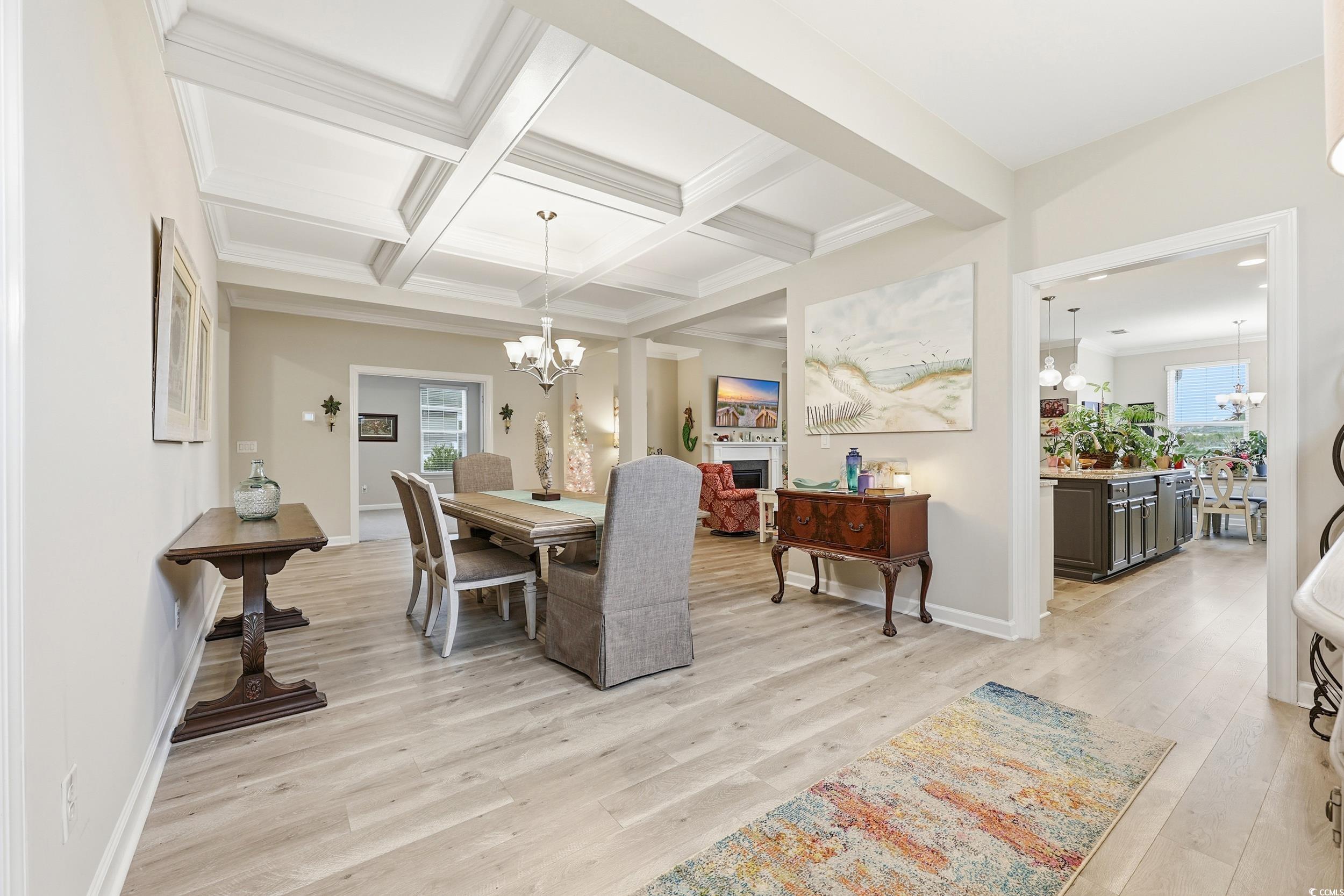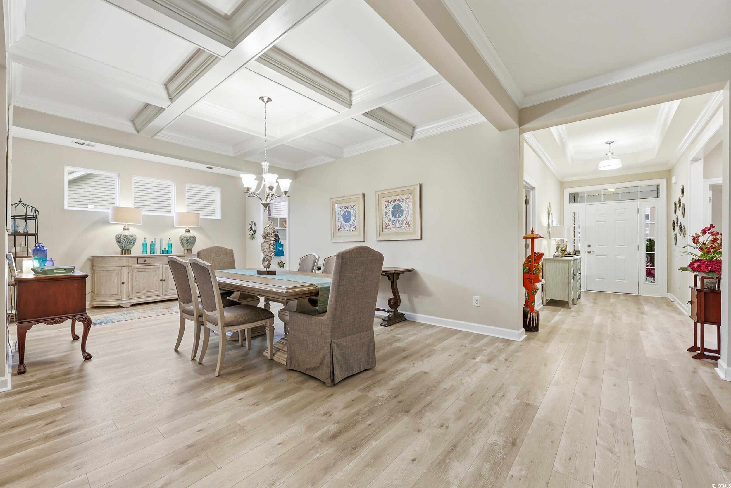 Welcome to this beautifully maintained, model - perfect 3 bedroom, 2 bath home offering exceptional style, comfort and coastal inspired charm. From the inviting front porch to the bright, open interior, every detail has been thoughtfully designed. Step inside to a spacious open floor plan featuring elegant, coffered ceilings, abundant of natural light and designer finishes throughout. The gourmet eat in kitchen boasts granite countertops, tasteful backsplash, stainless steel appliances, large custom island with ample cabinet space with soft close- ideal for entertaining or everyday living. The living and dining areas flow seamlessly together, highlighted by beautiful flooring and custom detailing. The serene primary suite offers a generous walk in closet and spa like bath with double vanities, garden tub and large walk in shower. Two additional bedrooms provide flexibility for guests or an office. Step out into your enclosed sunroom to relax or out to your private backyard oasis with a large patio and saltwater gunite pool. This home sits on almost a half acre lot and features tons of upgrades- finished garage, irrigation system and much more! Bridgewater is an amenity rich community with a large clubhouse with a catering style kitchen perfect for private parties and social gatherings. A state of the art fitness center with virtual fitness classes, a resort style pool with lap lanes and lounging space is surrounded by deck chairs and private cabanas.There’s also pickleball courts and a bocce court, a friendly fire pit, a kayak launch and an enormous outdoor cookout area at the covered pavilion with outdoor grills and televisions. Come live the Good Life at Bridgewater! Amazing location close to hospital, Highway 31, North Myrtle Beach and Calabash. This home won't last long, schedule your showing today!!