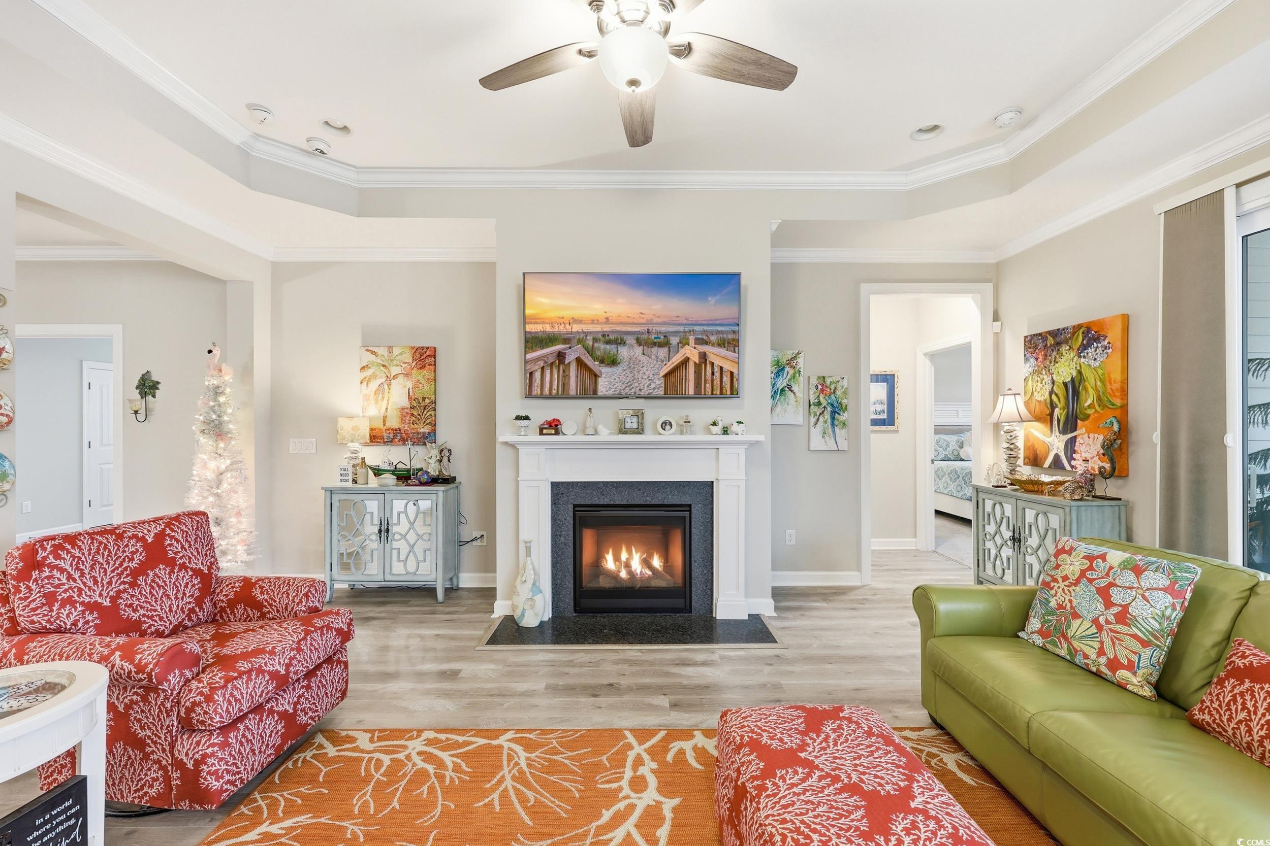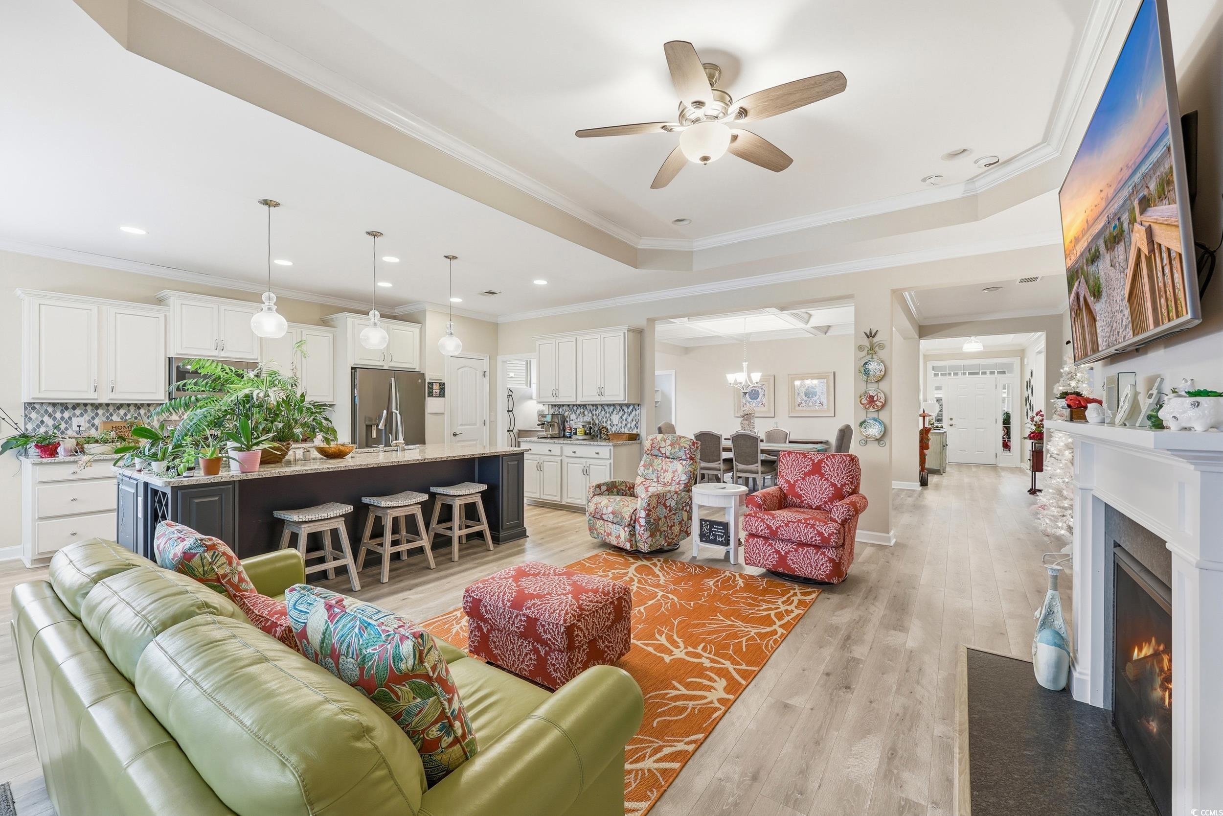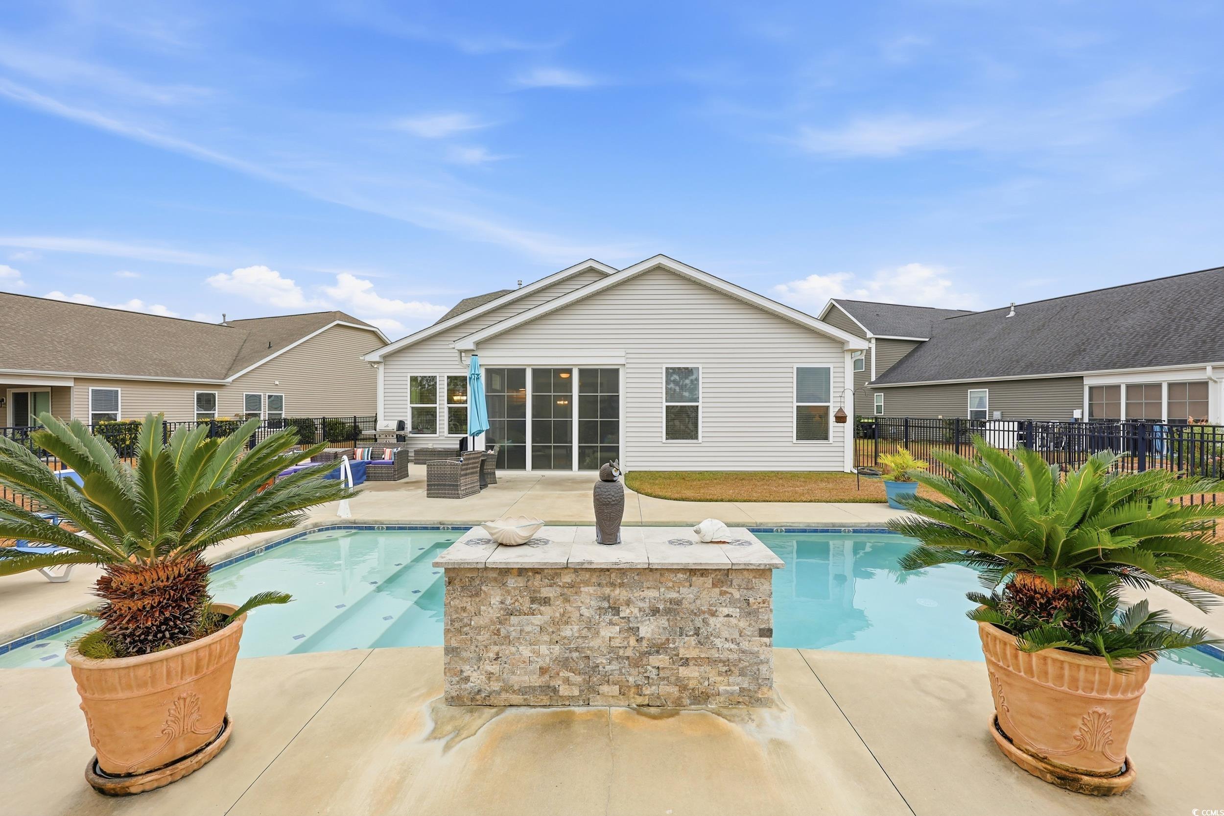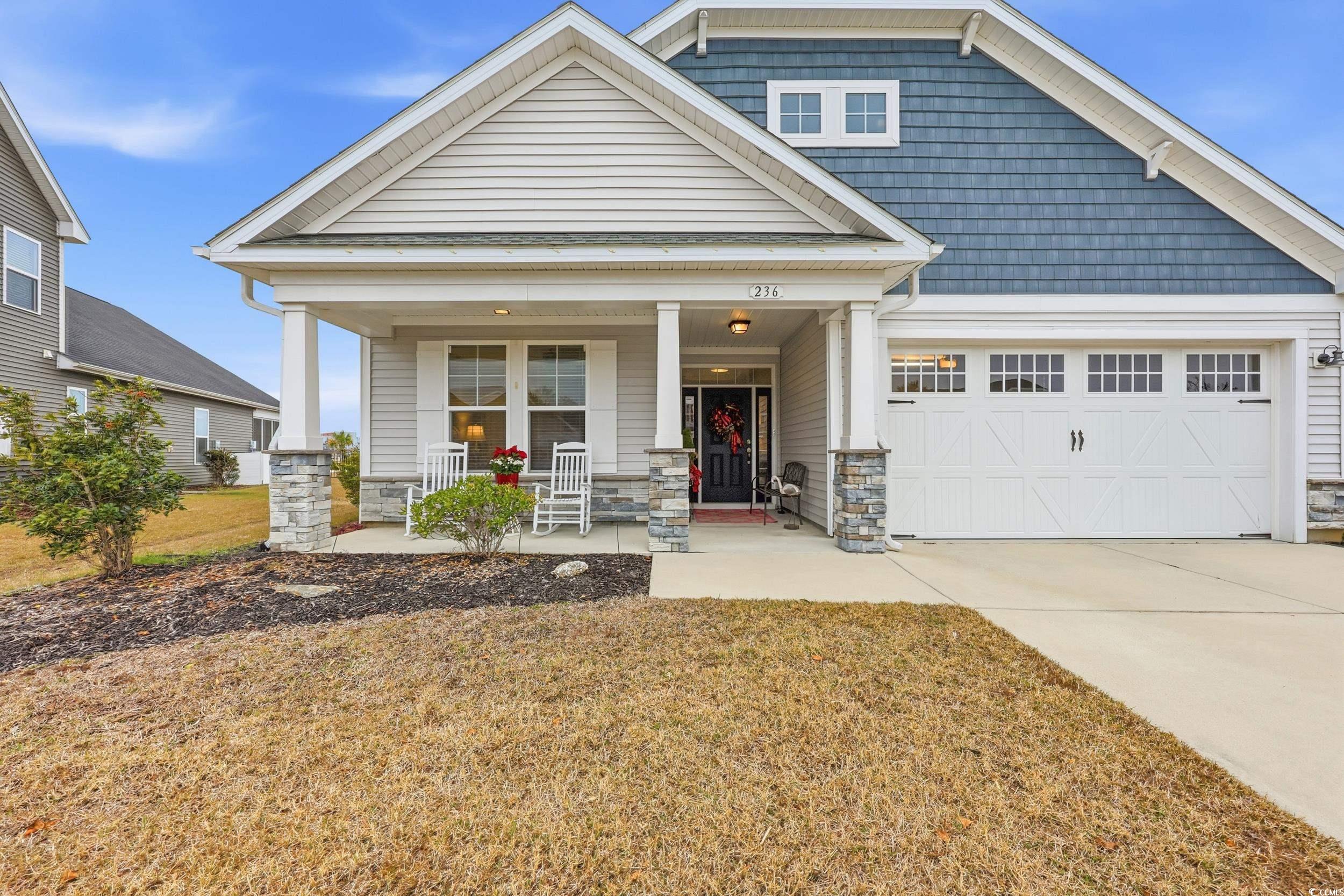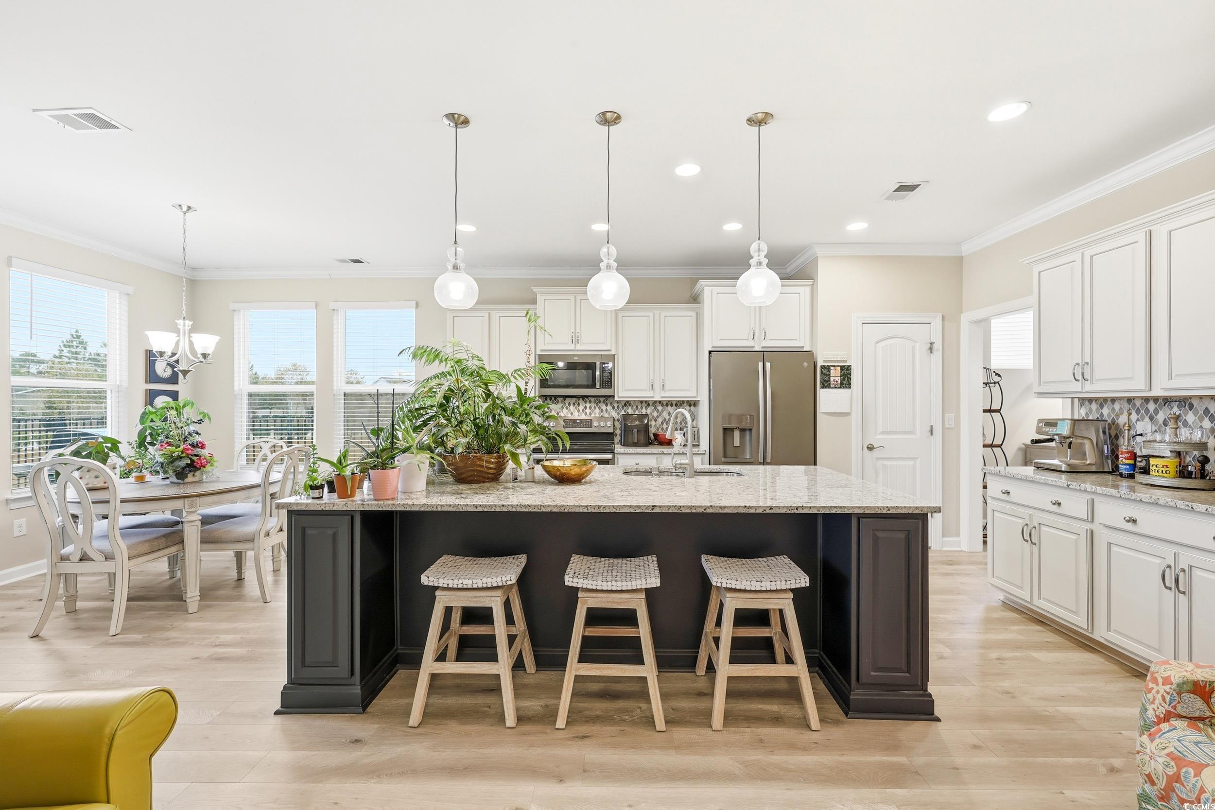 Welcome to this beautifully maintained, model - perfect 3 bedroom, 2 bath home offering exceptional style, comfort and coastal inspired charm. From the inviting front porch to the bright, open interior, every detail has been thoughtfully designed. Step inside to a spacious open floor plan featuring elegant, coffered ceilings, abundant of natural light and designer finishes throughout. The gourmet eat in kitchen boasts granite countertops, tasteful backsplash, stainless steel appliances, large custom island with ample cabinet space- ideal for entertaining or everyday living. The living and dining areas flow seamlessly together, highlighted by beautiful flooring and custom detailing. The serene primary suite offers a generous walk in closet and spa like bath with double vanities, garden tub and large walk in shower. Two additional bedrooms provide flexibility for guests or an office. Step out into your enclosed sunroom to relax or out to your private backyard oasis with a large patio and saltwater gunite pool. This home sits on almost a half acre lot and features tons of upgrades- finished garage, irrigation system and much more! Bridgewater is an amenity rich community with a large clubhouse with a catering style kitchen perfect for private parties and social gatherings. A state of the art fitness center with virtual fitness classes, a resort style pool with lap lanes and lounging space is surrounded by deck chairs and private cabanas.There’s also pickleball courts and a bocce court, a friendly fire pit, a kayak launch and an enormous outdoor cookout area at the covered pavilion with outdoor grills and televisions. Come live the Good Life at Bridgewater! This home won't last long, schedule your showing today!!