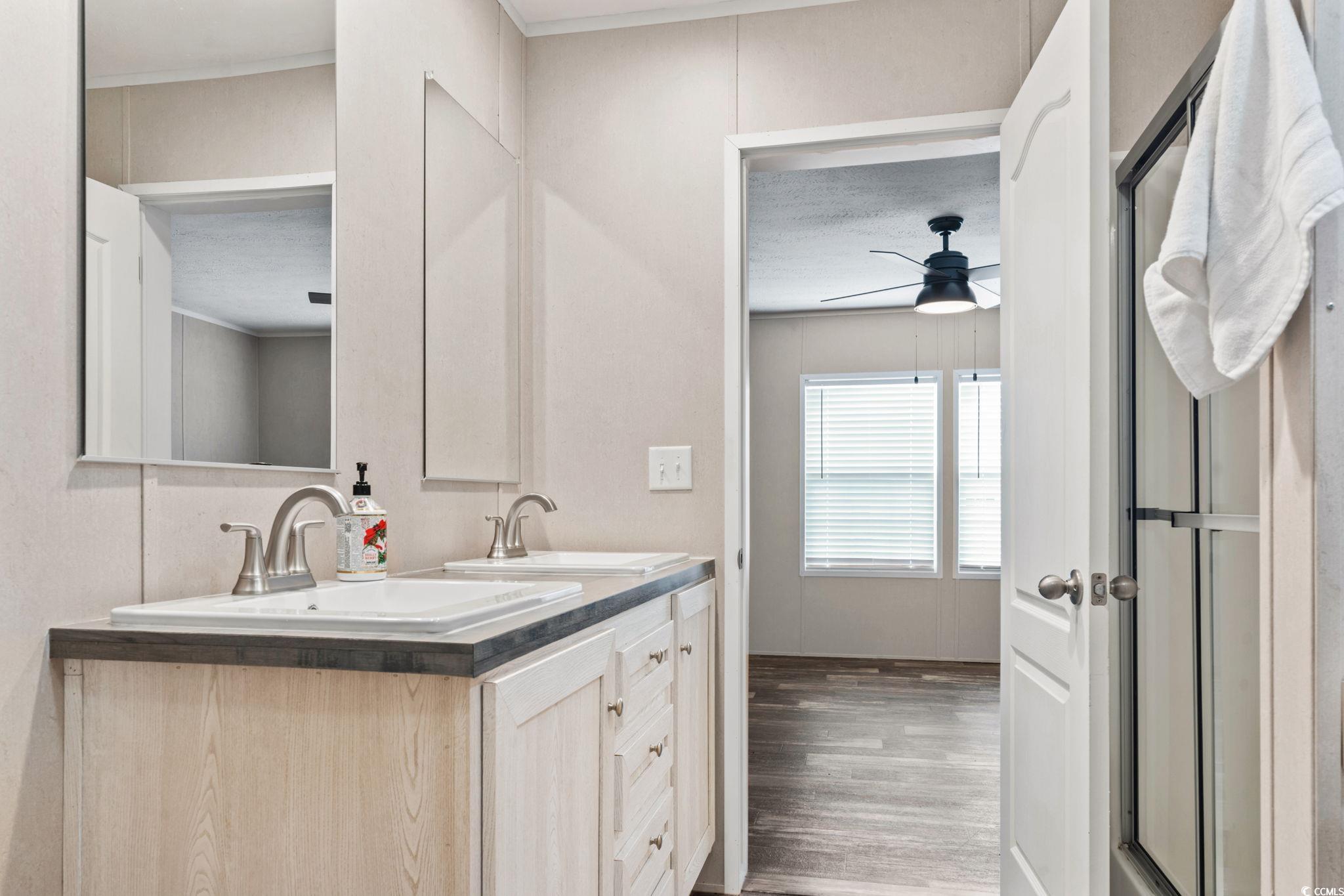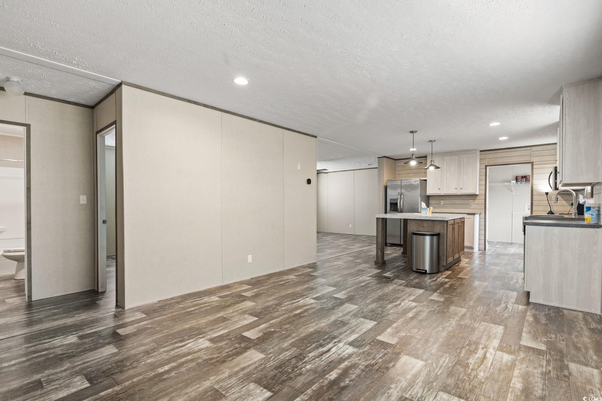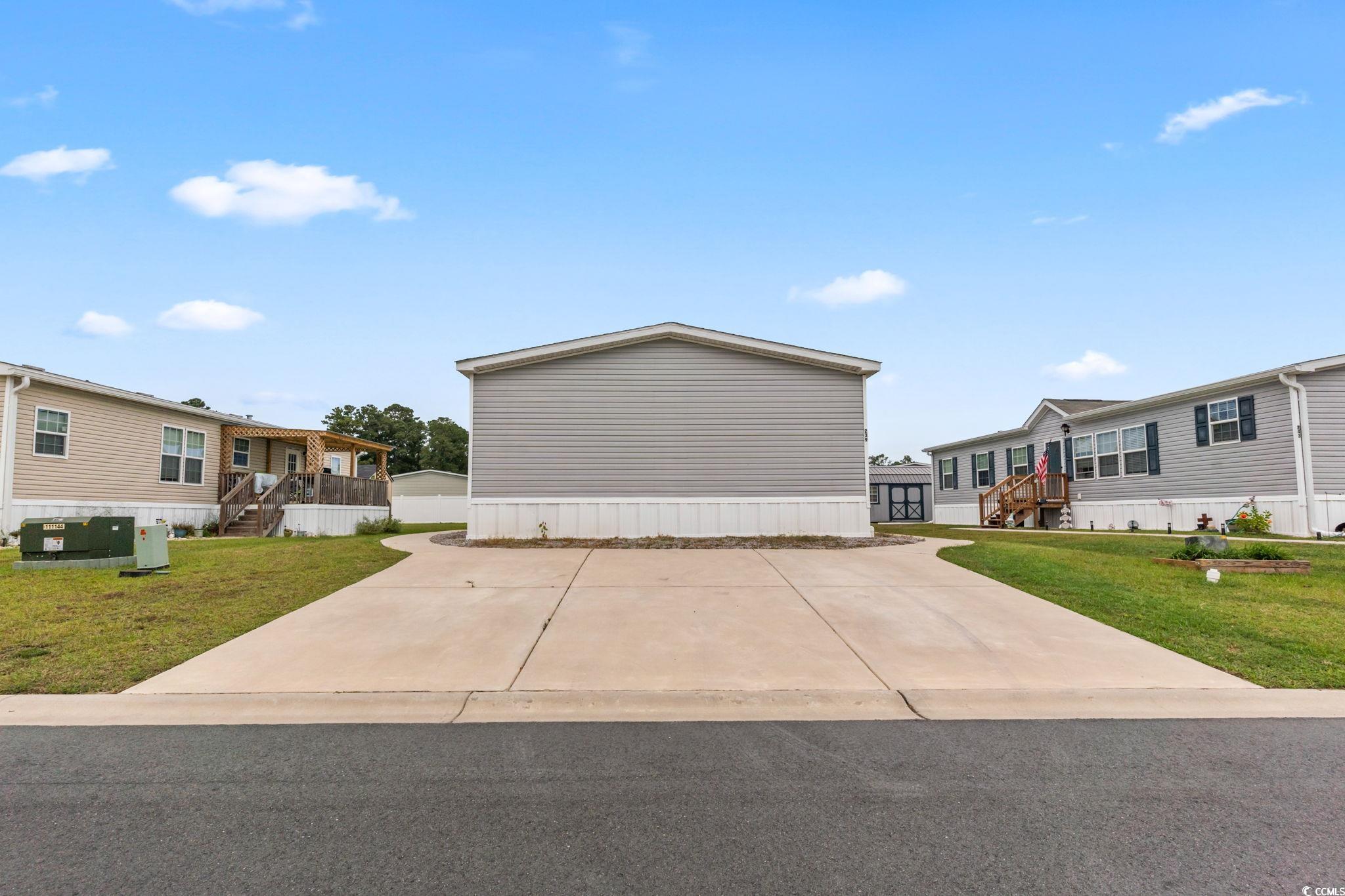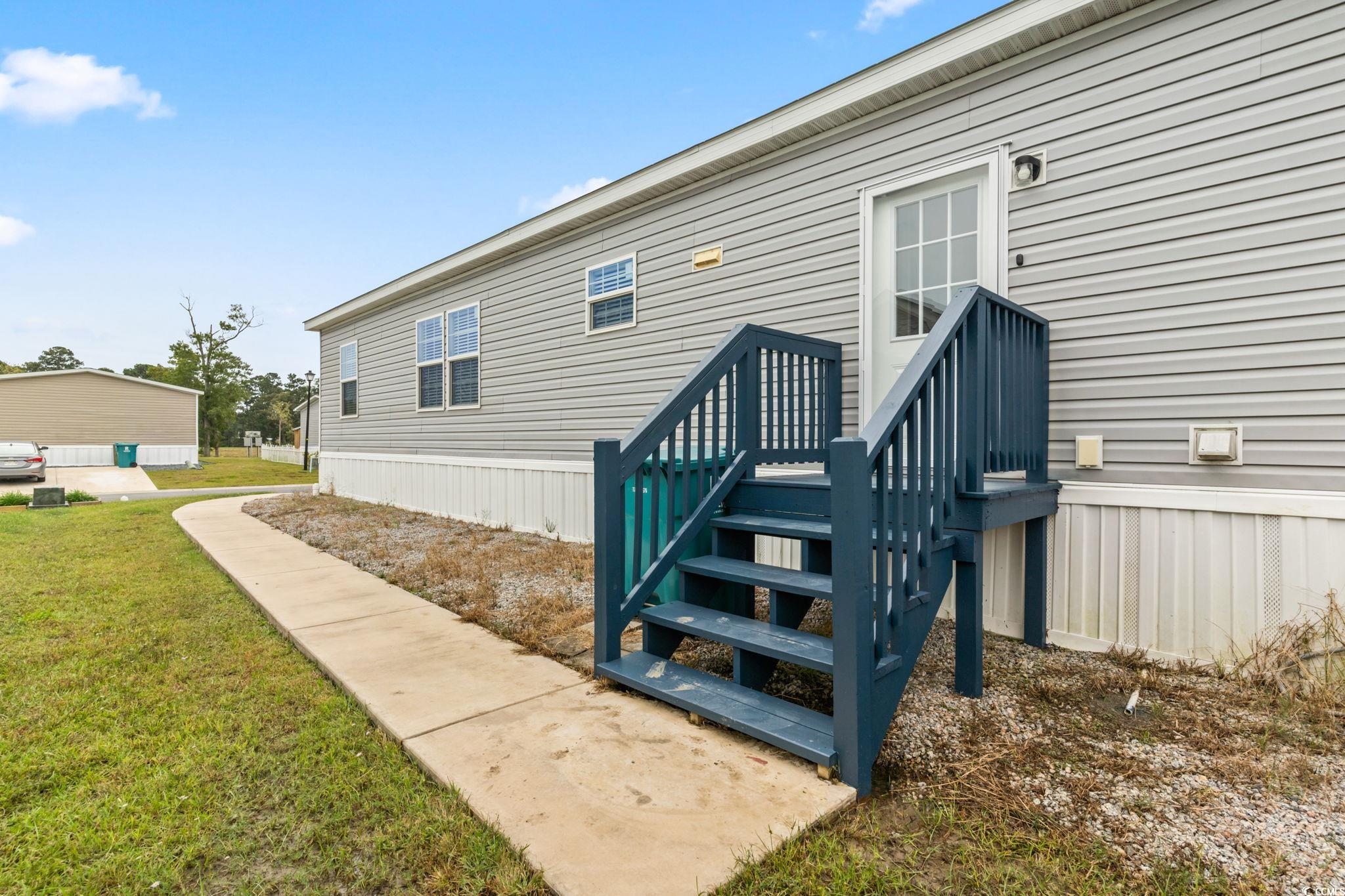 Step inside this beautifully designed 4-bedroom, 2-bath manufactured home located in the desirable Market Village community of Myrtle Beach! Offering a thoughtful layout and move-in ready appeal, this residence blends modern comfort with coastal convenience. As you enter through the front door, you're welcomed into a spacious living room that flows seamlessly into the open-concept kitchen and dining area - perfect for entertaining or everyday living. The kitchen is a true showstopper, featuring a large work island that doubles as a breakfast bar, stainless steel appliances, and elegant white shaker-style cabinetry that extends to the ceiling for maximum storage. Durable, low-maintenance LVP flooring runs throughout the home, creating a cohesive and easy-care living space. The primary suite offers a private retreat with a walk-in closet and a luxurious en suite bath complete with a double-sink vanity, deep soaking tub, and a separate step-in shower. Three additional bedrooms share a well-appointed hall bath, providing comfort and flexibility for guests, or a home office. The laundry room offers added convenience, while a detached 16x10' storage shed provides extra space for tools, beach gear, or golf clubs. Enjoy outdoor living on the front or rear porches and the ease of a three-car driveway. As part of a land lease community, your lawn care and trash pickup are included - allowing you to spend more time enjoying the relaxed coastal lifestyle. Conveniently located near Market Common, Broadway at the Beach, golf courses, shopping, dining, and the Myrtle Beach Airport, this home offers the best of coastal living just minutes from the beach. Don't miss your chance to own this stunning home in a prime location - schedule your showing today! Square footage is approximate and not guaranteed. Buyer is responsible for verifying.