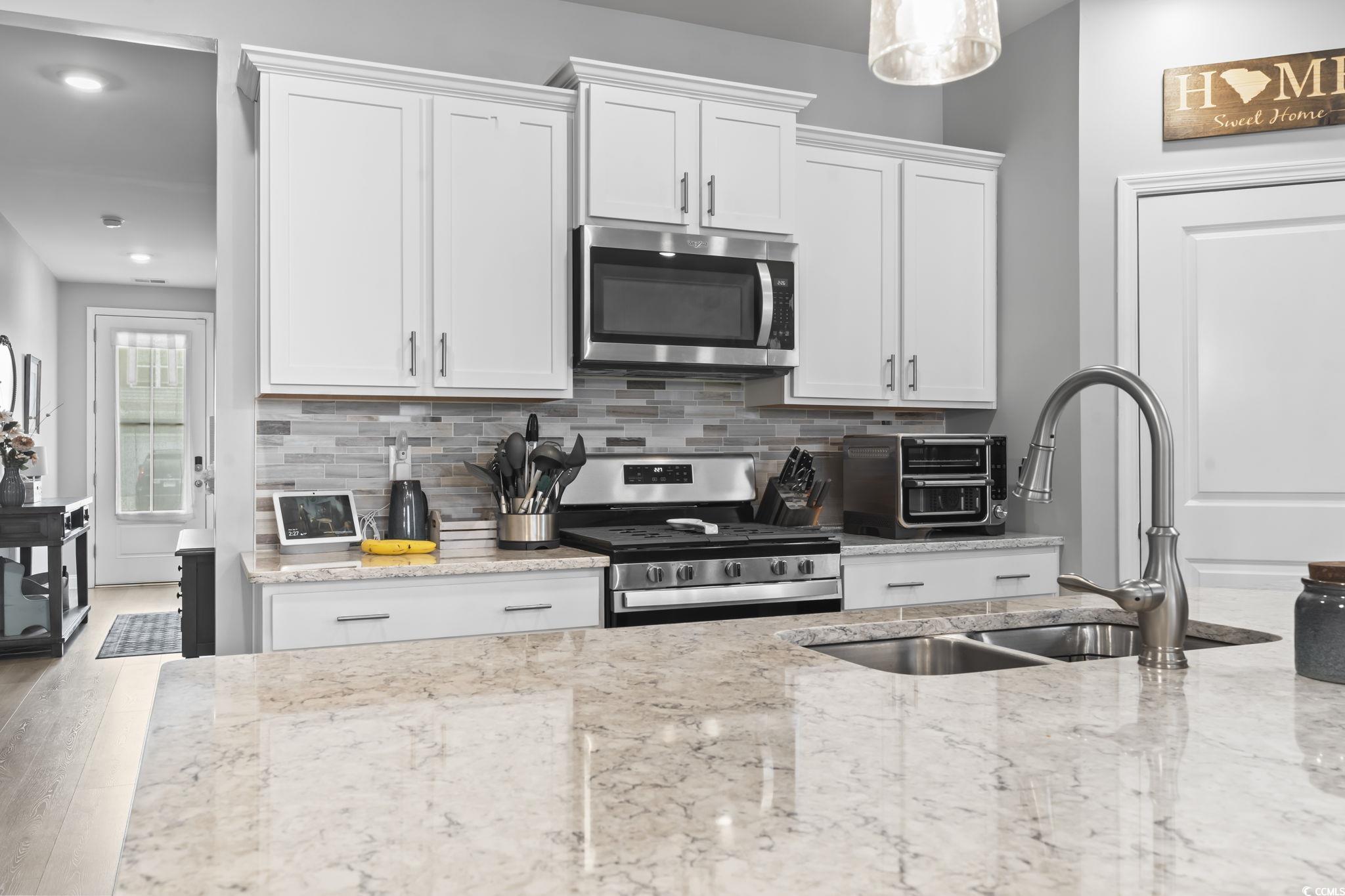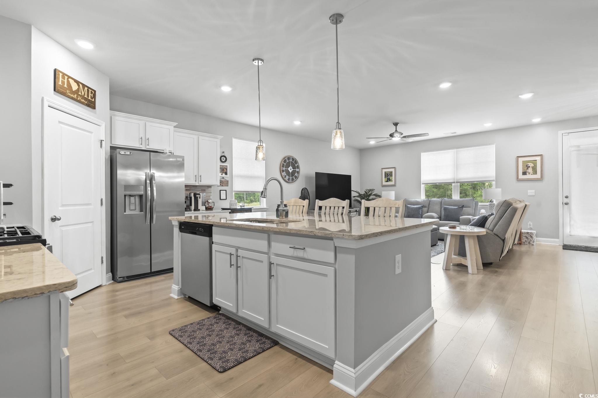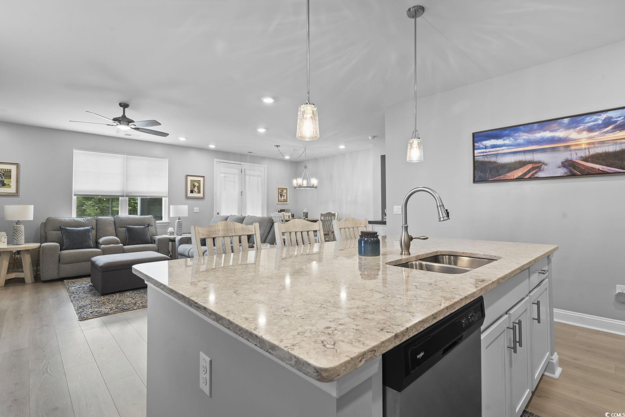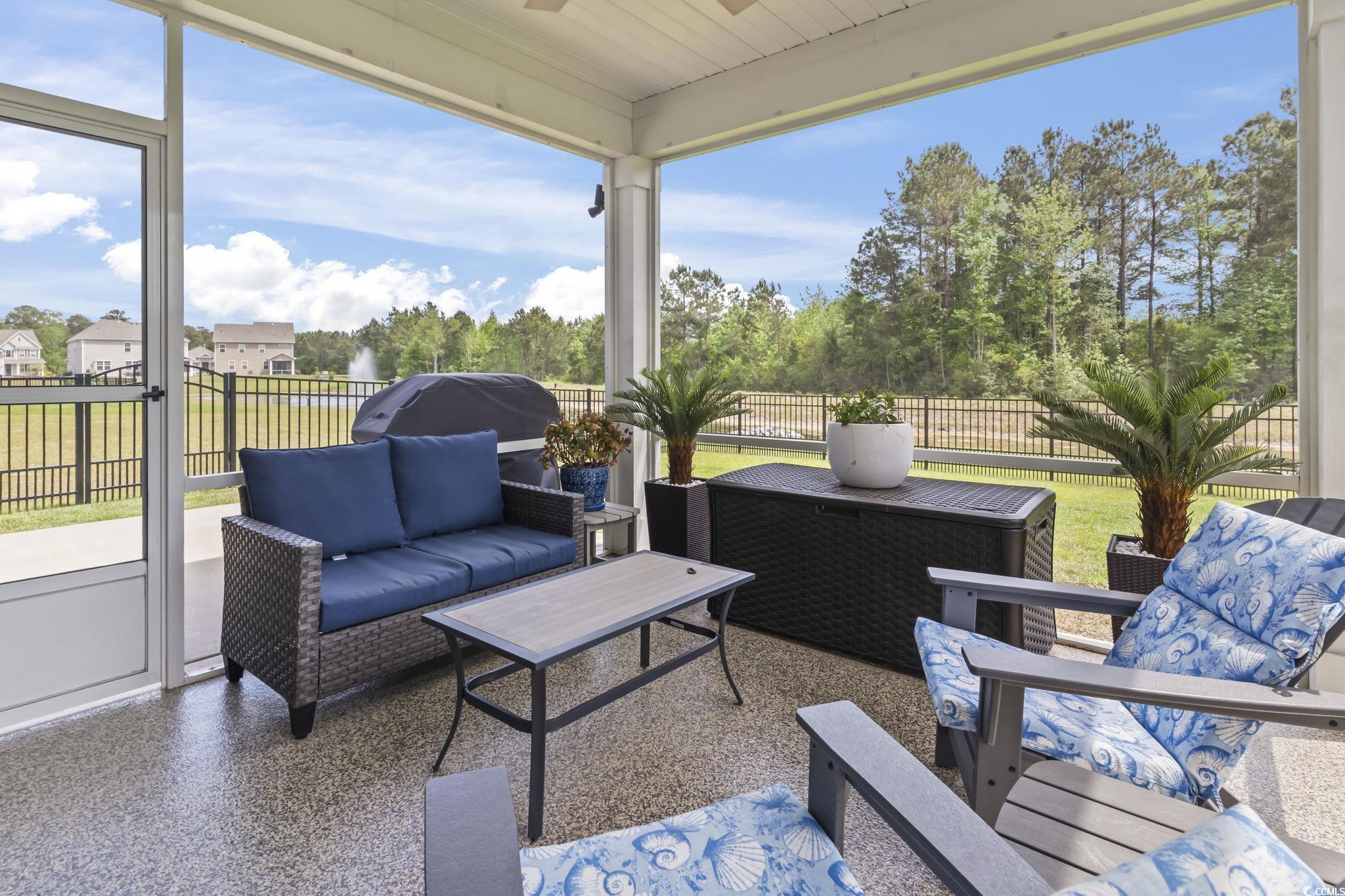 Back on the Market, NO Fault of Seller nor Home. Immaculate 3 year young 4 Bed 2 Bath Single Story Home on the Pond. Open Floor Plan, perfect for entertaining! Beautiful 36" white staggered cabinets, walk in pantry, stainless steel appliances, Quartz countertops and a huge island for meal prepping! The owner's suite is large with a walk in closet. The 3 other bedrooms are spacious and on the opposite side of the home for a split floor plan feel! Step into your Screened porch to enjoy the pond view and beautiful weather. Fenced back yard for your furry babies to run and play! This home is move-in-ready with ALL appliances conveying including refrigerator, washer and dryer! This community has a beautiful Pool, fitness room and community events! Just a few minutes to great restaurants, Tanger outlets, Hospitals and only 20 minutes to the BEACH!