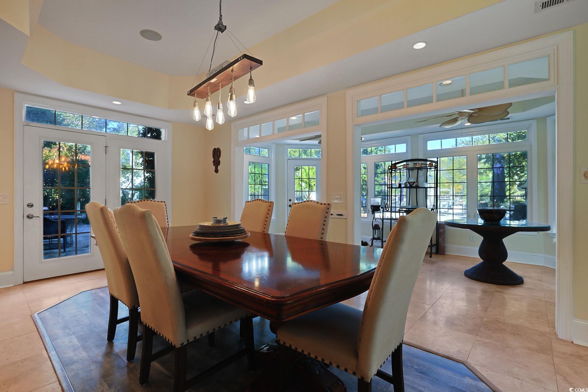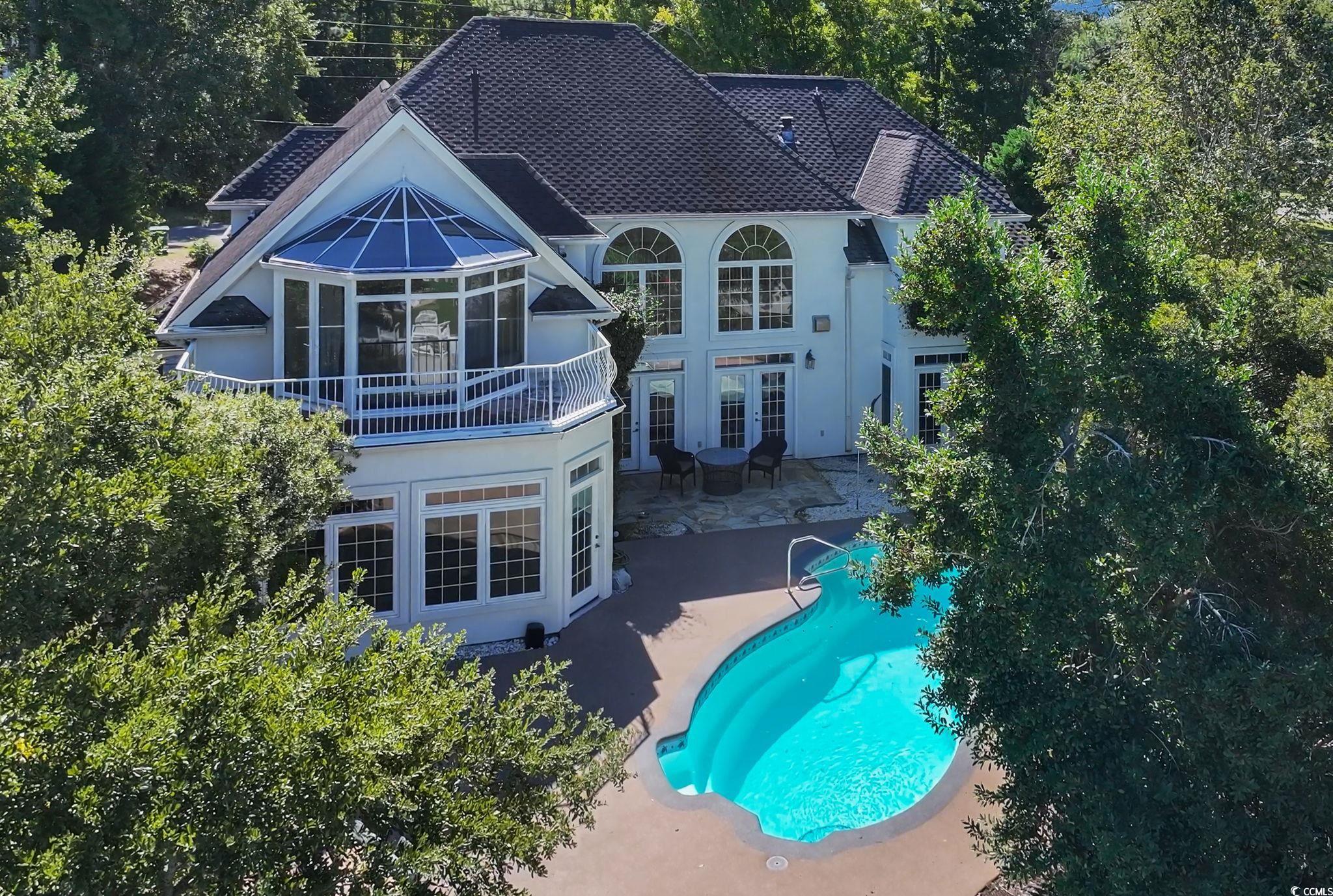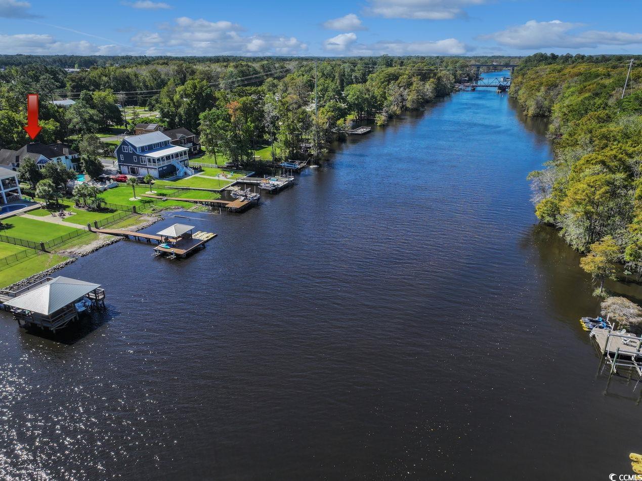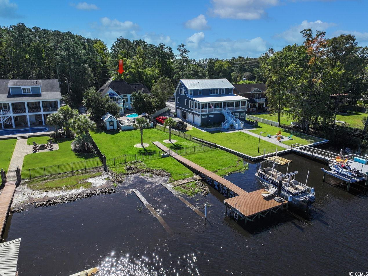 Enjoy the casual elegance of this spectacular 4 bedroom 2.5 bathroom home located on the Intracoastal Waterway with a day dock, boat lift and a boat launch next to the dock. This home showcases a sparkling in-ground pool surrounded by an alluring rubber pool deck. As you enter this magnificent home, you are greeted with a grand two story foyer with a switchback staircase. You then you notice the fine features this home has to offer including hardwood, tile, & carpet flooring, smooth flat ceilings, recessed lighting, arched entryways, a gaming area, and a lovely sunlit 2 story living room with a cozy fireplace along with dual French door access to the relaxing pool deck. Prepare a fresh meal in the gourmet kitchen that is equipped with a stainless steel appliance package with a 48" gas cook top & a chimney style hood, granite counter tops, a kitchen island, tile back splash, cabinets topped with crown moulding, a large pantry/laundry room, and a formal dining area. The main level primary bedroom offers a single step tray ceiling with a fan, French door access to the pool deck, private access to the primary bath hosting a dual sink vanity with make-up desk, a comfort station, freestanding tub, a deluxe step-in jetted shower, and a large walk-in closet. The adventure continues upstairs as you find another primary bedroom with an en-suite full bath with a jetted shower, two additional bedrooms, a full guest bath, and a sizeable bonus room. The main level of this stylish home is completed with a attractive Carolina room with breathtaking views of the waterway, a guest powder room, extra closet spaces, invisible fencing, and a 2 car side load attached garage. This home affords you easy access to the beach and golfing along with all of the other activities and happenings in Myrtle Beach including fun eateries, award winning off-Broadway shows, public fishing piers, and intriguing shopping adventures along the Grand Strand. Conveniently located to your everyday needs, including grocery stores, banks, post offices, medical centers, doctors’ offices, and pharmacies. Check out our state of the art 3-D Virtual Tour.