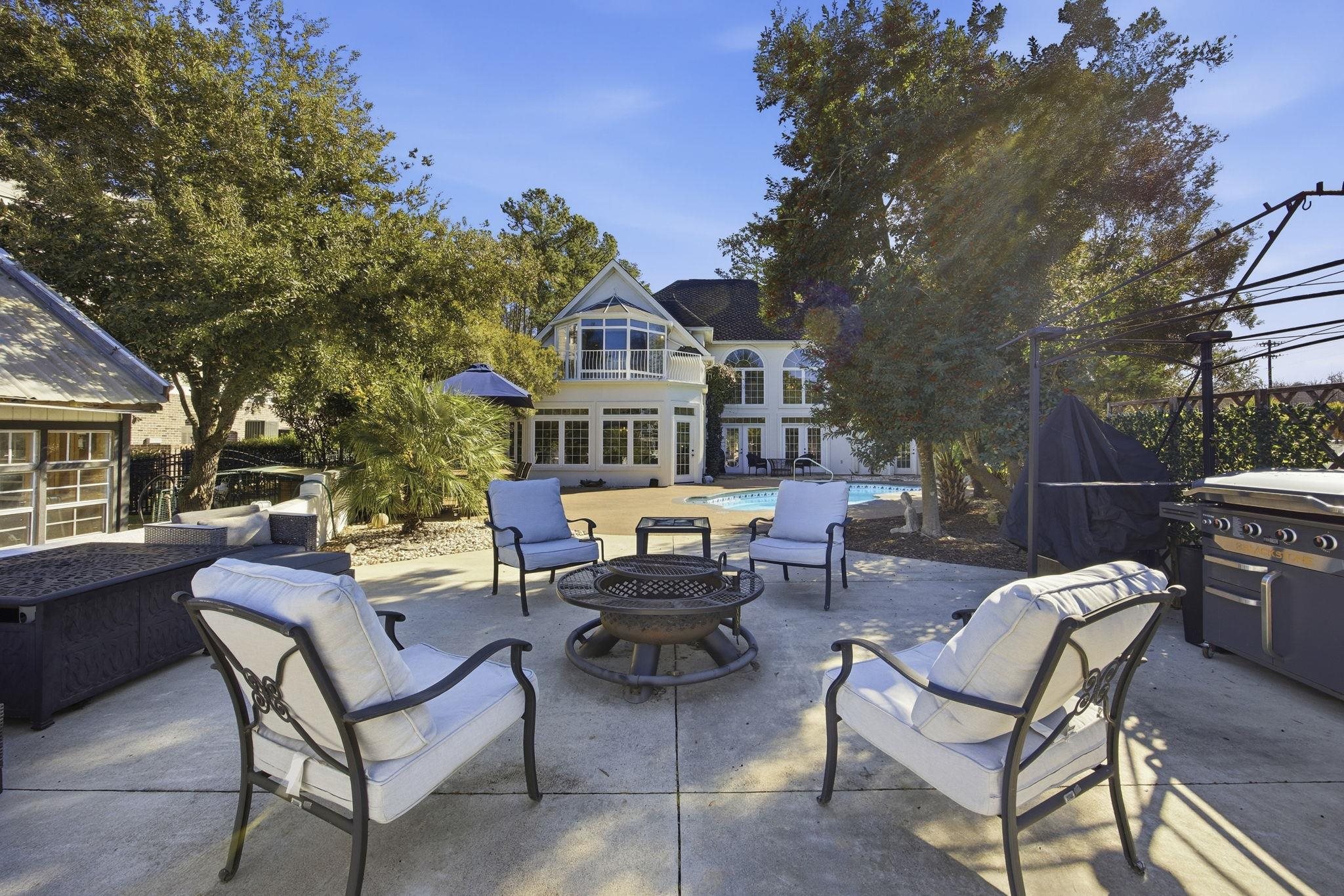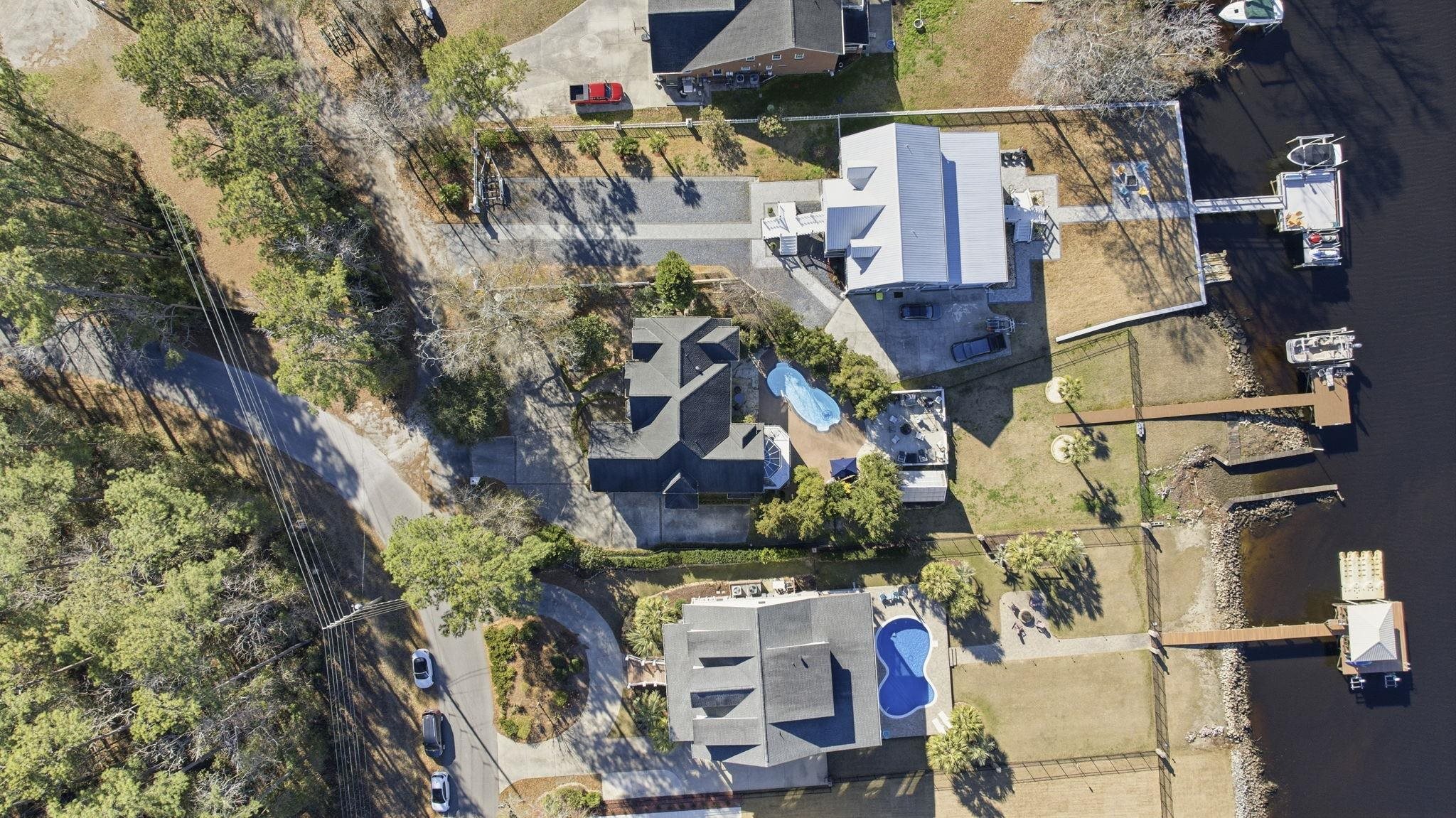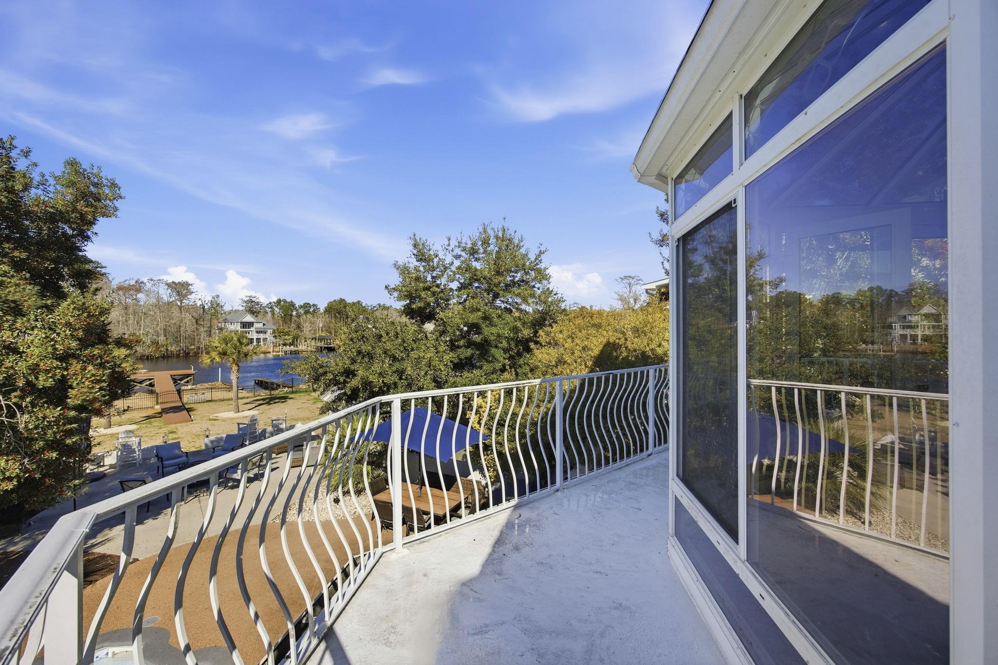 Tucked away on a private street along the Intracoastal Waterway, this 4-bedroom, 2.5 bath home immediately draws your eye to sweeping water views from multiple angles. The grand two-story foyer with a dramatic switchback staircase sets the tone for a home that truly celebrates the outdoors. The main-level primary suite opens to the pool deck and features a tray ceiling, dual sinks, freestanding tub, step-in jetted shower, and a large walk-in closet. Upstairs, a bedroom with a private balcony can serve as a mini-suite, while a flex space provides room for an additional bedroom or suite. The gourmet kitchen includes stainless steel appliances, a 48-inch gas cooktop with chimney-style hood, granite countertops, a prep island with sink, a large pantry, and a convenient laundry room with side access through a covered entrance. Unique features include arched entryways, a two-sided fireplace, French doors to the backyard, central vacuum, whole-house dual-zoned surround sound and an invisible fence. Outdoors, the property truly shines with an in-ground saltwater pool surrounded by rubber decking, an outdoor fireplace, additional patio space, a greenhouse that conveys and expansive green space ideal for children and pets. A second patio with cement space is perfect for grilling. The day dock includes a boat lift and boat launch, perfect for kayaks, canoes, jet skis, or other water toys. This home is all about waterfront living and entertaining. The interior is ready for a buyer’s vision to come to life - a chance to personalize the space while enjoying a backyard that already delivers the lifestyle everyone dreams of. Ideally located near the beach, Market Common, Broadway at the Beach, Tanger Outlets, the airport, and all that the Grand Strand has to offer.