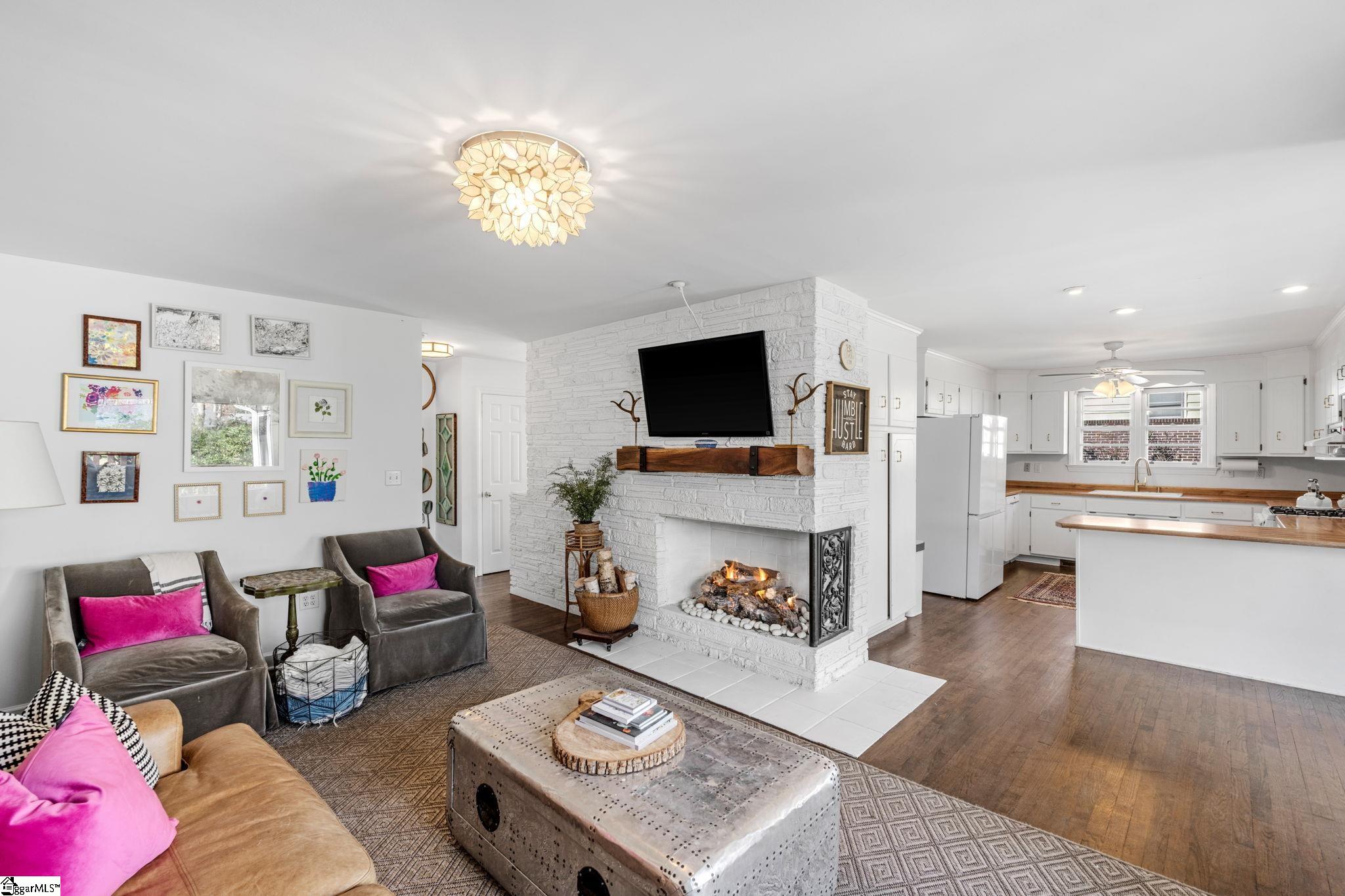 LOCATION and style! This charming all-brick home sits on a large, private lot and offers 4 bedrooms with an open floor plan. The kitchen flows into the dining area and sun room, creating great everyday living and entertaining space. The spacious living room features abundant natural light and a fireplace. Hardwood floors run throughout much of the main level. The main level includes 3 bedrooms and 2 baths, with an additional bedroom and bath in the partially finished basement, along with excellent storage and workshop space. Enjoy the sun room, large deck, and a beautifully private, backyard with irrigation and greenhouse. A long driveway with extra parking completes this move-in-ready home. Just 15 minutes from downtown Greenville. Schedule your private showing today!