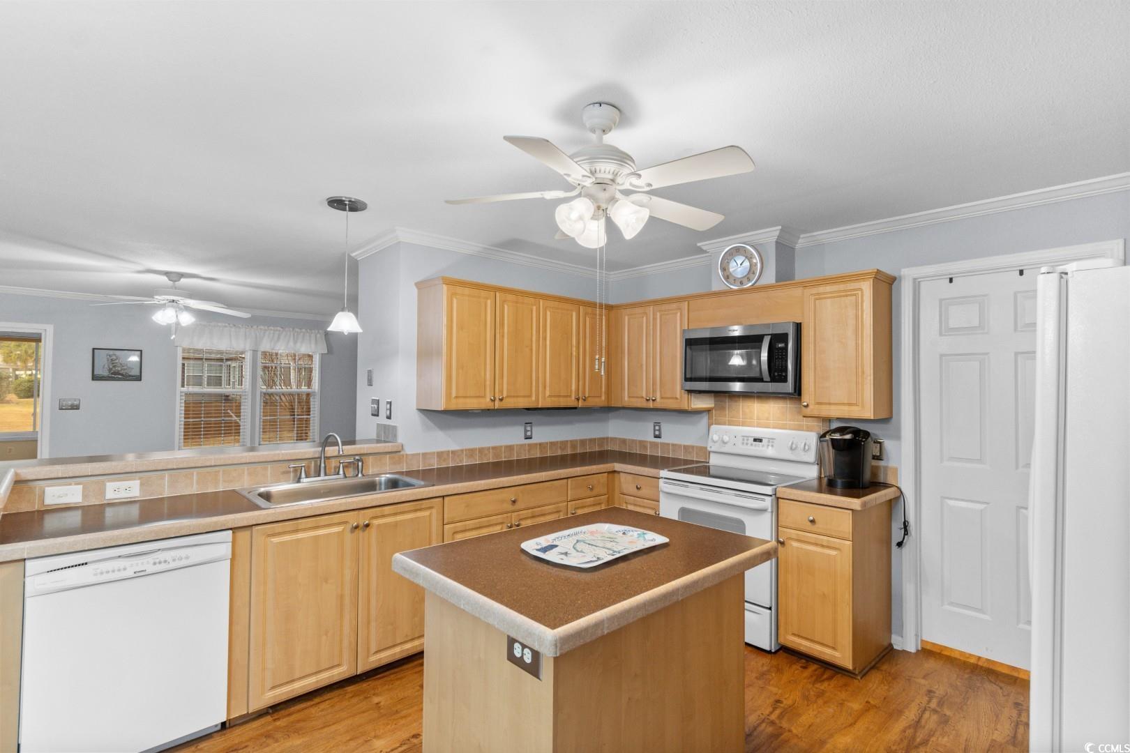 Welcome to easy, laid-back living in Lakeside Crossing, one of the area's most loved active adult communities. This 3-bedroom, 2-bath home is thoughtfully laid out with a split floor plan, giving the primary suite its own private retreat away from the guest bedrooms--perfect for quiet mornings and relaxed evenings. The heart of the home is the spacious kitchen, designed for both everyday living and entertaining. A large center island and breakfast bar make it easy to gather with friends, while the nearby laundry room adds a layer of everyday convenience you'll appreciate. The primary bedroom is generously sized with a walk-in closet, and the ensuite bath features a double vanity and shower that makes getting ready a breeze. One of the favorite spots in the home is the Carolina Room, where you can unwind with a cup of coffee or enjoy cool evening breezes as it opens to the backyard---ideal for peaceful outdoor moments. Living in Lakeside Crossing means enjoying resort-style amenities right outside your door, including indoor and outdoor pools, paddle boats, pickleball courts, and a stunning clubhouse with a full-time activities director who keeps the calendar full of ways to stay social and active. Plus, you're just minutes from shopping, dining, entertainment, and medical facilities. This isn't just a home--it's a lifestyle, and it's ready to welcome you!