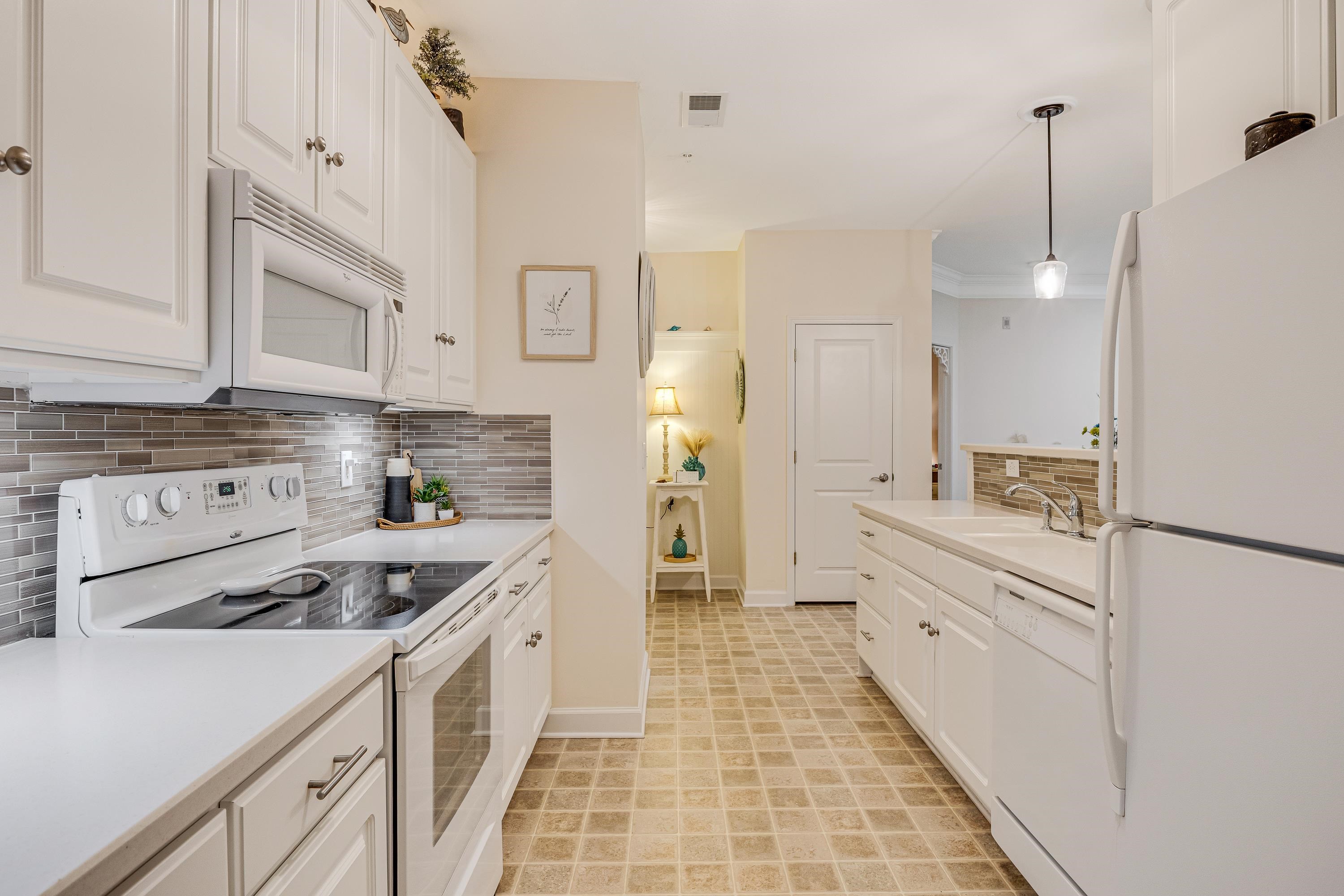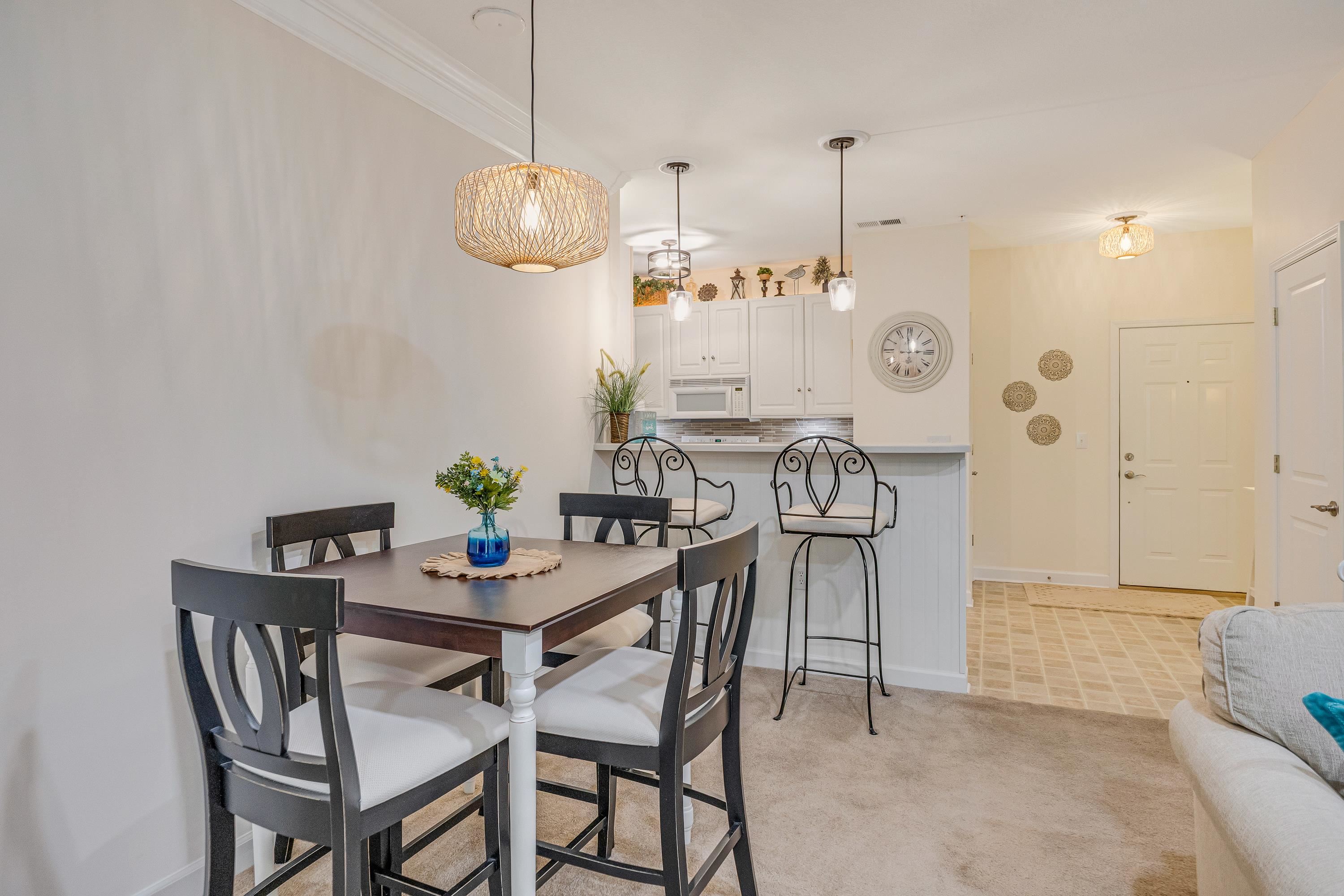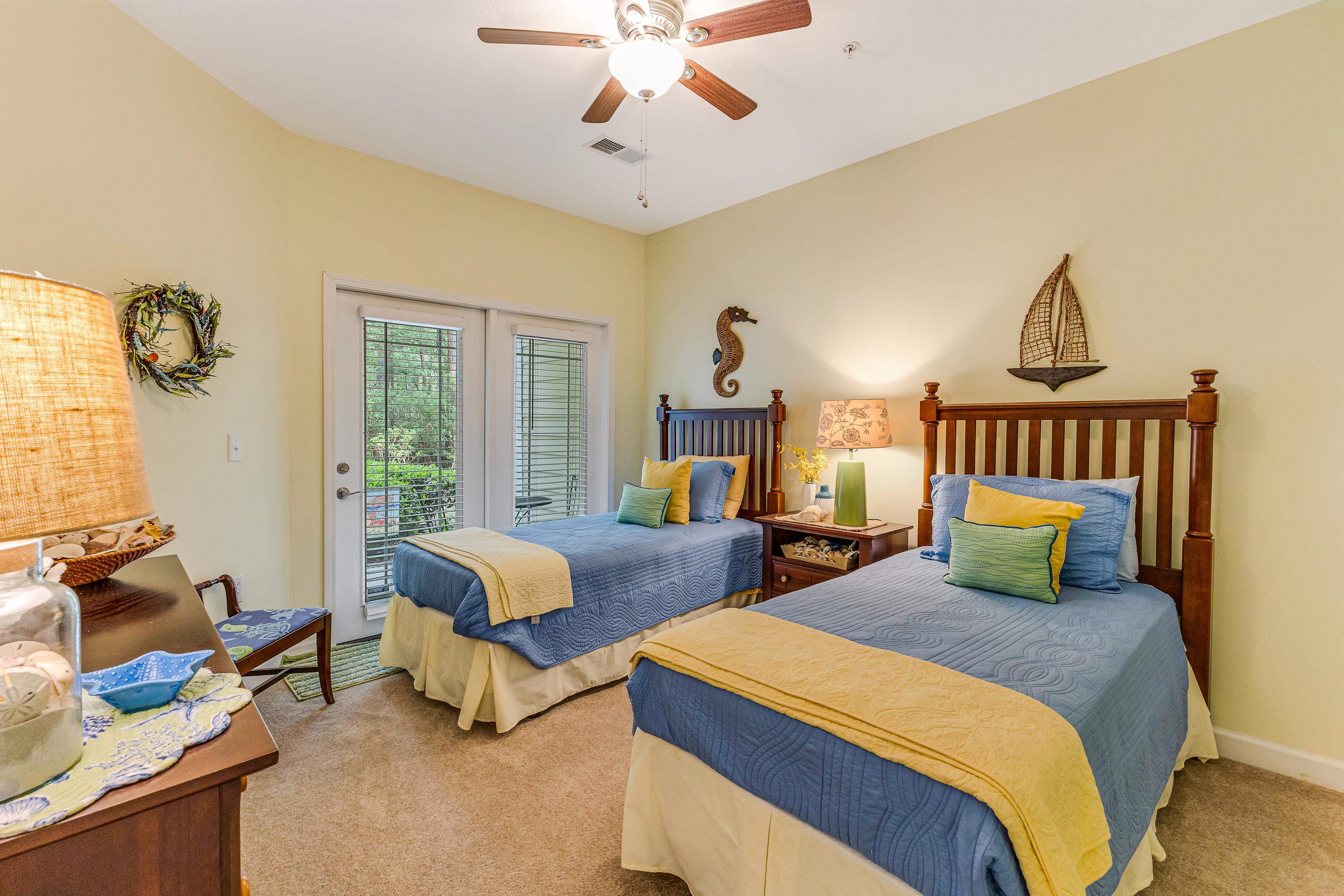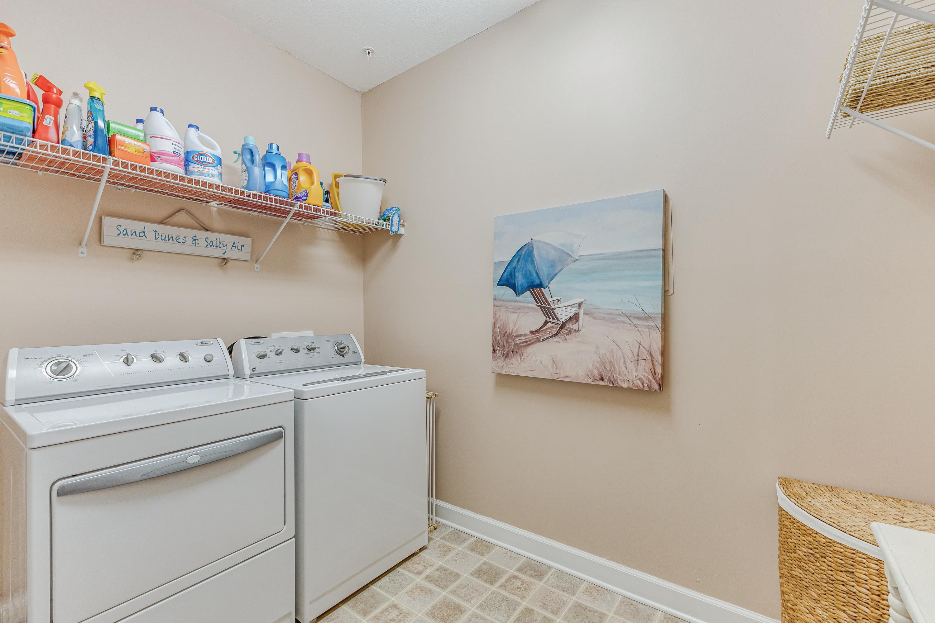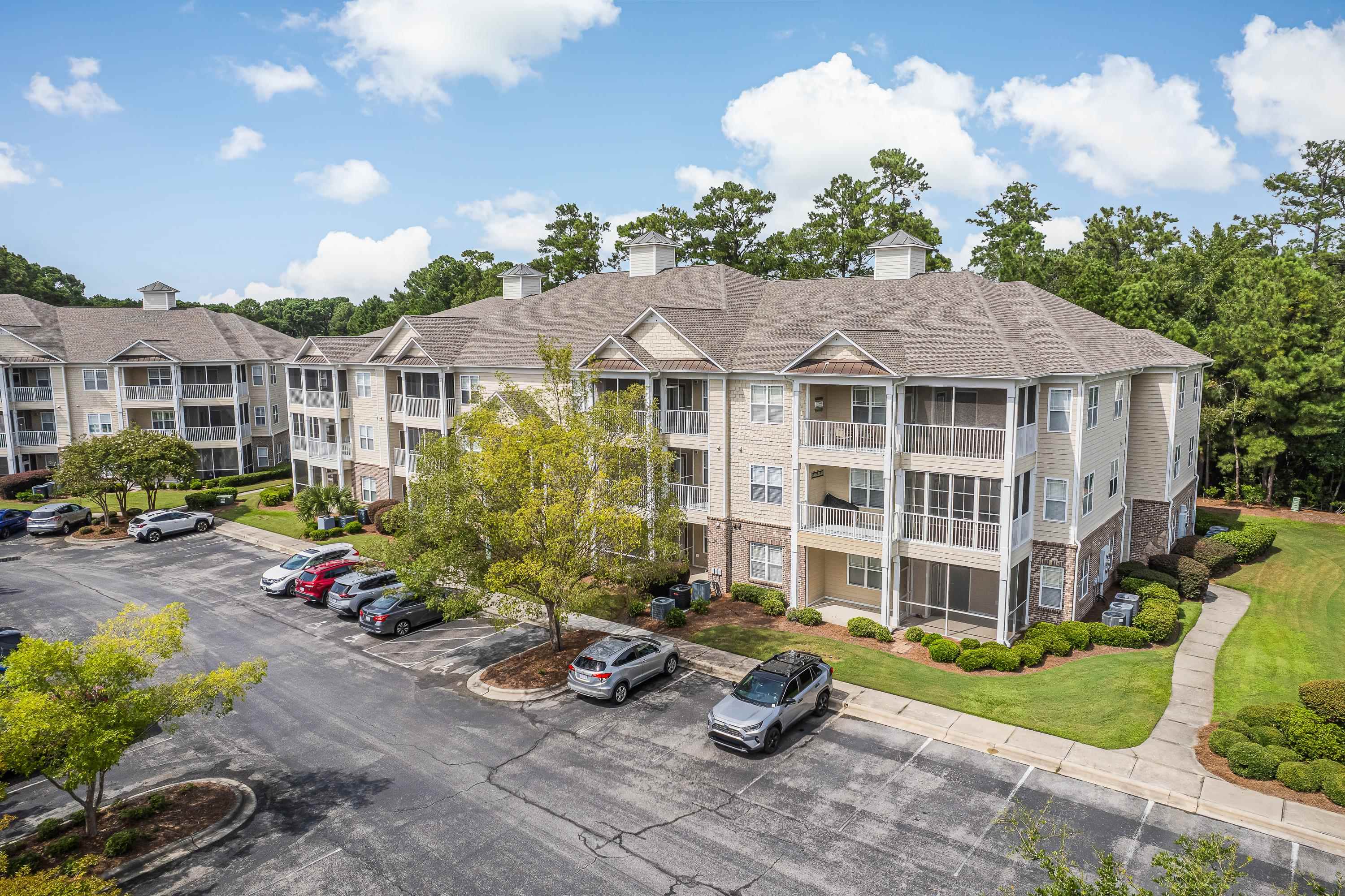 Located in the always popular Woodlands Way Condo Complex at Crow Creek is this Magnolia floor plan! Rarely used as a second home, unit is fully furnished and has been beautifully maintained. Whether you're looking for a primary residence, vacation getaway, or excellent short- or long-term rental opportunity, this move-in ready unit allows you to simply bring your clothes and toothbrush and start enjoying coastal living. Unit accomodates 8 with sleeper sofa. The kitchen features solid surface countertops, a tiled backsplash, and ample workspace. The spacious primary suite offers a large walk-in closet, an oversized bathroom, and direct access to the screened porch. Comfortable guest bedrooms provide plenty of space, with one featuring an oversized walk-in closet, and both sharing access to a private outdoor patio. Workable laundry room with full size washer and dryer and storage space. Enjoy peaceful wooded backyard views from the screened porch and two covered patios -perfect for relaxing or entertaining. Unit is within walking distance to the outstanding community amenities including indoor and outdoor pools, a well-equipped fitness center, tennis and pickleball courts and nice clubhouse for events or gatherings (kitchen, pool tables, card tables, TV and fireplace). All this from the prime location just minutes from the beautiful beaches and attractions of the Grand Strand.