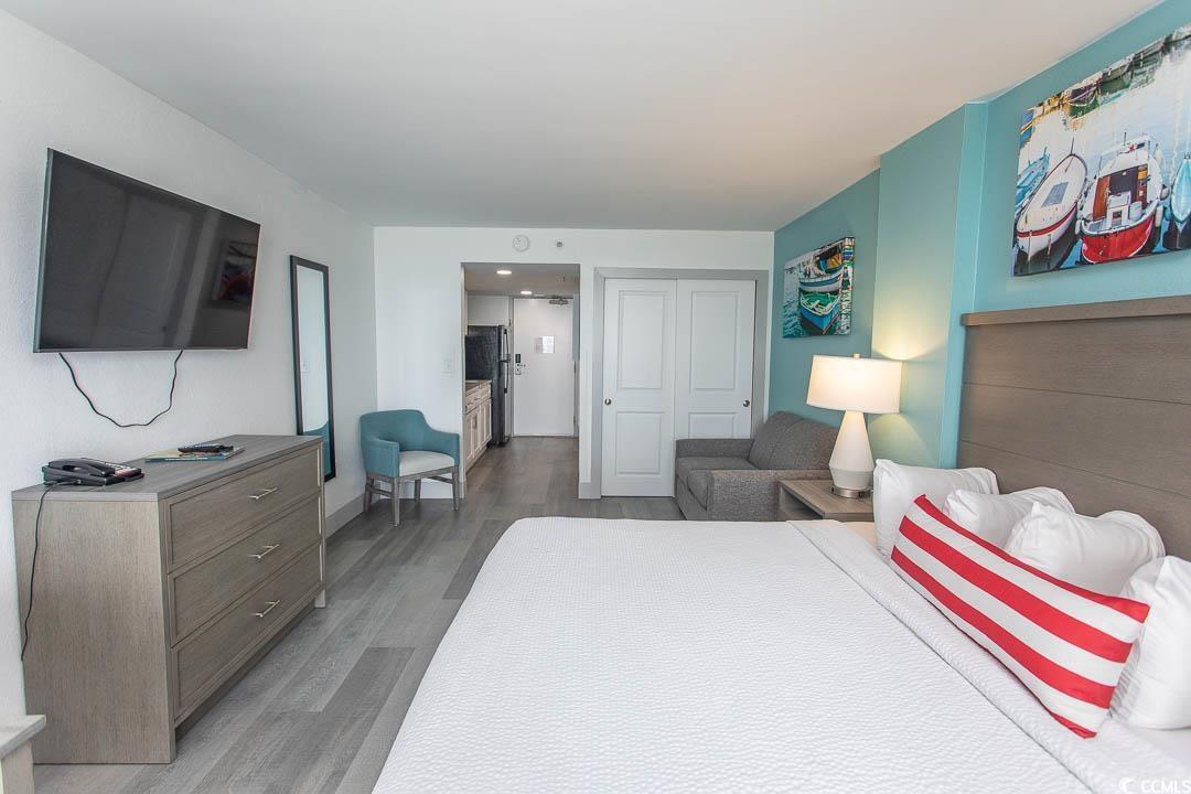 RARE -- KING BED SUITE with FULL KITCHEN and sitting area. Amazing (top) 10th floor, direct oceanfront views. Located in Pinnacle Tower of the extremely popular Compass Cove Resort - restaurant, sports bar, kiddie pool area, hot tubs, indoor and outdoor lazy rivers and pools, shuffleboard, grilling area, poolside tiki bar, coffee shop, convenient store and private waterpark all on site ! Wonderful opportunity to own a premier property that has just been completely remodeled !