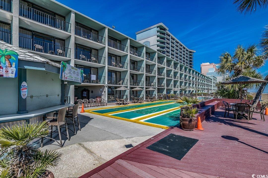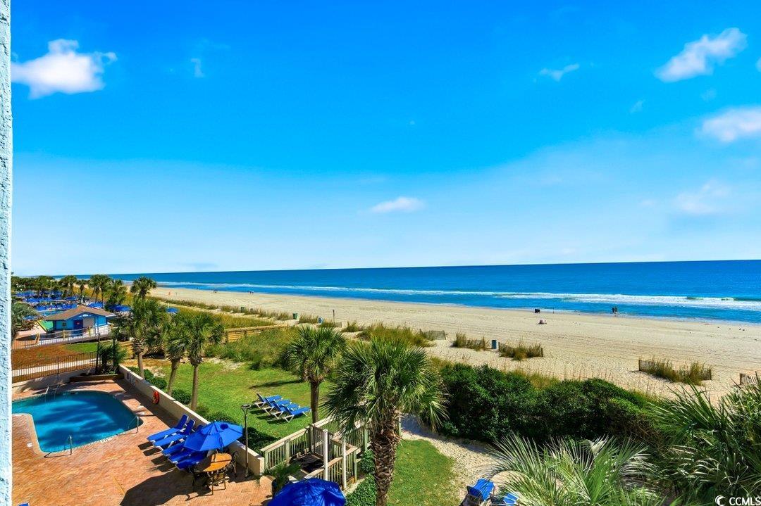 Beautifully updated direct oceanfront condo in the Pinnacle Tower at Compass Cove. This one-bedroom direct oceanfront condo in the Pinnacle Tower at Compass Cove Resort is tastefully furnished and move-in ready for you or your guests. Step onto your private balcony and enjoy unobstructed ocean views. Recent updates include LVP flooring, new living room furniture, quartz countertops in both the kitchen and bath, white shaker cabinets with a tile backsplash, a new bathroom sink and vanity, custom drapery, and a recently replaced HVAC system. New sliding glass doors were also installed this year. The condo features a full galley kitchen and a convenient Murphy bed for extra sleeping capacity. The third-floor location is a huge plus — you can park on this level and walk directly into your condo without waiting for an elevator. The unit also has an excellent rental history. Compass Cove Resort offers 720 feet of beautiful beachfront and an incredible array of amenities, including 22 water features: six indoor/outdoor pools, three lazy rivers, hot tubs, and kiddie pools. Owners and guests in the onsite rental program also enjoy access to front desk services, water slides, the Tiki Bar, Joe’s Coffee Bar, Compass Rose Restaurant, Crow’s Nest, laundry facilities, arcade, gift shop, business center, and fitness room. Ideally located near the heart of Myrtle Beach’s south end, Compass Cove is just minutes from Market Common, Myrtle Beach International Airport, Coastal Grand Mall, Downwind Sails, the Boardwalk, and Broadway at the Beach. The HOA fee covers water/sewer, unit electric, cable, internet, building insurance, and H06 contents insurance.