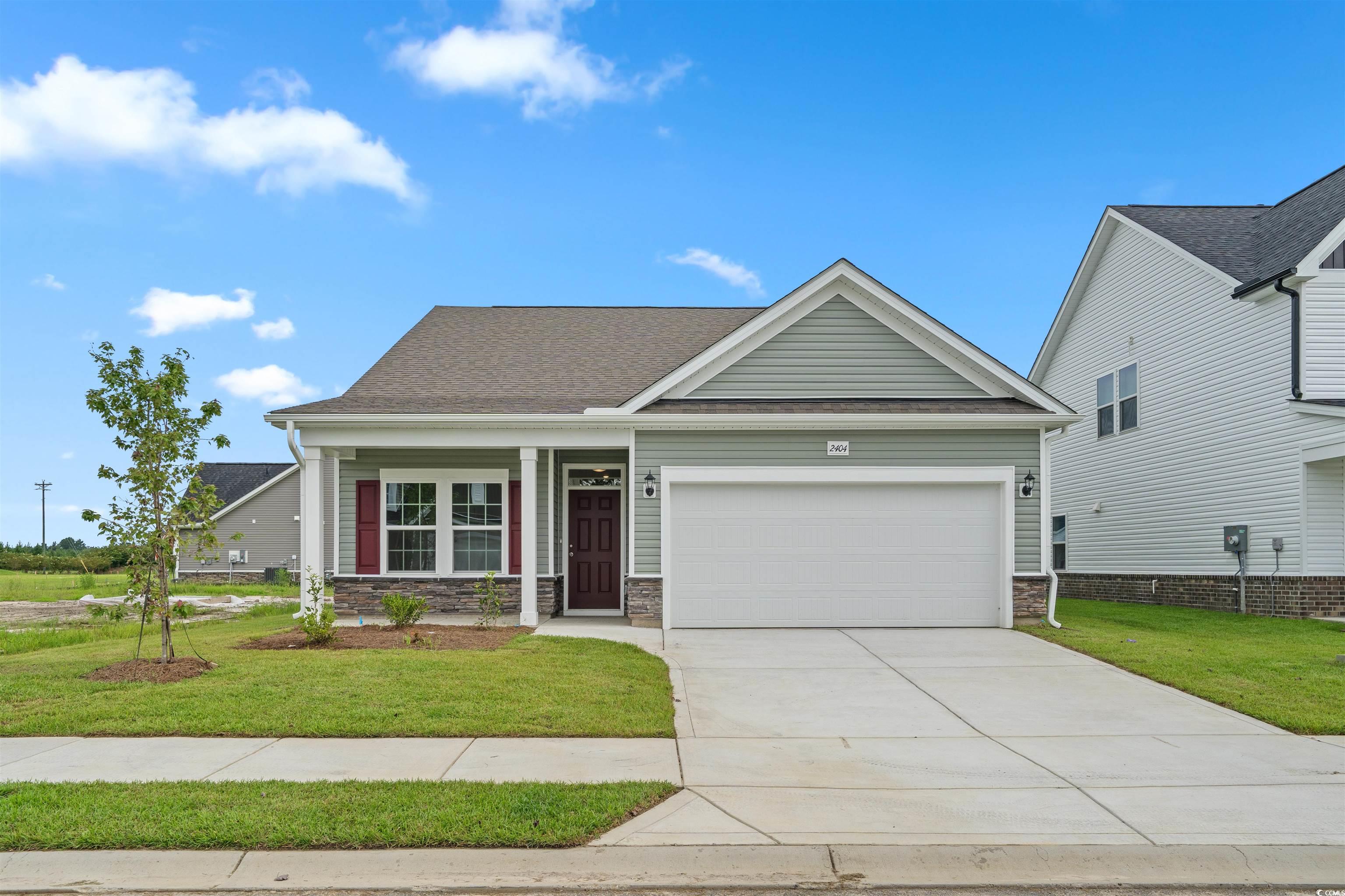 Introducing The Cascade, a stunning one-level home designed for modern living and effortless comfort. This 3-bedroom, 2-bathroom home offers an incredibly open concept layout, perfect for easy flow and versatile living. The spacious living and dining areas seamlessly connect to the kitchen, creating a bright and inviting space ideal for entertaining or relaxing with family. The common areas are adorned with upgraded Mohawk laminate flooring, providing durability and style, while the bathrooms feature upgraded tile flooring for a touch of elegance. The home also boasts 9-foot ceilings throughout, enhancing the sense of openness and creating a welcoming atmosphere. Enjoy a tranquil lifestyle with a relaxing front covered porch and a serene back patio, both perfect for unwinding or hosting outdoor gatherings. The primary suite offers comfort and privacy, while the additional bedrooms provide flexibility for family, guests, or a home office. With convenient features like comfort-height toilets and storage access in the garage, The Cascade ensures a practical and comfortable living experience. This home is also equipped with a sprinkler system to keep your lawn lush and green year-round, adding to the ease of homeownership. Whether you're seeking a space for entertaining, quiet relaxation, or everything in between, The Cascade offers the perfect blend of functionality and charm in a truly modern design. Spring Oaks is a beautiful new home community offering natural gas homes, blending comfort with sustainability. Ideally located near Historic Downtown Conway, residents enjoy easy access to the Riverwalk, local restaurants, shops, and the stunning coastal beaches. It’s the perfect spot for modern living with the convenience of nearby attractions.