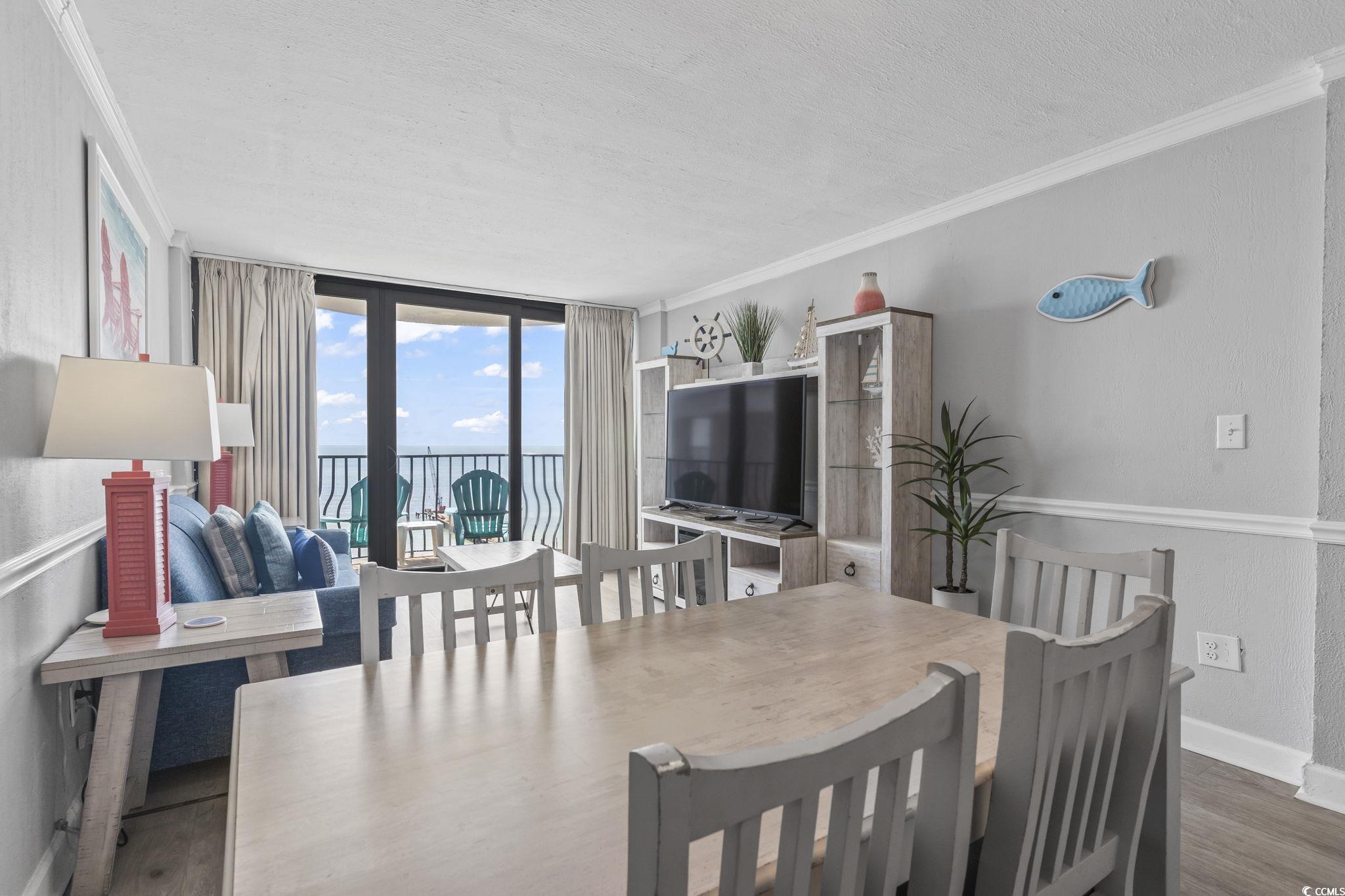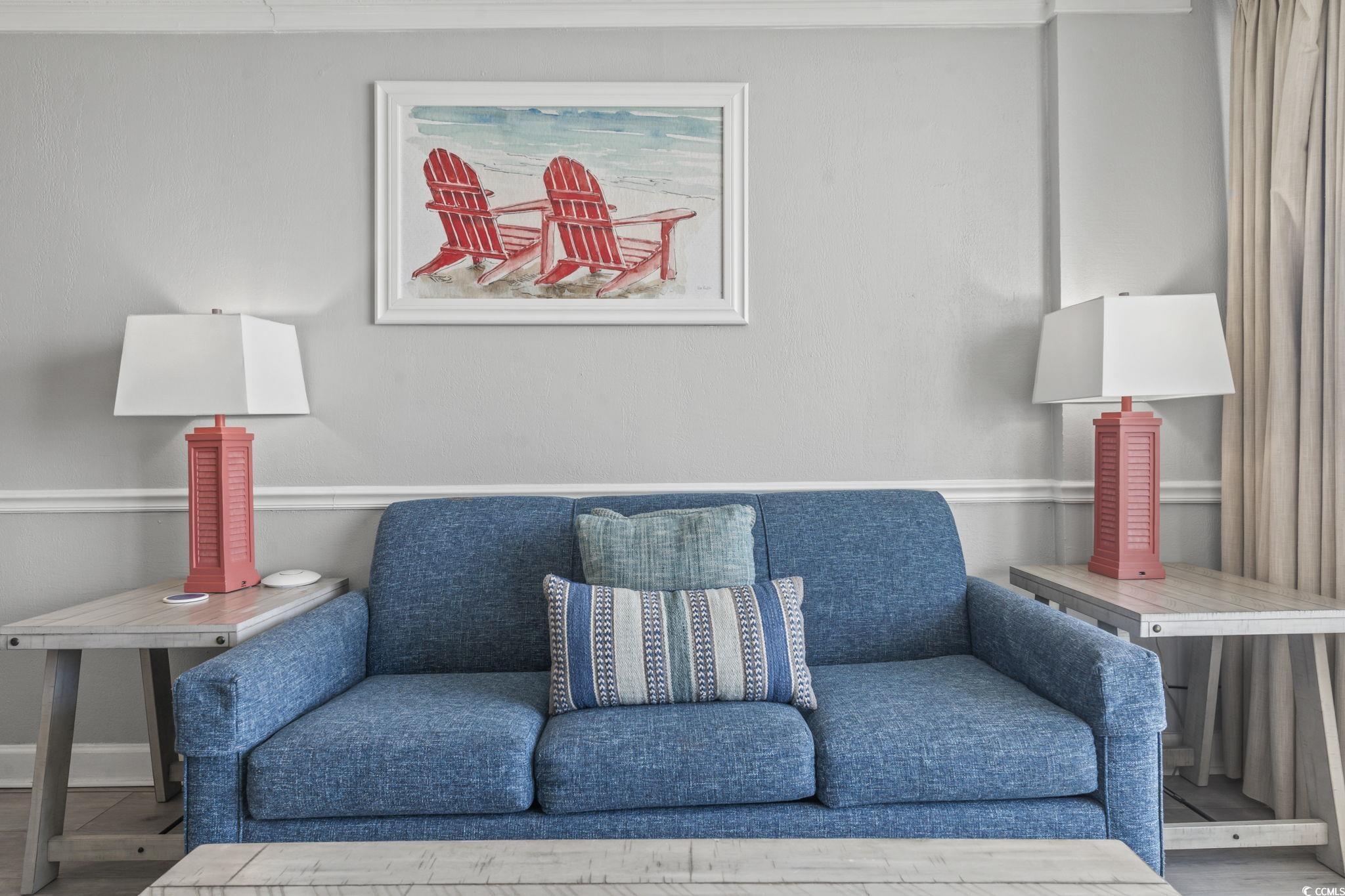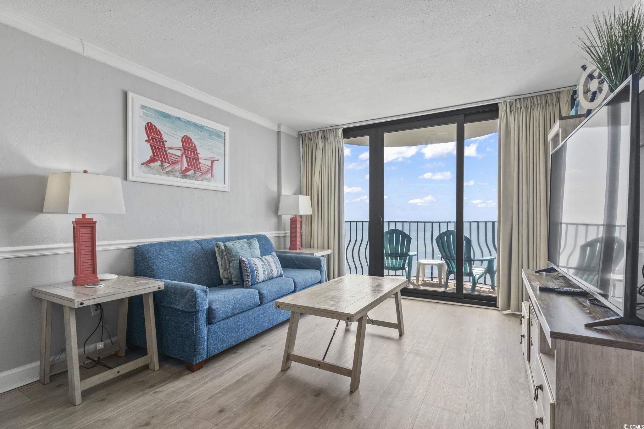 Welcome to Penthouse 4 at The Palms Resort, a truly rare and luxurious two-story oceanfront condo perched on the 17th floor in the heart of Myrtle Beach. This fully furnished 2-bedroom, 2.5-bathroom penthouse offers the ultimate coastal lifestyle with two private balconies, both boasting direct, unobstructed views of the Atlantic Ocean-one of which is exclusively accessed from the bedroom, making it the perfect spot to wake up to sunrise over the water. Inside, the space is thoughtfully designed with a light-filled open layout and soaring ceilings that showcase a dramatic skylight, flooding the unit with natural light-a unique feature made possible by its top-floor location. The condo is newly renovated and beautifully appointed with tasteful furnishings, a convenient in-unit washer and dryer, and a seamless blend of comfort and elegance across both levels. The Palms Resort is known for its unmatched location and extensive list of amenities. Whether you're looking to relax or entertain, you'll have access to an oceanfront outdoor pool, indoor pool, two indoor hot tubs, outdoor hot tub, kiddie pool, and a well-equipped fitness room-all just steps from the sand. What truly sets this property apart is its prime central location. The Palms is ideally situated in the true heart of Myrtle Beach, putting you within minutes of some of the area's top attractions including Broadway at the Beach, The Market Common, Coastal Grand Mall, mini-golf, world-class dining, live entertainment, golf courses, and the Myrtle Beach International Airport. Whether you're seeking a dreamy vacation home, a high-performing investment property, or a permanent oceanfront escape, this penthouse delivers an exceptional opportunity. Two-story condos like this are incredibly rare in Myrtle Beach-especially with views like these. Don't miss your chance to own one of the most unique residences on the Grand Strand. Schedule your private showing today and experience the penthouse lifestyle for yourself.