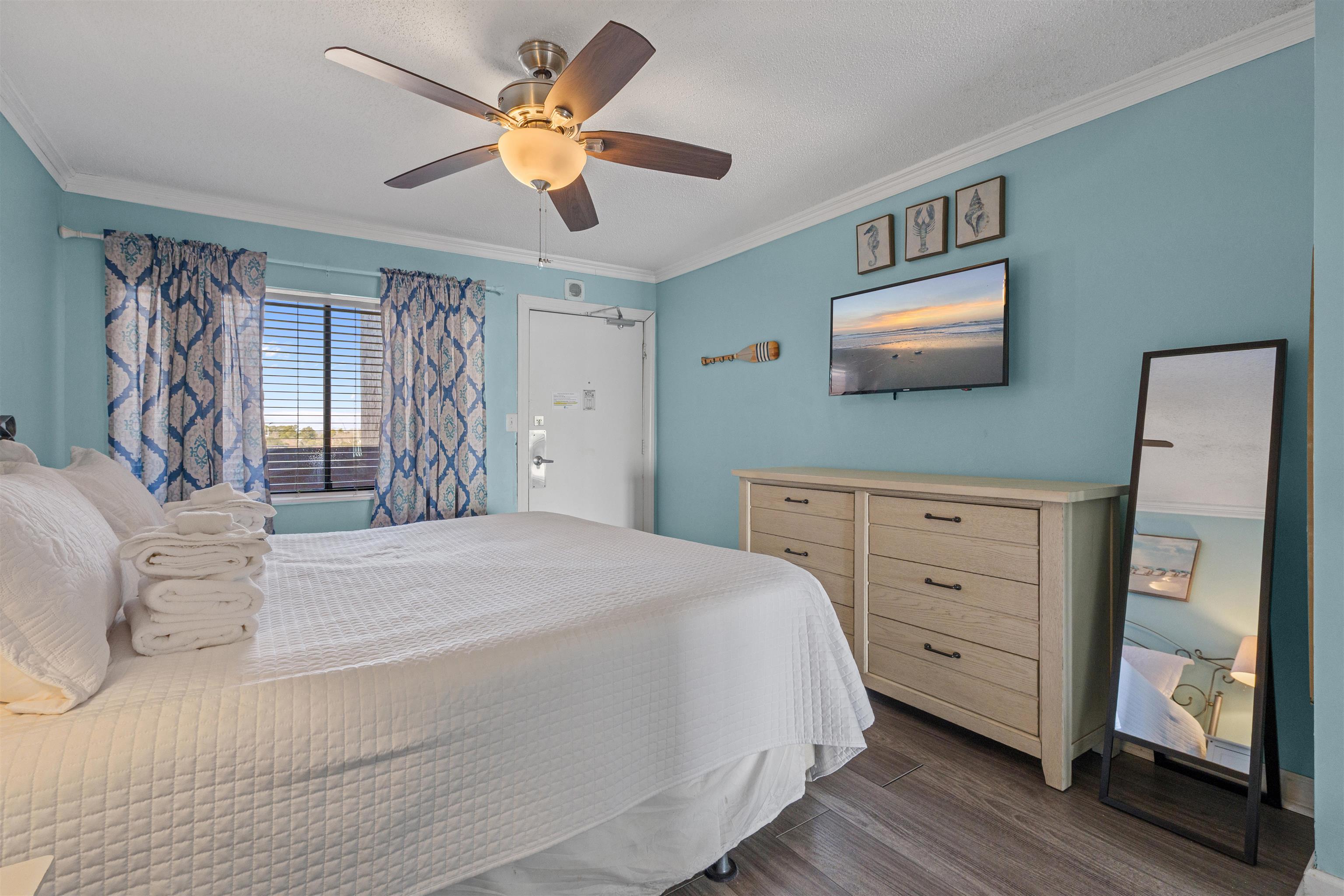 Experience oceanfront living at The Palms, a premier oceanfront resort in the heart of Myrtle Beach. This well-maintained 1 bedroom, 1 bathroom condo offers the comfort of a full kitchen, complete with refrigerator, stove, and sink, a feature that is rare to find in many oceanfront units. The spacious layout includes a new memory foam king-size sleeper sofa bed in the family room, a king-size bed in the bedroom and plenty of space in the living area to install a Murphy bed as well, making it ideal for personal use or accommodating guests. The shower was completely replaced in 2025 as well. Enjoy breathtaking direct oceanfront views right from your unit, with the added benefit of a new pier currently being constructed just outside, bringing an exciting additional amenity to the location. The resort features an indoor pool, outdoor pool, multiple indoor and outdoor hot tubs, an exercise room, and inviting outdoor lounging areas perfect for relaxing in the sun. Located in downtown Myrtle Beach, you are just minutes from shopping, dining, entertainment, and all the attractions the Grand Strand is known for. Whether you’re looking for a vacation getaway, investment opportunity, or personal retreat, this condo offers the perfect blend of comfort, convenience, and coastal lifestyle.