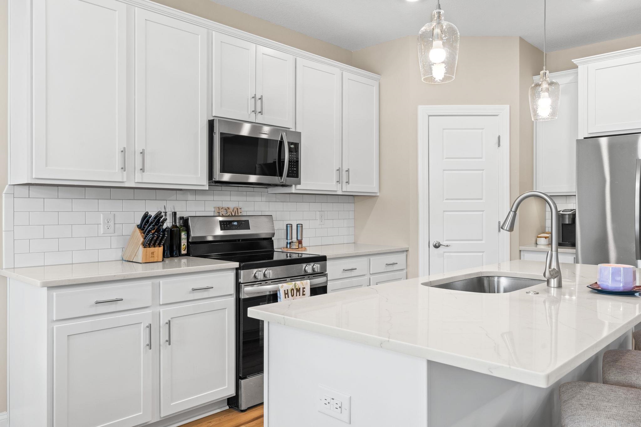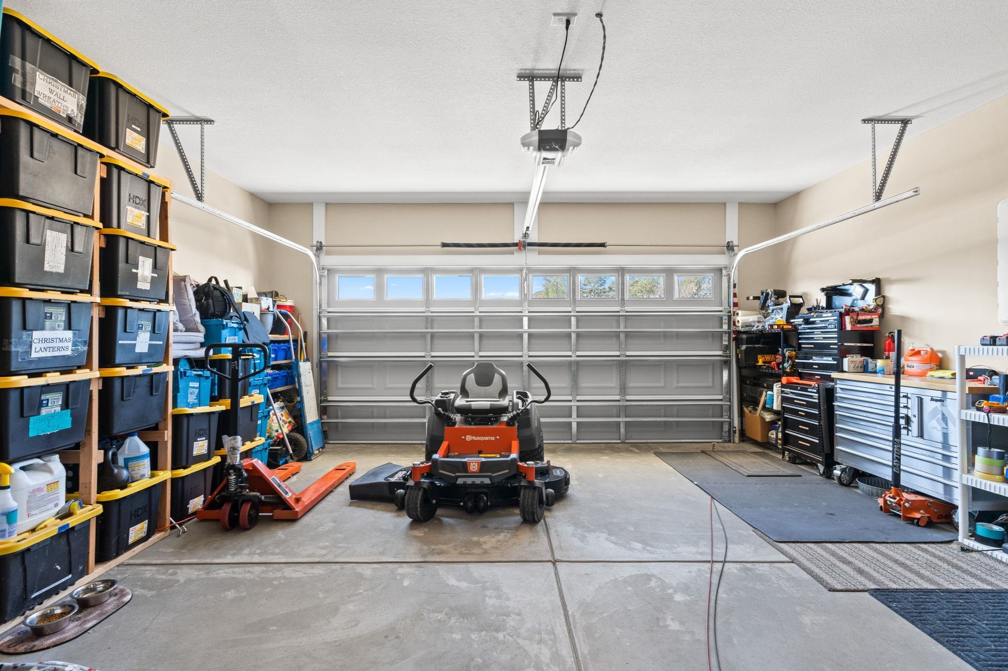 Custom Elegance Meets Unmatched Utility! Discover a home where luxury finishes and thoughtful design converge. This stunning residence is defined by its sophisticated architectural details, featuring coffered recessed ceilings with crown molding in the living area and beautiful wainscoting throughout. The entire home is finished with durable, high-end LVP wood-appearance flooring, offering a modern look with effortless maintenance. Chef’s Kitchen & Premium Living: The heart of the home is a masterpiece of function and style, featuring upgraded granite countertops that extend into all bathrooms. The kitchen is equipped with soft-close cabinetry and a custom-upgraded pantry. High-end stainless steel appliances include a Samsung French-door refrigerator and Frigidaire Gallery series dishwasher and microwave. Primary Sanctuary: Featuring a grand recessed tray ceiling, a massive walk-in closet, and a spa-inspired bath with a garden tub and an upgraded walk-in shower enclosure. Mini-Suite: A perfect setup for guests or multi-generational living, this second bedroom features a private full bath with a walk-in shower and its own linen closet. Smart Design: The third full bathroom includes a pocket door for the bath/toilet area, maximizing privacy and flow. Unrivaled Storage & Workspace: This property is a dream for those needing extra space. It includes a custom built-in hall tree with cubbies, a finished and painted 2-car garage, and an incredible 80-gallon water heater. Storage solutions are abundant with a 25-tote wall storage system, large garage attic access, and a massive 20’ x 8’ x 8’ outdoor storage container. Complete with a concrete driveway turn-around and a convenient rear screen door with a dog entrance, this home is as practical as it is beautiful. Schedule your tour today!