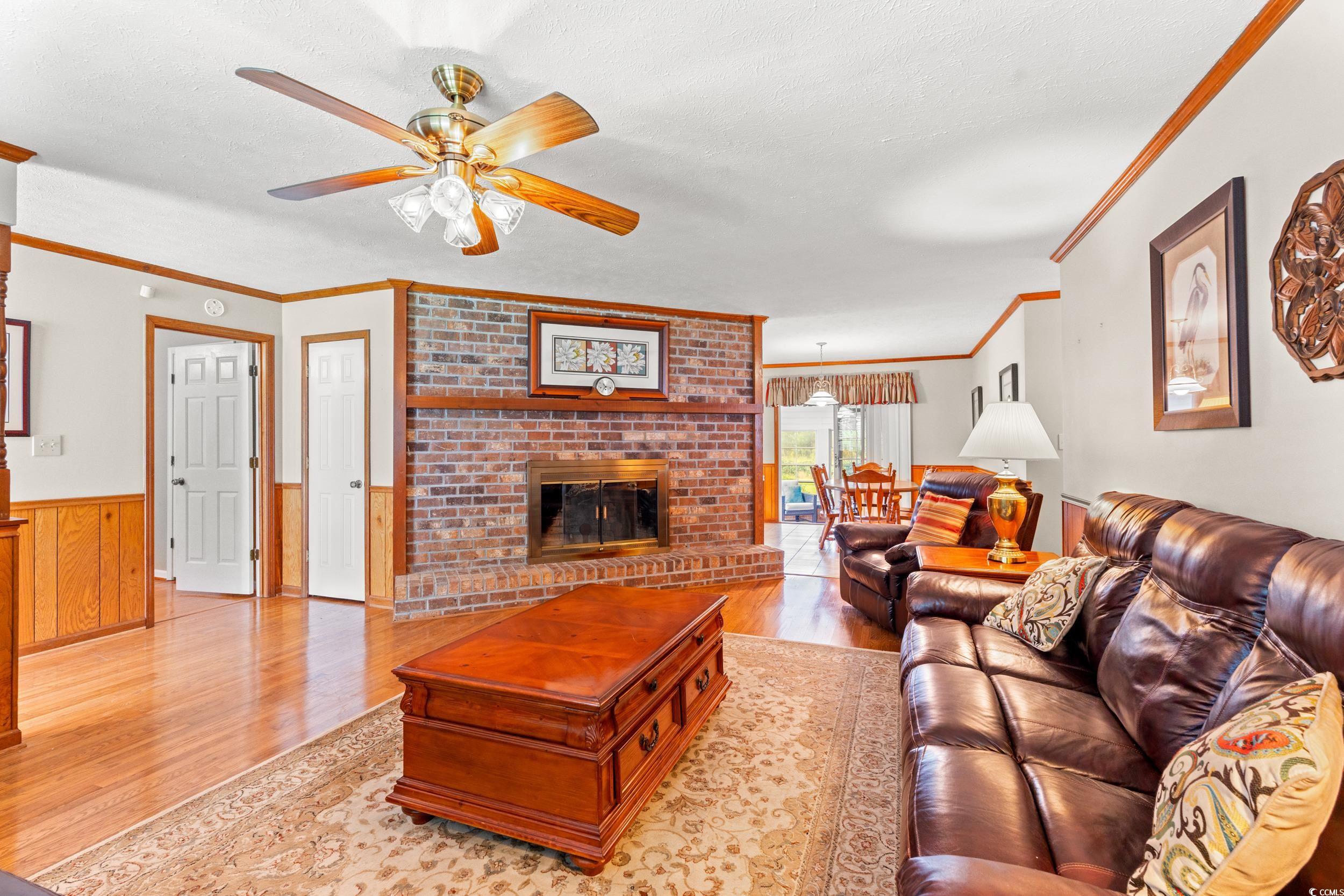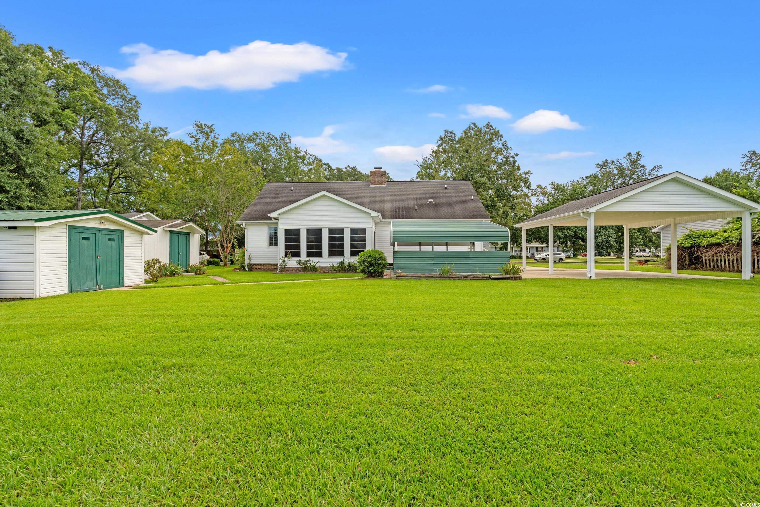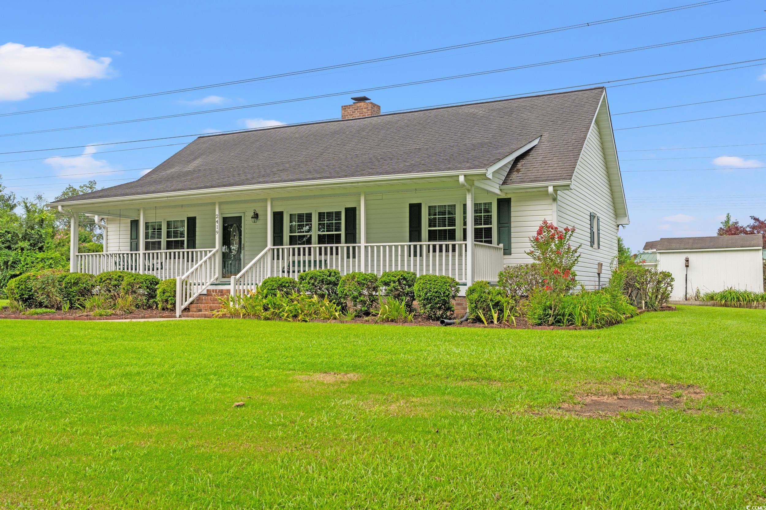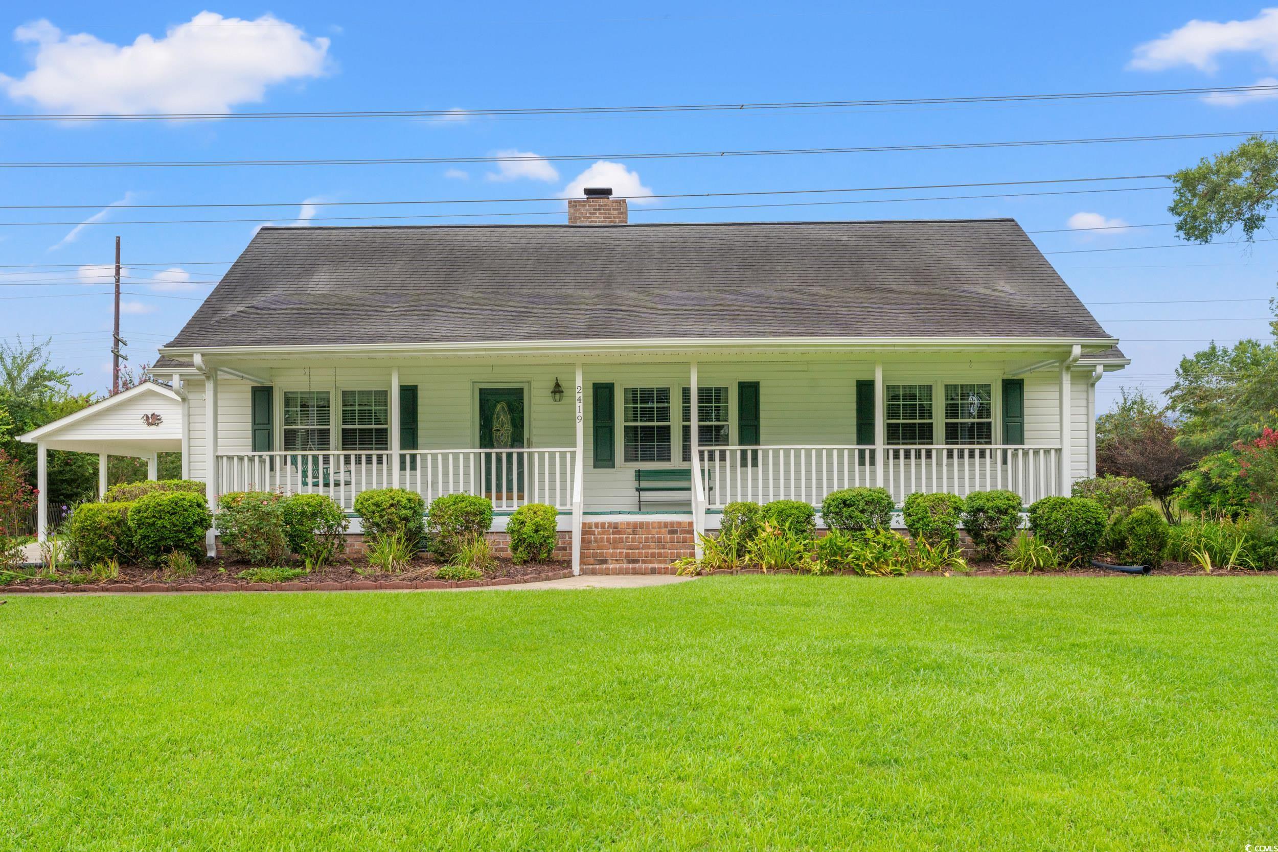 Welcome home to this charming Conway Gem! This beautiful, move-in ready, single-level home is nestled on a spacious-well-landscaped lot. Enjoy your evenings on the expansive 8' x 40' front porch, relaxing on the wooden porch swing and soaking in the peaceful surroundings. Inside, the split floor plan design, featuring three bedrooms and two full bathrooms, offers privacy and comfort. You will be greeted by lovely hardwood floors and a masonry fireplace that adds timeless character to the living area. The large kitchen and dining space open into a 12' x 16' sunroom, where you can enjoy serene views of the gorgeous backyard. The spacious master bedroom includes a walk-in closet for added convenience. Just off the kitchen you will find a large laundry room and pantry, easily accessible from the back entrance. Outdoors, this home continues to impress with a 20' x 24' carport, two storage buildings and a 14' x 18' covered patio - perfect for entertaining guests or hosting family gatherings. This house is located just minutes from local schools, shopping and the picturesque Conway Riverwalk. It is also only 30 minutes from the beach. All this comes with no HOA! Don't miss your chance to own this property! Schedule your showing today!