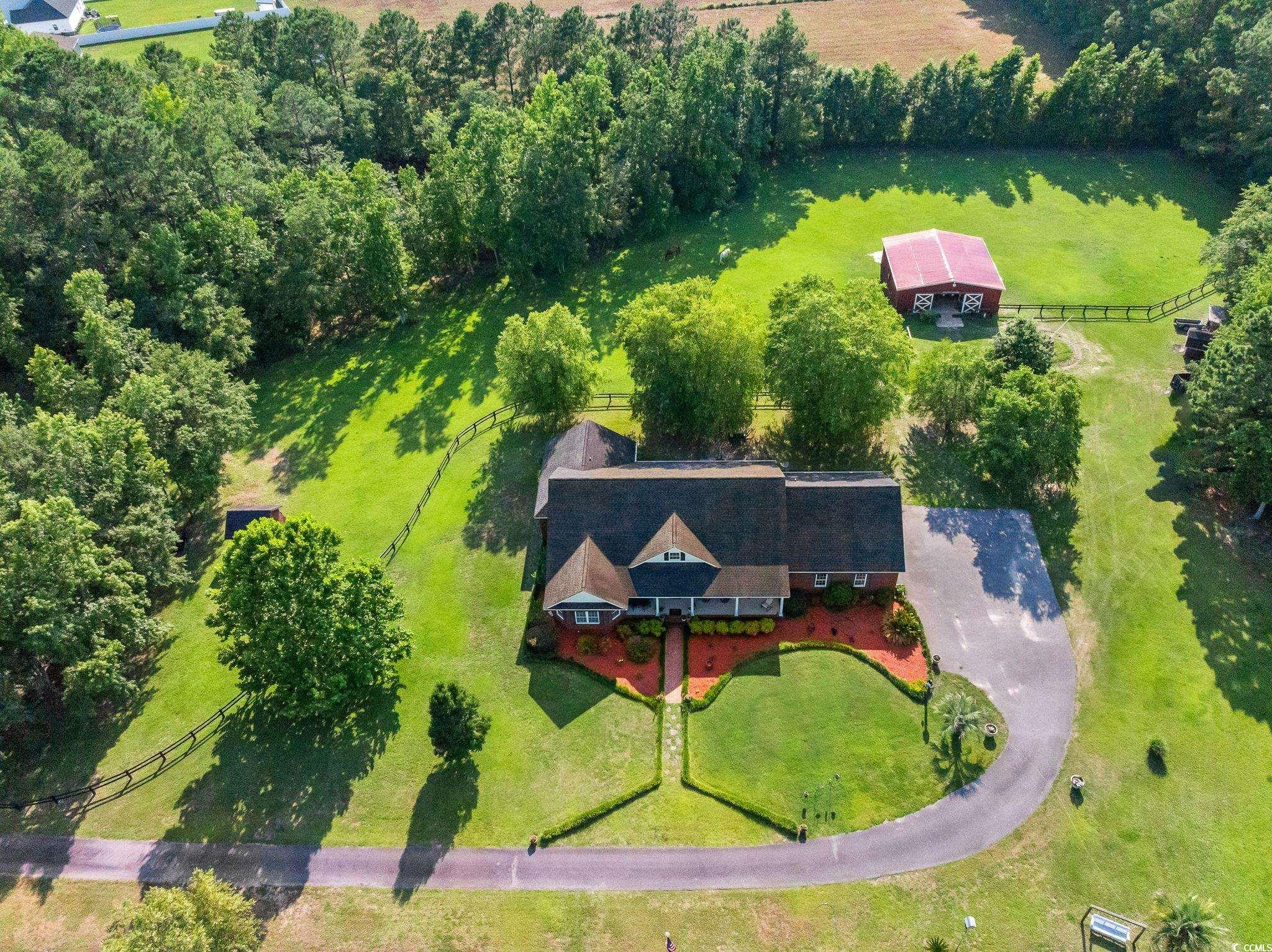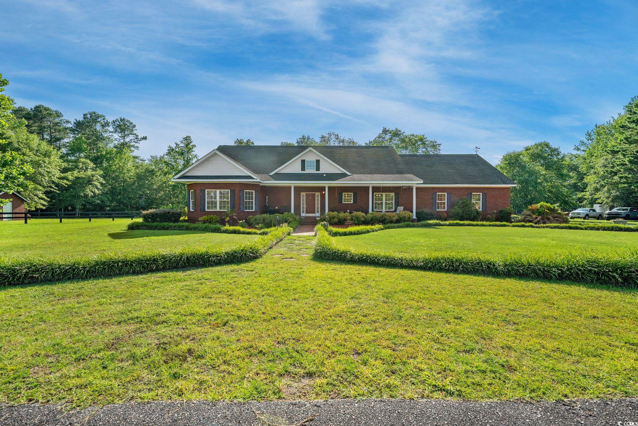Country living only 30 minutes to the beach! Say hello to your new home-sweet-home at 2420 Mt Zion Road, a sprawling estate on nearly 8 ACRES of property! A long driveway and mature trees welcome you home as you approach the 3300 square feet brick ranch featuring 4 bedrooms, 2.5 bathrooms, and all the space you could ever need. Every room in the home is large, and the living spaces are massive. The kitchen is the heart of this home and could definitely win an award for the most cabinet space, and the most countertop space EVER. The living spaces of this home truly provide the ideal setting for hosting gatherings with your family and friends. Let's talk bedrooms - downstairs is home to the owner's suite (private ensuite bathroom and closets galore) and a secondary bedroom, as well as a hall bathroom, half bath, and the laundry room. Upstairs features 2 more bedrooms, and an unfinished storage room that could become a 5th bedroom (heated and cooled already). Venture outdoors to the expansive 7.52 acreage that features enormous front and back yards, a horse barn complete with 4 horse stalls, storage, and a horse shower, a two-acre stocked pond for fishing, mature trees providing ample shade throughout, two car attached garage, and relaxing covered porches to sip on your sweet tea on a warm South Carolina afternoon. Country living with a coastal flare. With Myrtle Beach being only 30 minutes away, location is key keeping you conveniently close to several top beaches, local attractions, and all of the dining/shopping you could possibly need. All while being tucked away on your land to enjoy the tranquility, serenity, and the country living that this home can provide. Endless opportunities for recreation and enjoyment for the whole family, at home or nearby! Schedule your showing today, and be sure to bring your cowboy boots and beach hat!