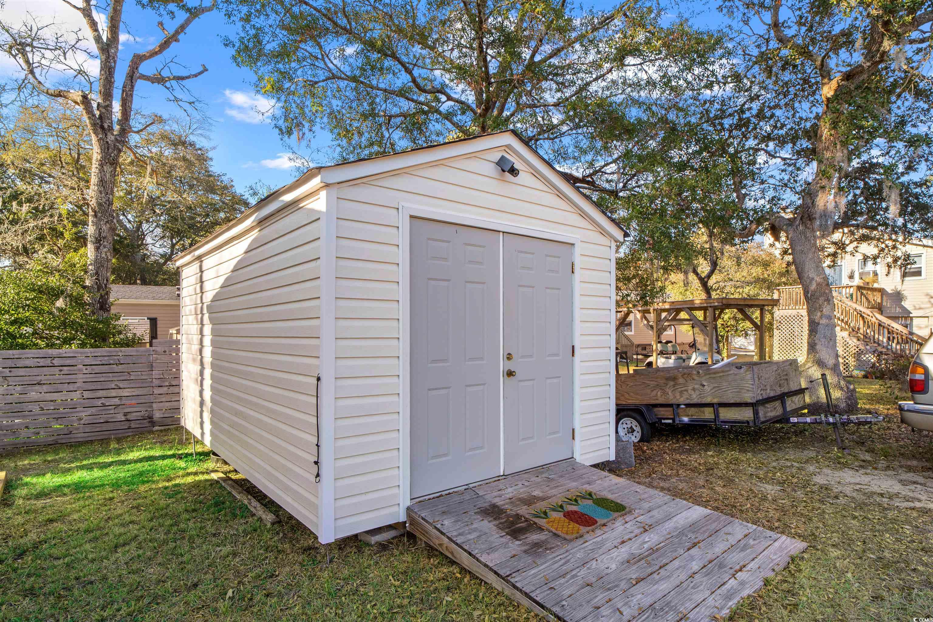 North Myrtle Beach... Cherry Grove Beach Section... The Grove Community... Location Location Location... Completely Furnished 3 Bedroom 2 Bath Home Perfectly Situated on a Large Corner Lot... Enter this Spectacular Home into the Great Room Greeted with Flowing Wood Design Floors and into the Large Open Living/ Kitchen areas... Kitchen is Fully Equipped with all Appliances, Lots of Counter Area, Cabinet Space and a Working Island Breakfast Bar... Spacious Master Bedroom with private Master Bath and Walk-In Closet... Laundry Area/ Mud Room... Upgrades include Waher/ Dryer, Crown Molding, Ceiling Fans, Window Treatments and Rain Gutters throughout... You Own the Land without an HOA... 16' x 12' Enclosed Screened in Front Porch Deck with an Additional adjoining 16' x 12' Sunning Deck Great for Entertaining Family and Friends and to Enjoy those Warm Carolina Sun Shining Days... 6' x 4' Back Porch Deck that leads to the Outside Private Shower for Easy Rinsing after those Beach Days or Handling the Lawn Care... Large 18' x 12' Storage/ Workshop Perfect for your Lawn Equipment, Tools, Golf Cart, Bikes, and All of Your Recreational Toys... Just a short Walk, Bike or Golf Cart Ride to the Beach and Fun in Sun... Close to Shoppes, Dining, Sports Grills, Grocery Stores, Ocean Drive, Entertainment, Night Life, Cherry Grove Beach Inlet, Fishing, Golf, Shopping Plaza's, Hospitals, Recreational Facilities, Outlets, Malls, Little River Intra Coastal Waterway (ICW) waterfront Dining, Boat Landings, Marinas, Casino Boats and the Most Spectacular White Sandy Blue Water Ocean Beaches of the Grand Strand... Your Time has Come!