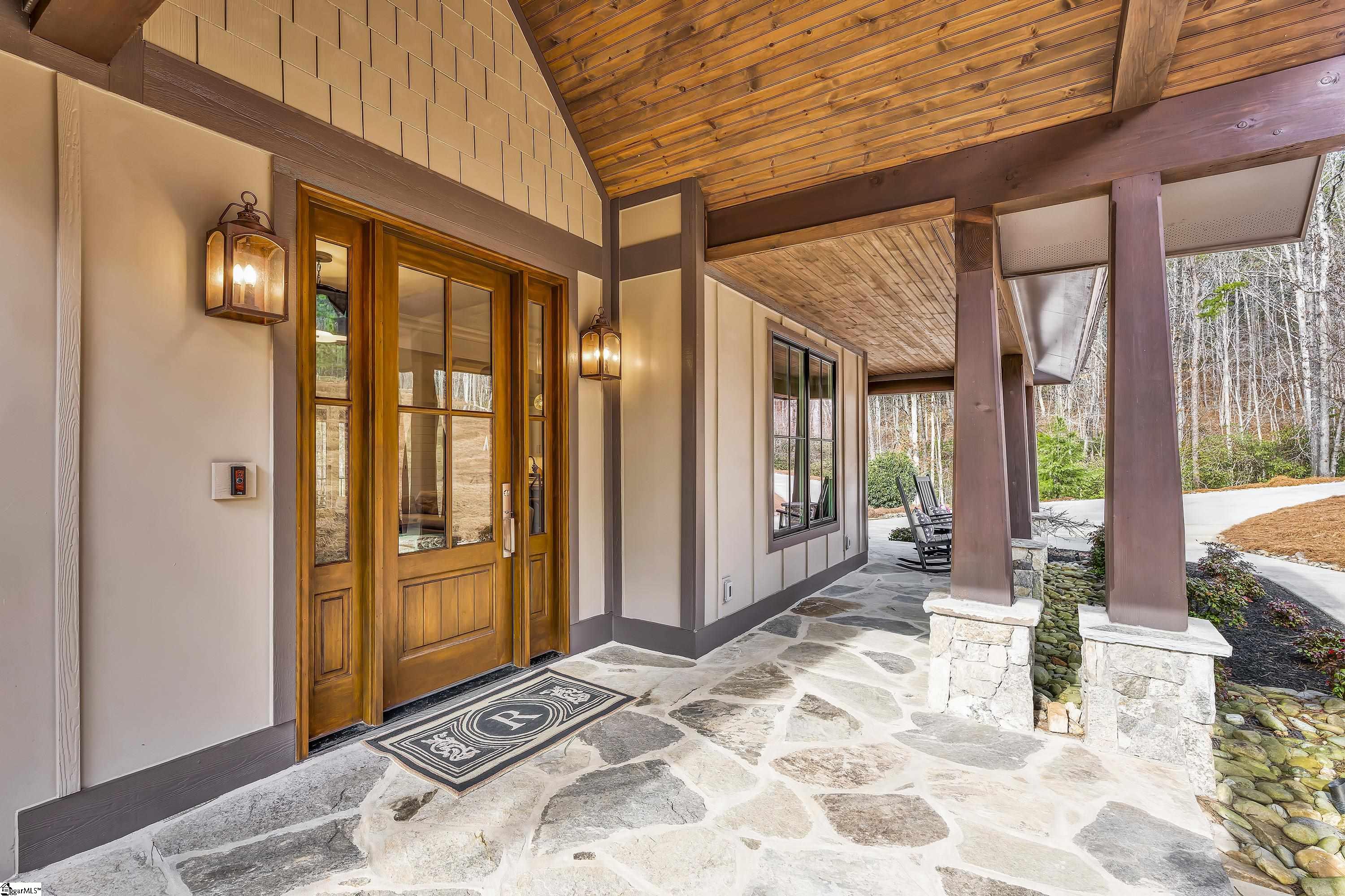 Set within the coveted Old Edwards Reserve at Lake Keowee offers privacy, walkability, and refined comfort in a peaceful cove setting. Tucked at the end of a quiet cul-de-sac with approximately 115 feet of shoreline, a gentle grade to the water, and a large platform dock, the property is ideal for relaxed lake living with minimal boat traffic. The approximately 2,800-square-foot residence features 4 bedrooms and 4.5 baths, all ensuite, with wide-plank White Oak hardwood floors throughout, shiplapped main living spaces, soaring ceilings, and expansive Pella windows and doors framing tranquil water views. The kitchen is appointed with honed Mont Blanc quartzite countertops, custom cabinetry, and premium appliances, including a 48"Wolf gas range with 8 burner rangetop, flowing seamlessly into open gathering spaces anchored by a dramatic stone fireplace. Other features include Marble floor master bath, Solid wood doors throughout, 2 hot water heaters, speakers on porches and main floor, and landscape lighting. Two screened porches totaling 700 square feet with sliding doors extends living outdoors for much of the year, complemented by Trex decking, a built-in grill, porch fireplace with television, and a fully fenced flat backyard — a rare feature within the community. Located within walking distance to the club, market, golf, fitness, tennis, and more, and equally accessible by boat, this home offers an exceptional balance of seclusion and convenience. Positioned near the proposed golf course expansion and within walking distance to the existing course — a rarity within the community — this homesite offers unique long-term appeal. Offered with the option to purchase much of the main-level furnishings, this residence presents a truly turnkey opportunity. Warm, welcoming, and thoughtfully designed, it is a true private retreat for enjoying lake life in every season.