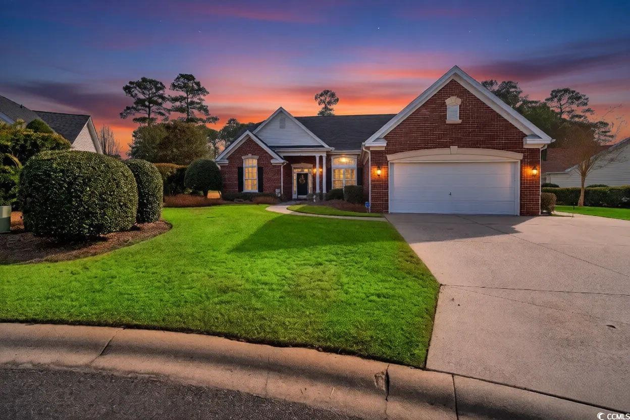 Elegant all-brick golf-front living with sweeping 9th-fairway views in the Pebble Creek Section of the International Club, a championship course designed by Willard Byrd, quietly tucked away on a private cul-de-sac in Murrells Inlet just minutes from the Local beaches. This refined home blends upscale finishes with an open, inviting layout ideal for both everyday living and entertaining. The main living areas & Carolina Room showcase 12-foot ceilings and natural honed travertine flooring, crown molding, and plantation shutters. A three-sided gas fireplace anchors the spacious living area, while architectural details such as shadow boxing and columns, define the formal dining space. The updated gourmet kitchen features expansive counter space, Work island, sleek gray cabinetry, stainless steel appliances, a walk-in pantry, breakfast bar, and adjoining breakfast nook which flows into the Carolina room with pocket French doors which opens to a stamped concrete patio overlooking the professionally landscaped yard. The primary suite is a true retreat with generous closets, en-suite spa-style bath, large wrap around vanity and walk-in tiled shower. 2 Oversized guest bedrooms, a bonus or fourth bedroom, and abundant storage in walk-in attic. Lots of parking and sidewalk to double car garage with built in sink and cabinetry. Interior Laundry room includes washer and dryer and built in cabinetry provides additional storage. Residents of Pebble Creek enjoy a Pool, clubhouse, and fitness area, with easy access to the Murrells Inlet Marsh Walk world famous Restaurants, Beaches, Dining, shopping, medical centers, and Brookgreen Gardens- offering the perfect blend of golf community & resort-style living. Square footage is approximate and not guaranteed. Buyer is responsible for verification.