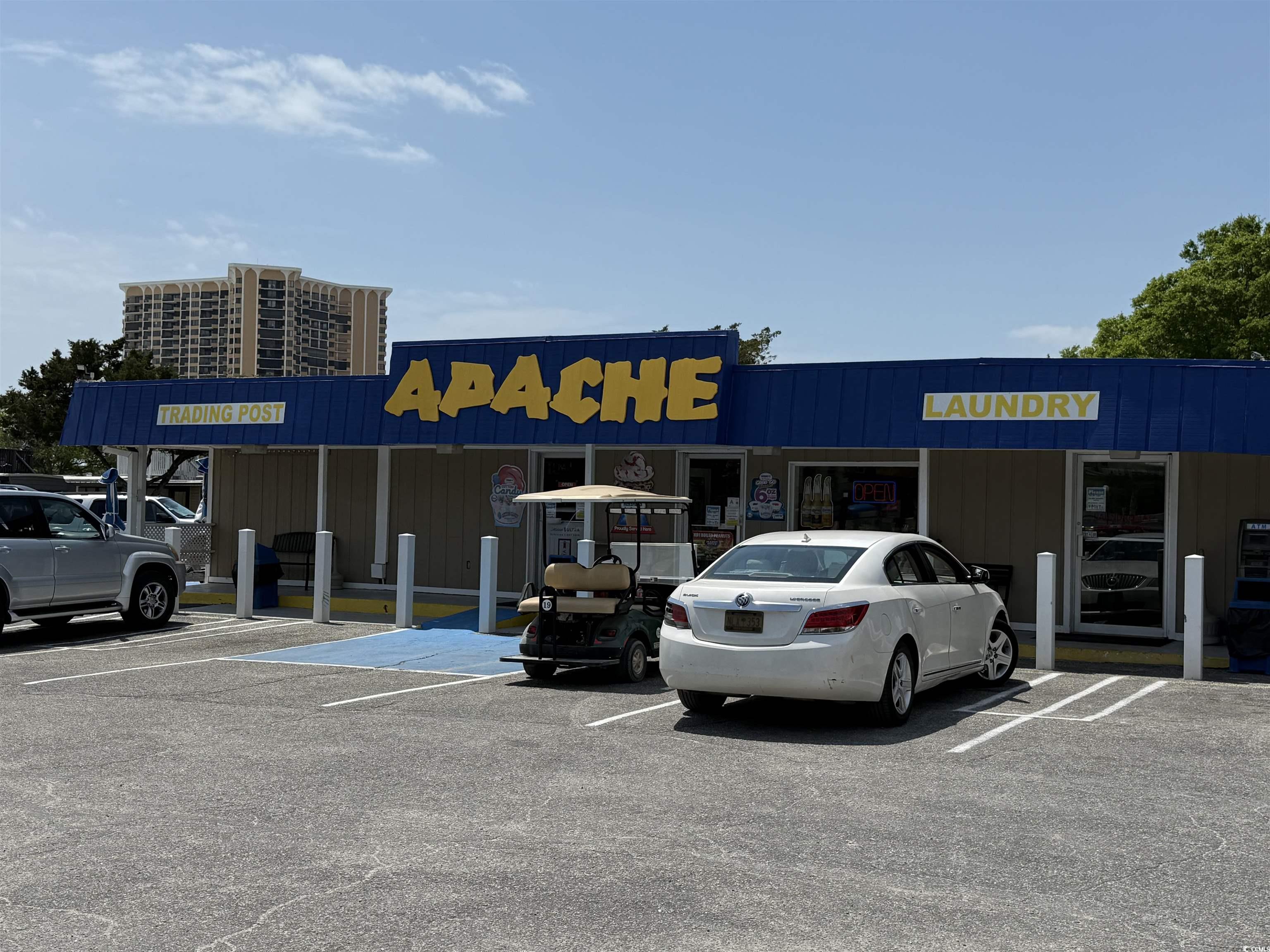 This is the way living at the beach is done. Apache campground is one of the best return destinations on the grand strand with the fishing pier, on site restaurant, store, gift shop, golf cart huge pool, splash pad, kiddy pool, and all that a family could want. This 4 bed, 2 full bath, open floor plan with a large kitchen, family room, screen porch, storage building, covered parking, club car golf cart, and on one of the largest lot in the campground. You have lots of room to park additional cars or trailer and your boat. This comes fully furnished. Everything is here, just bring the family and friends and enjoy life at the beach.