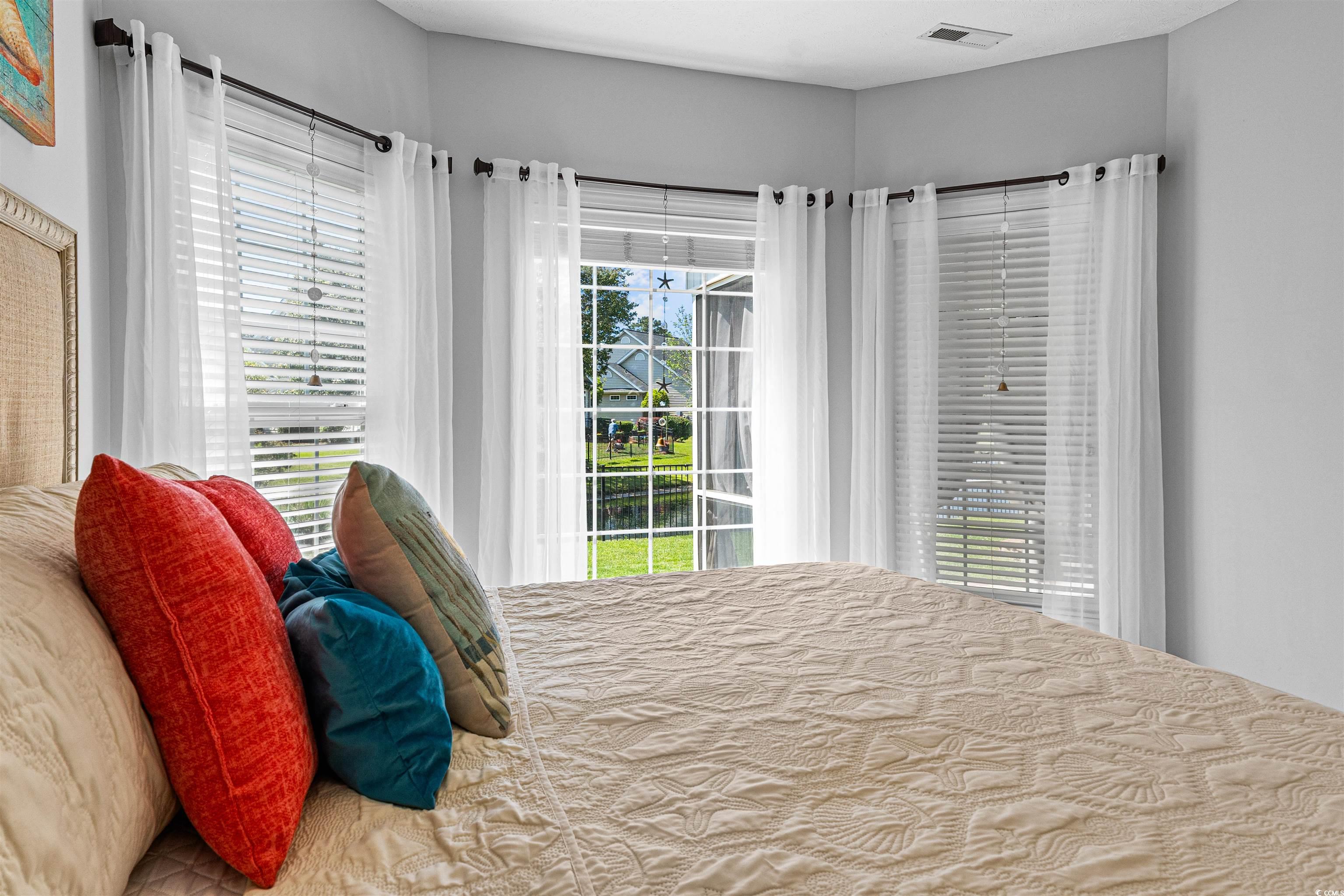 Welcome to Laurel Bay in Prince Creek — a quiet, gated community where charm meets coastal living. This beautifully maintained home sits on a spacious corner lot surrounded by lush landscaping and peaceful water views. Enjoy your morning coffee on the screened porch, unwind on the front porch, and take in the calm of this serene neighborhood. Inside, natural light fills the open floor plan — perfect for relaxing or entertaining. The primary suite overlooks the pond and features a remodeled bath with a soaking tub and step-in shower. Homes here have room to breathe, with larger yards and space between neighbors. Laurel Bay offers incredible amenities: two pools, tennis and pickleball courts, a gym, clubhouse, playground, picnic pavilion with grills, sand volleyball court, walking paths, and a large open field perfect for games or flying kites — all with low HOA fees. Recent updates include a new A/C unit installed in May 2024. Just minutes from the beach, shopping, the Murrells Inlet Marsh Walk, and top local restaurants, this home offers the perfect blend of privacy, comfort, and coastal charm. Dreamy, peaceful, and move-in ready — this one truly has it all.