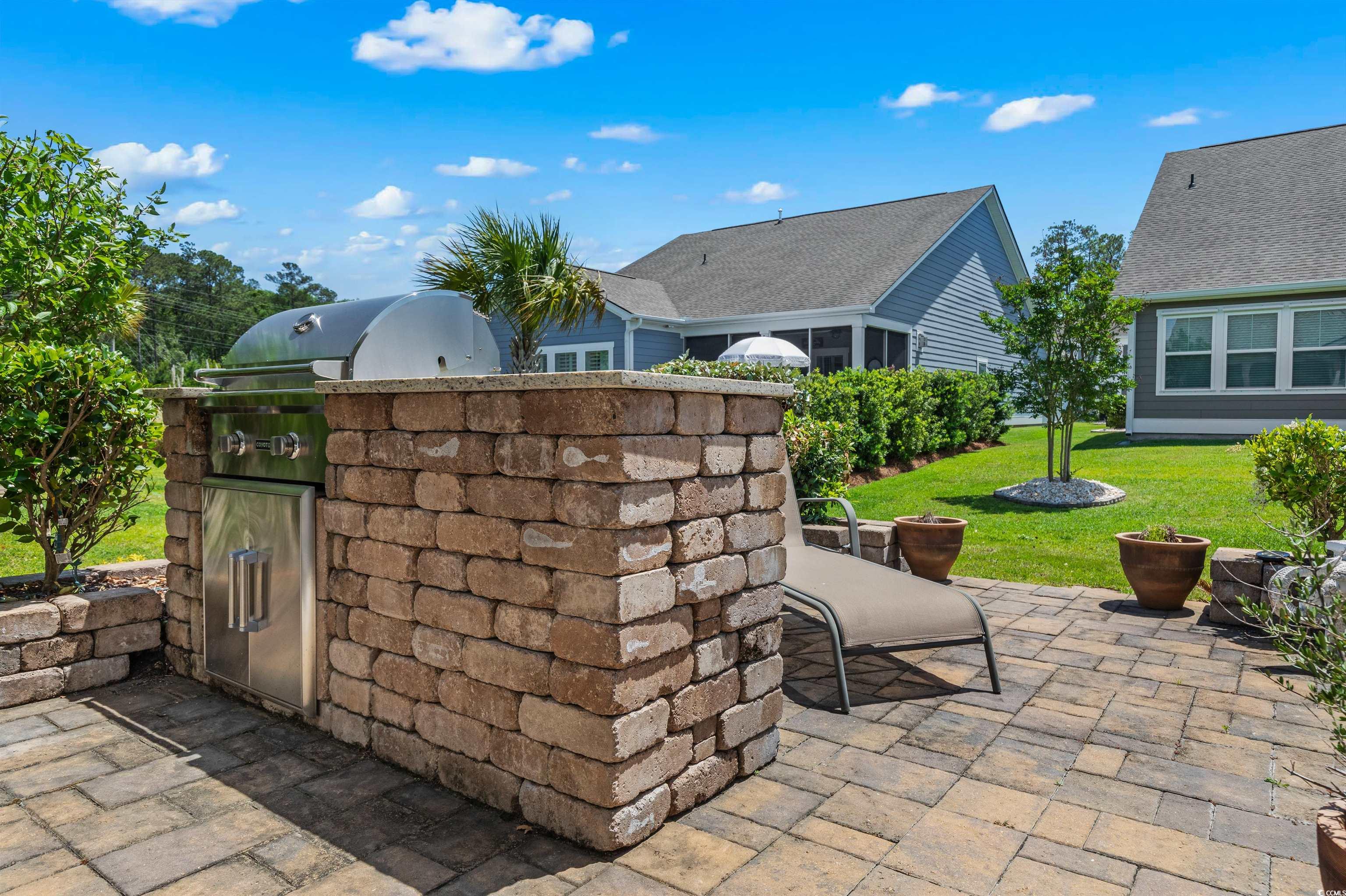 Step into a world of refined coastal elegance in this stunning and beautifully maintained 3-bedroom, 2-bathroom home offers an open floor plan ideal for relaxed living and entertaining. Enjoy cozy evenings by the fireplace in the spacious living room or host dinner parties in the formal dining room. The heart of the home opens to a fully equipped kitchen with modern finishes, flowing seamlessly into a covered back porch with a sitting area, paver patio, and built-in brick grill – perfect for outdoor living year-round. Enjoy your morning coffee and those evening sunsets. Unwind in the spacious master suite featuring a garden tub, separate walk in shower, and ample closet space. The home also boasts a welcoming front porch, a 2-car garage, and access to resort-style amenities including a pool, grilling area, pickle ball court, playground and sidewalks! Additional features include natural gas community, smart home technology, beautiful luxury vinyl plank flooring in the main areas of the home, a spacious laundry room, and freshly mulched garden beds and updated landscaping that provide a polished, inviting look from the moment you arrive. The vibrant greenery, seasonal plantings, and well-defined flower beds create a warm and welcoming outdoor atmosphere—perfect for relaxing or entertaining. Located just minutes from the beach, this golf-cart friendly community in the desirable Market Common area of Myrtle Beach, makes it easy to ride to nearby grocery stores, delicious restaurants, fabulous shopping, fun activities, and great entertainment – fun for families and individuals of all ages. This is more than a neighborhood or community-it is a lifestyle built for feeling like you are on vacation all of the time! Every moment here invites you to live fully, enjoy the little things, and connect deeply- no matter what your interests are, there is something for everyone! This is coastal luxury at its finest—schedule your private showing today!