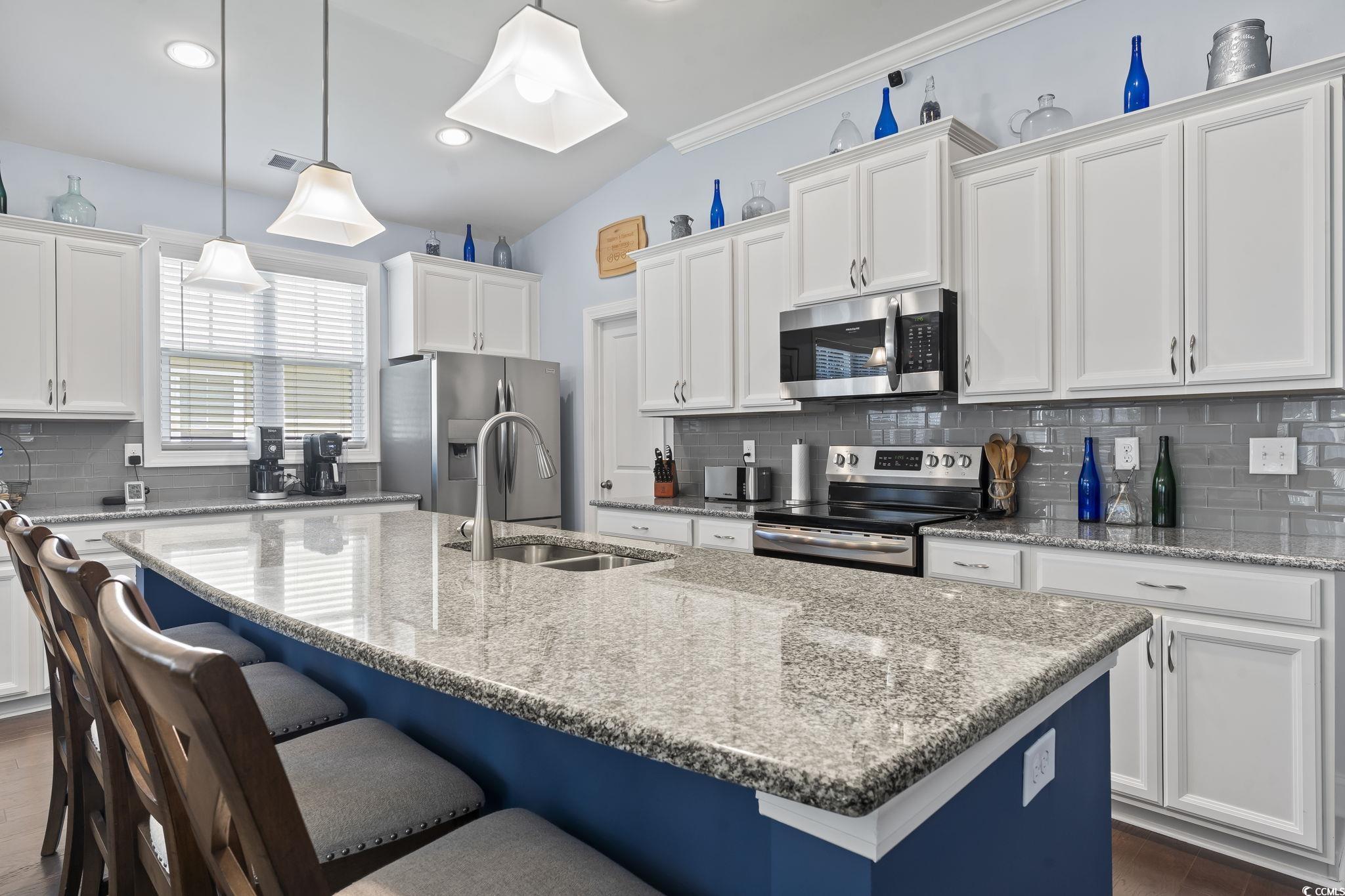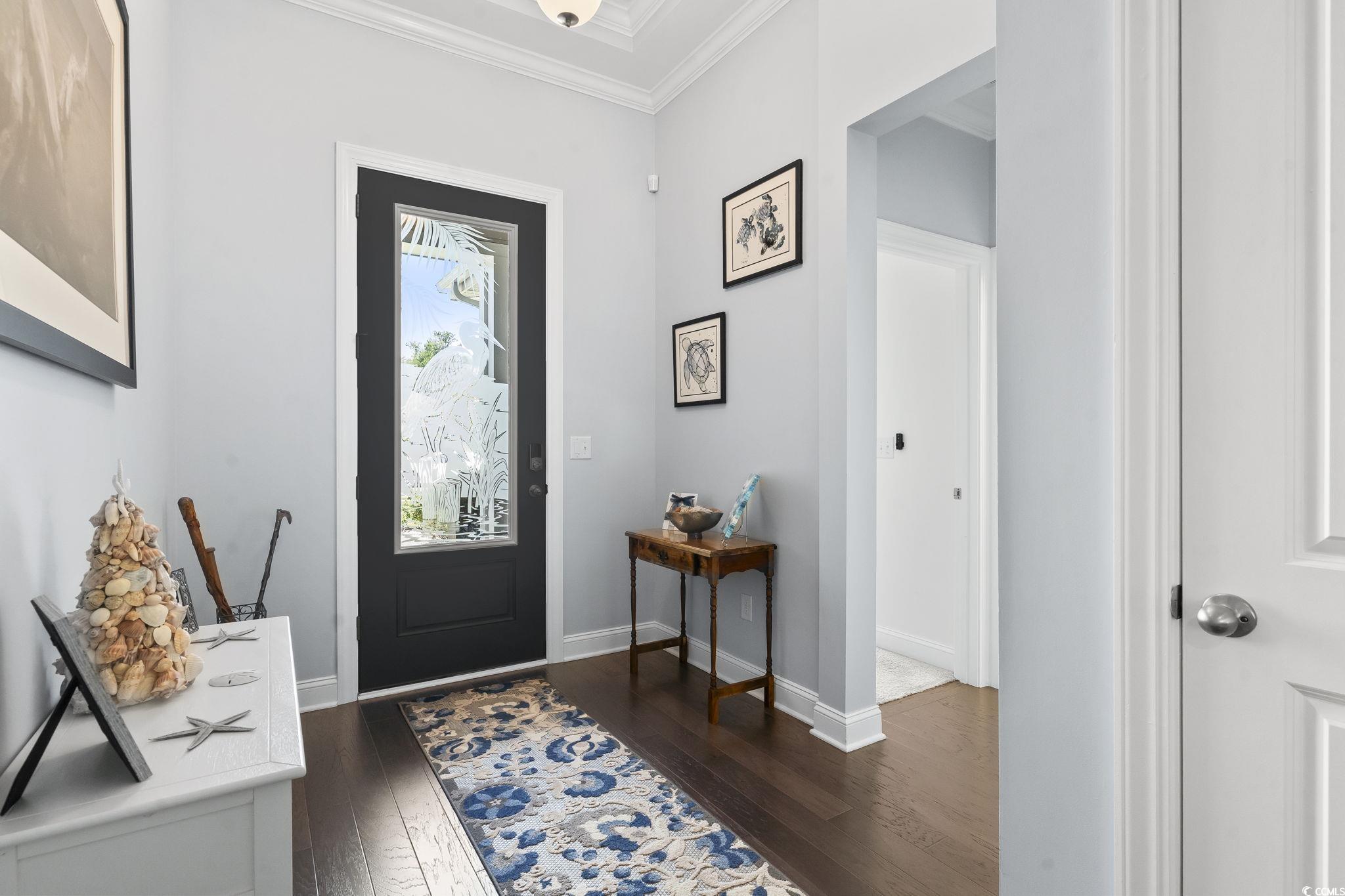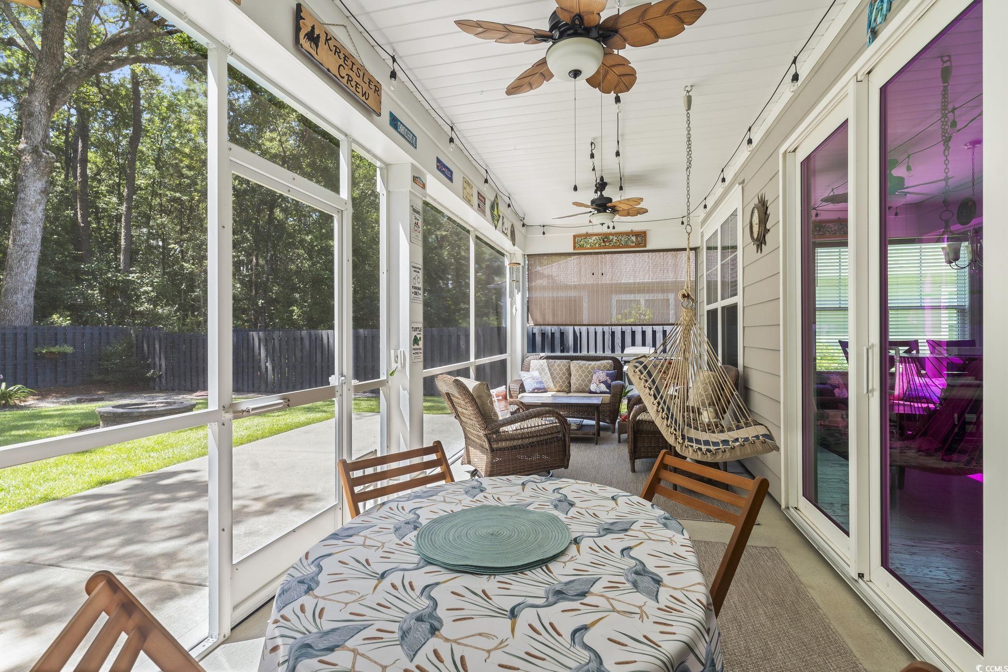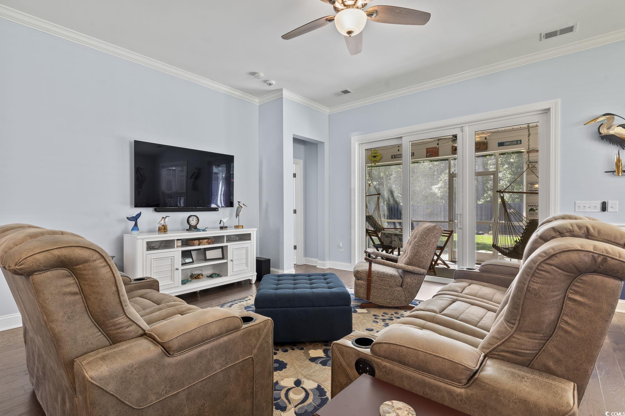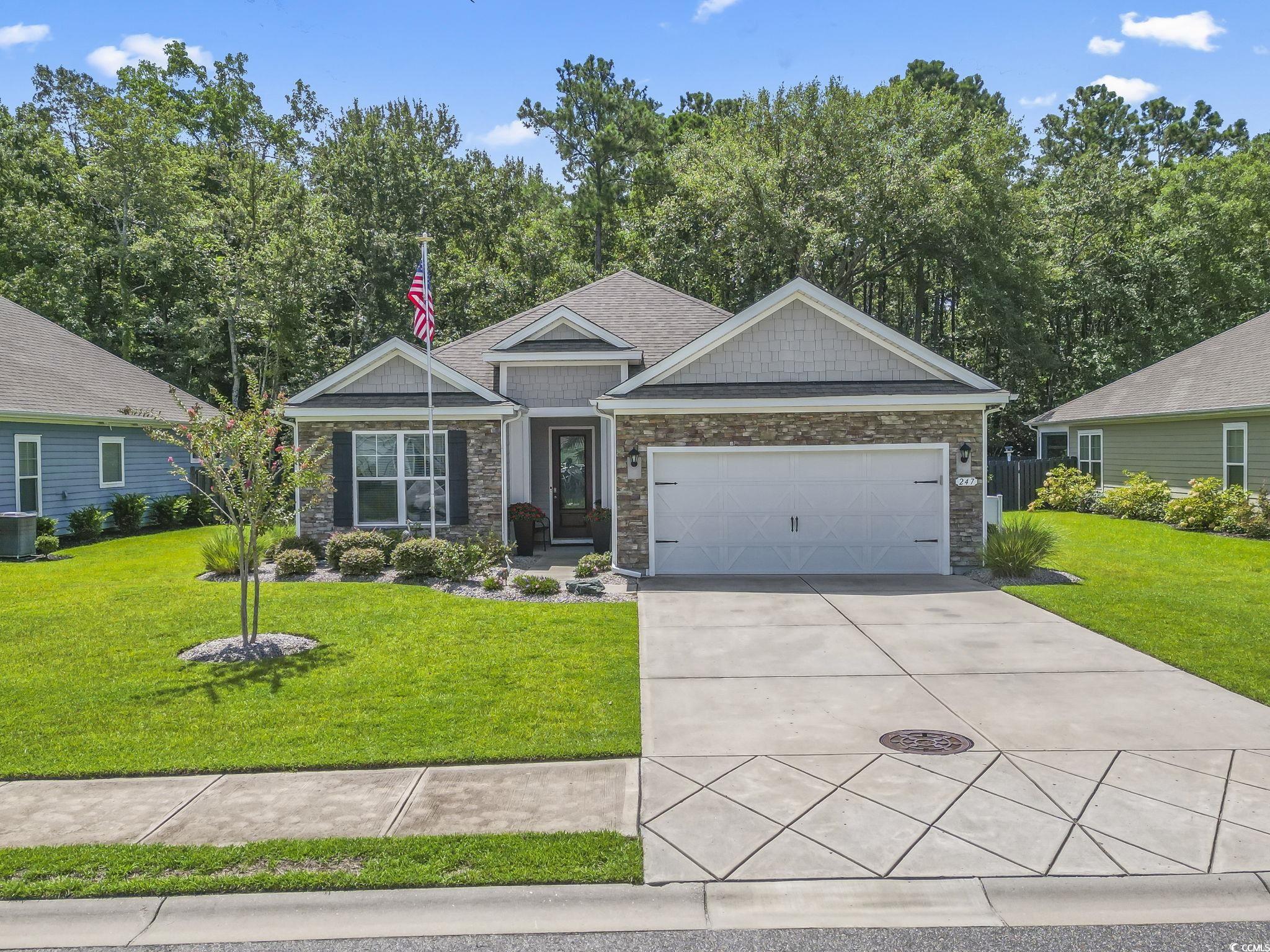 Located in the desirable Hammock Cove community, this single-level home offers a perfect blend of style, comfort, and thoughtful design just minutes from beaches, marinas, golf courses, dining, shopping, and medical facilities. The open concept layout is enhanced by 10-foot ceilings in the main living area and upgraded vinyl plank flooring that flows seamlessly through the primary spaces. The kitchen is both functional and impressive, featuring granite countertops, a large island ideal for gathering, stainless steel appliances, a tiled backsplash, and a generous walk-in pantry. Elegant crown molding, 5¼-inch baseboards, and quality finishes throughout add an elevated touch to the interiors. The owners' suite is a private retreat with a spacious walk-in closet, dual vanities, a 5-foot tiled shower, and two linen closets. Additional highlights include a home pre-wired for a generator, a large screened-in porch, and an extended patio overlooking a private backyard with a wooded backdrop perfect size for that future pool, offering both beauty and privacy year-round. Designed for both everyday living and entertaining, this property provides ample space indoors and out, with room to personalize your outdoor living area or even add a pool. Move-in ready and set in a prime coastal location, it's a rare opportunity to enjoy the best of Lowcountry living. Measurements are not guaranteed. Buyer is responsible for verifying.